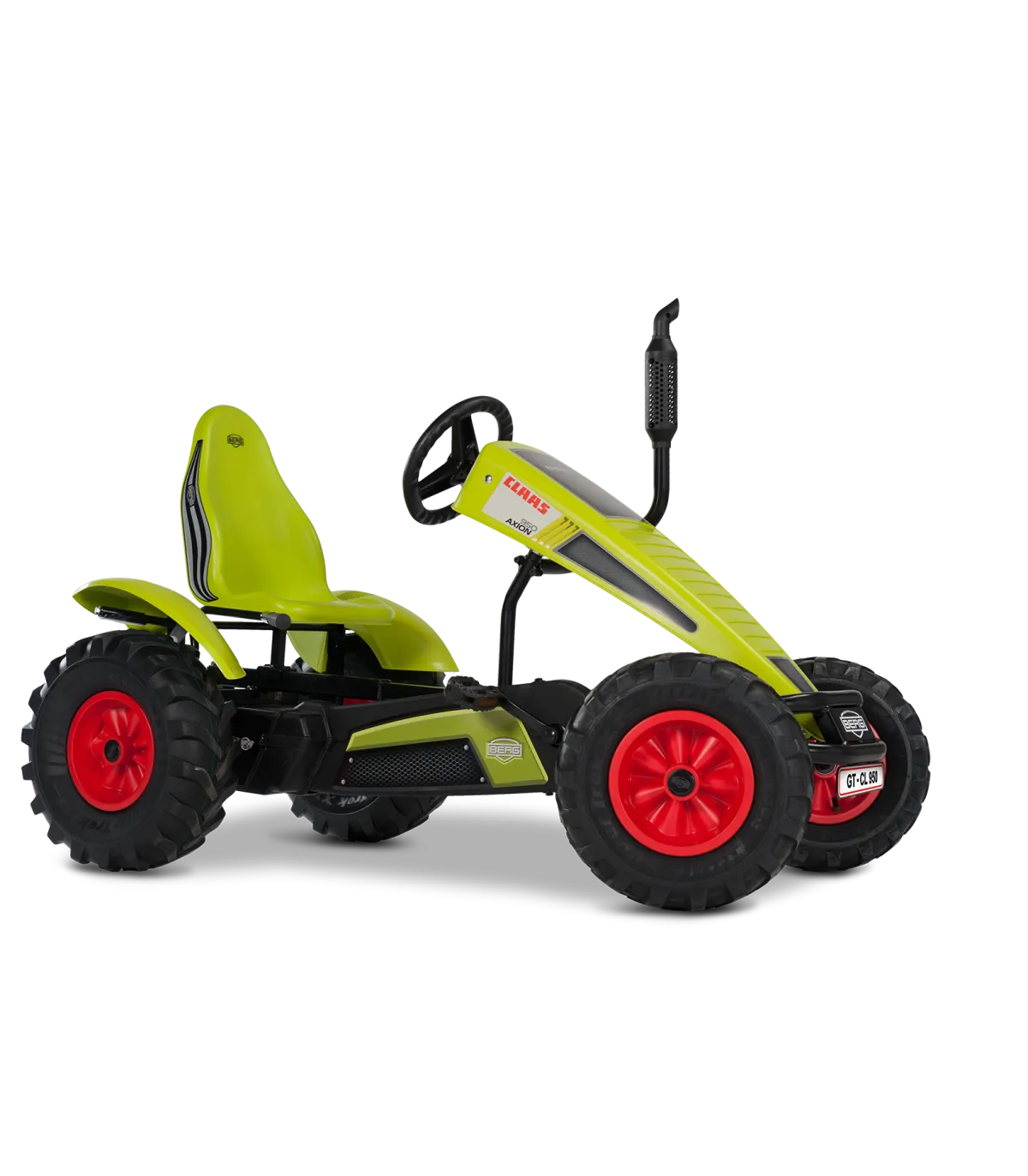 Diviértete jugando al aire libre o incluso ayudando a tus padres en el jardín. ¡Con el BERG Claas BFR-3 podrás superar cualquier reto! Y gracias a los divertidos accesorios que se pueden pedir por separado, tu kart será aún más divertido. Por ejemplo, un pequeño remolque, un asiento para tu hermano o hermana o una barra antivuelco con luz intermitente. Gracias a los colores, las pegatinas y el escape, este kart Claas es indistinguible de uno real. Y las 3 marchas facilitan el pedaleo. ¡Diviértete jugando!