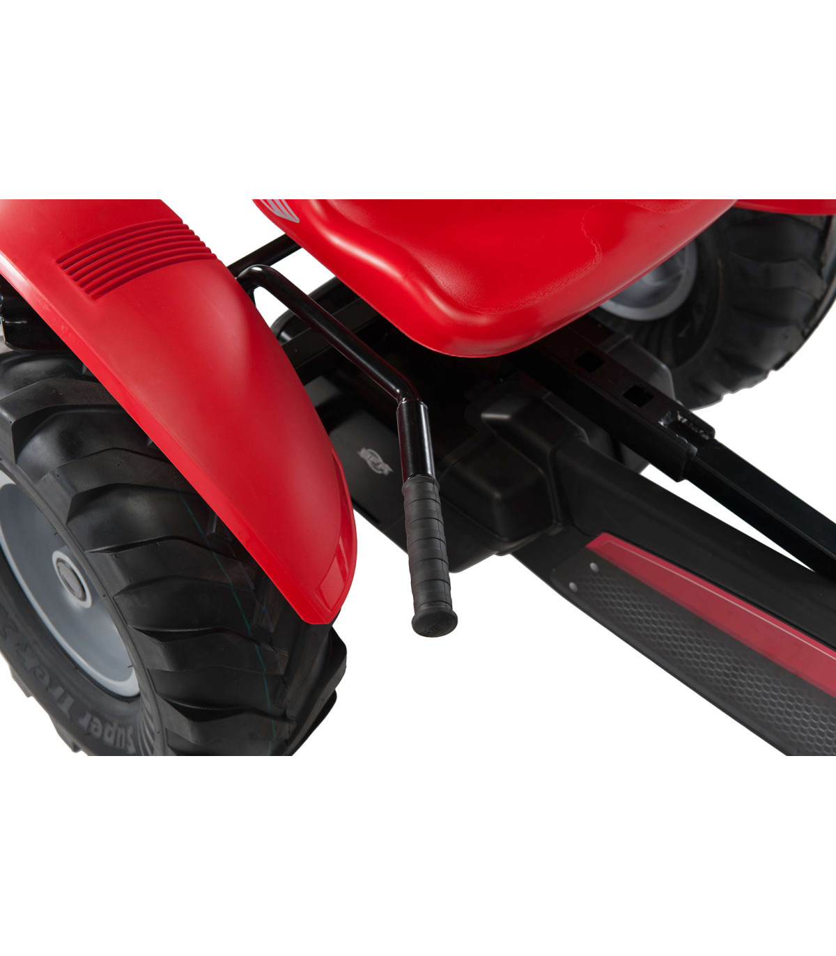 Este kart tiene un marco extra grande con el sistema BFR y 3 marchas. La abreviatura BFR significa Freno, Rueda libre y Marcha atrás. El sistema BFR significa que puede usar los pedales para frenar e inmediatamente dar marcha atrás después de detenerse. La E en E-BFR significa que este marco tiene asistencia eléctrica.