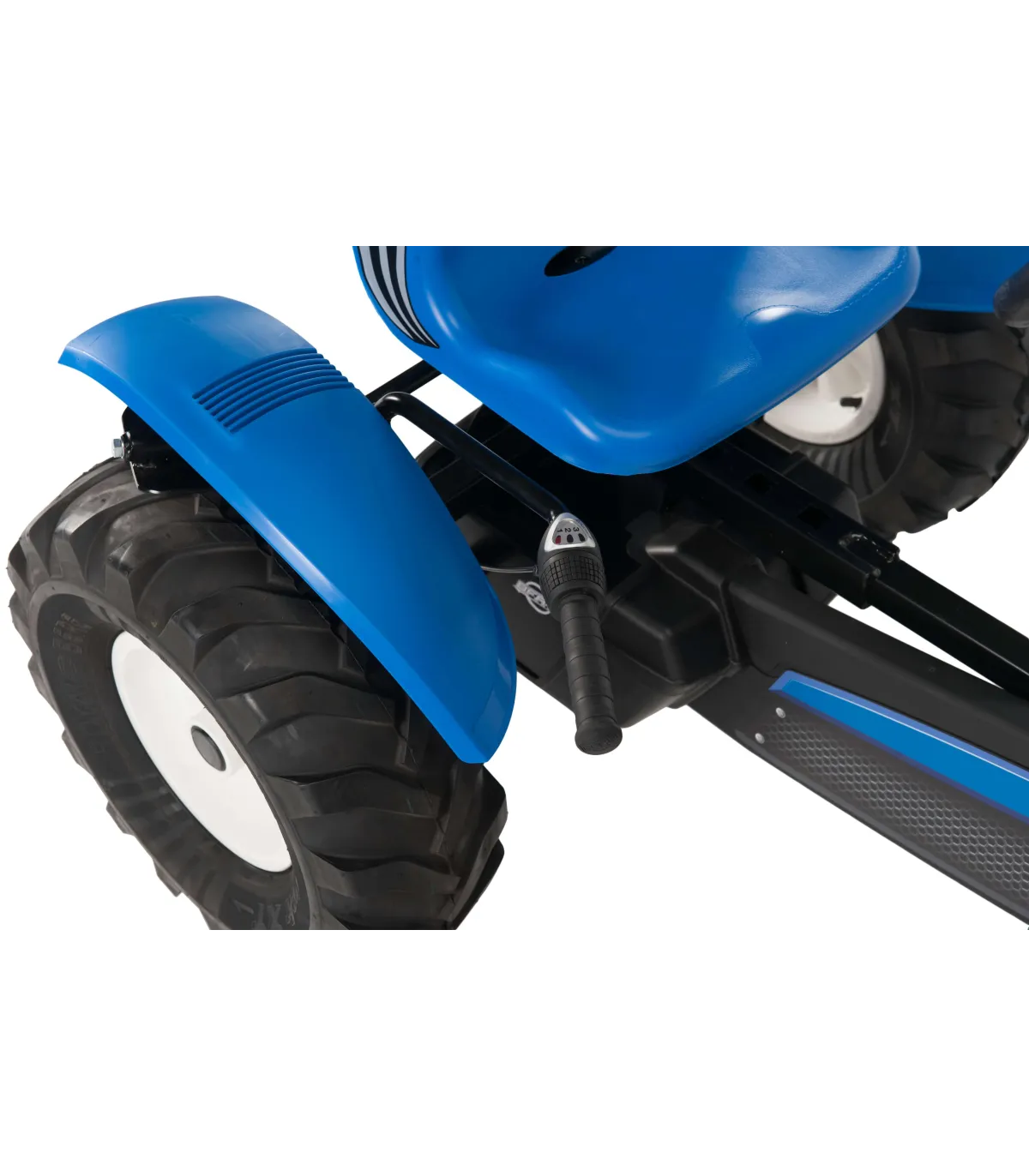 Este kart tiene un marco extra grande con el sistema BFR y 3 marchas. La abreviatura BFR significa Freno, Rueda libre y Marcha atrás. El sistema BFR significa que puede usar los pedales para frenar e inmediatamente dar marcha atrás después de detenerse. La E en E-BFR significa que este marco tiene asistencia eléctrica.
