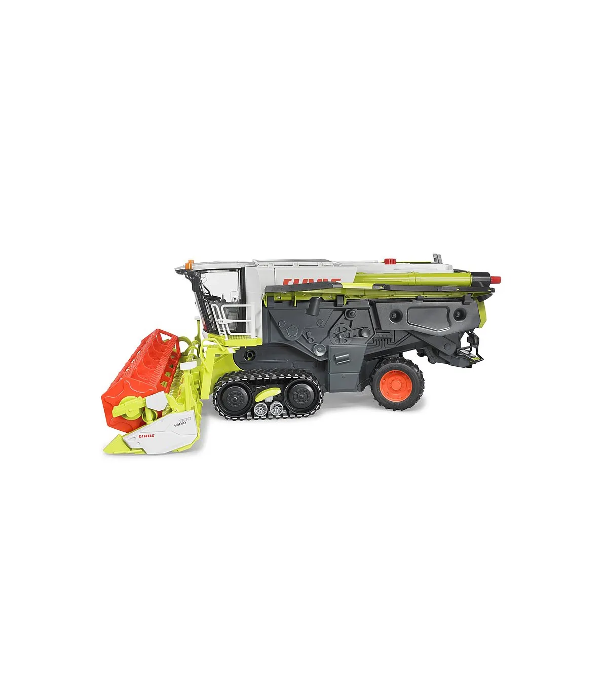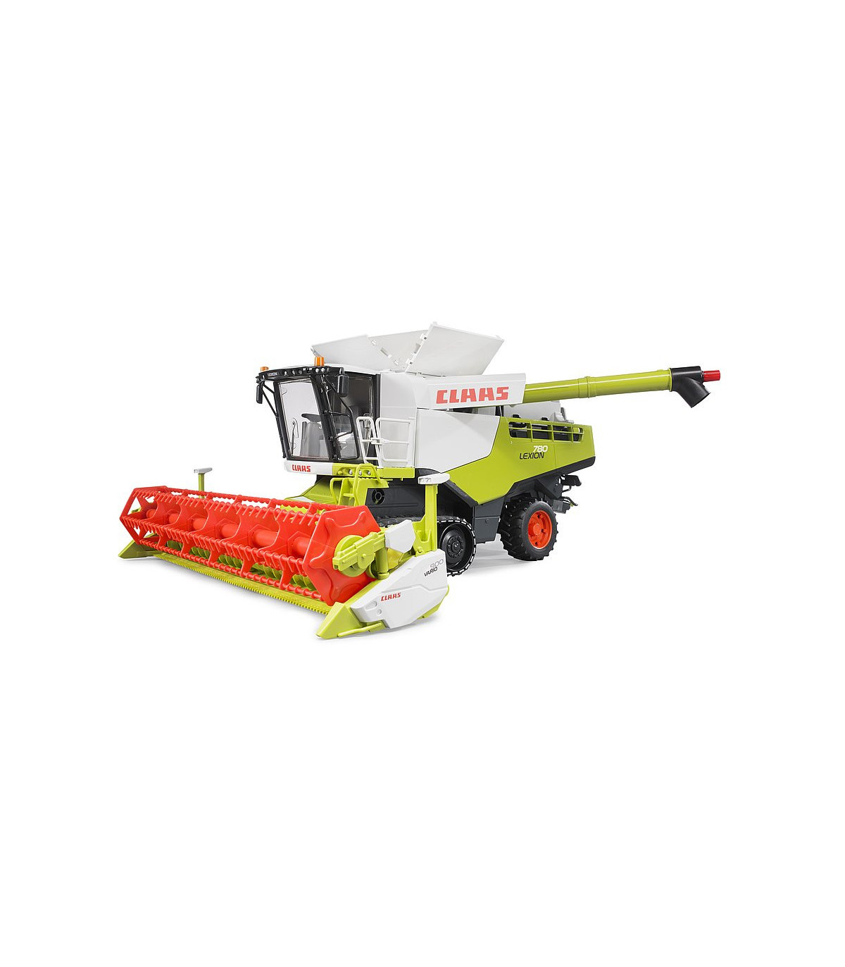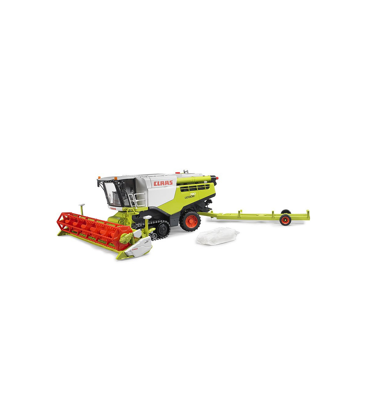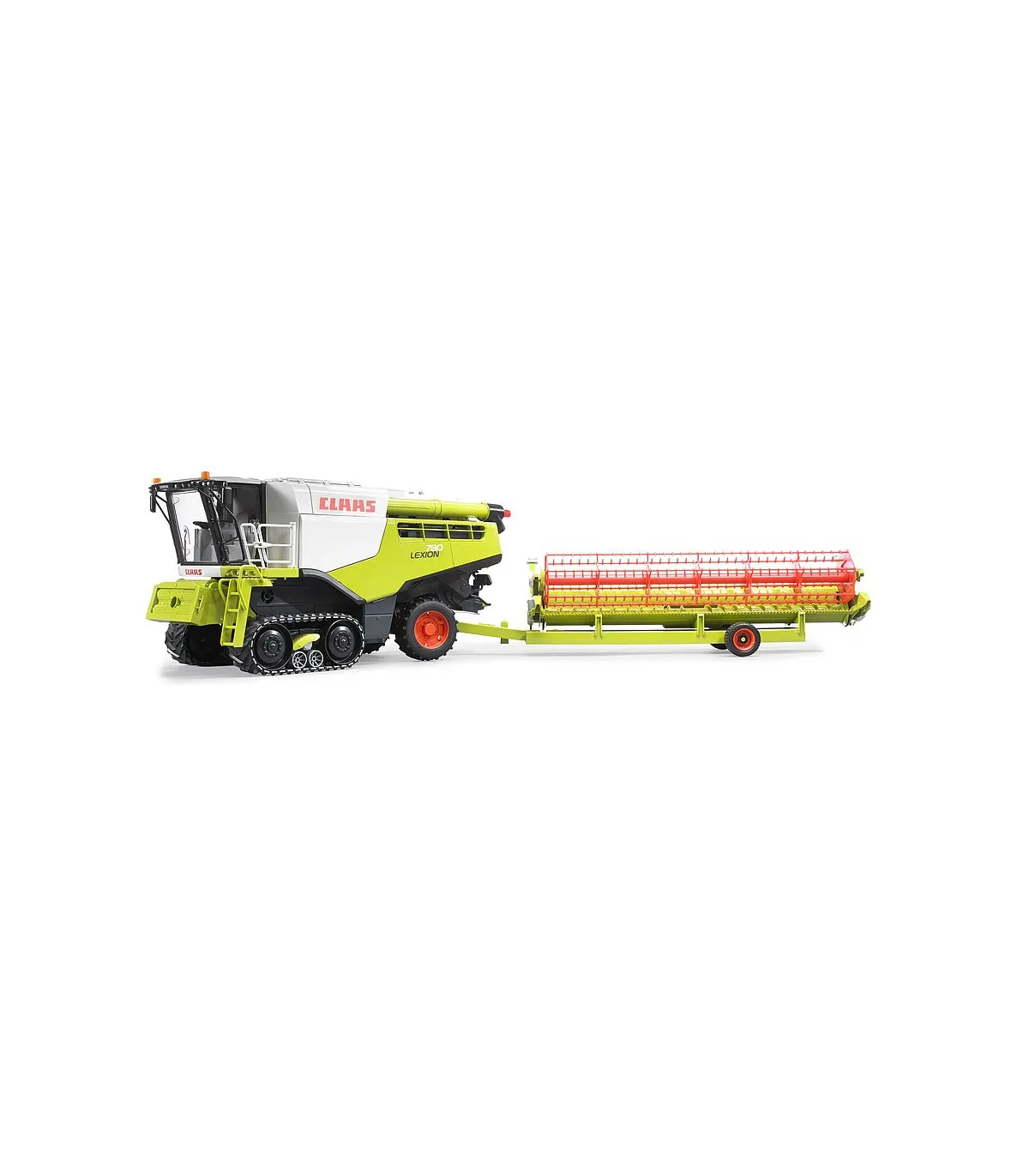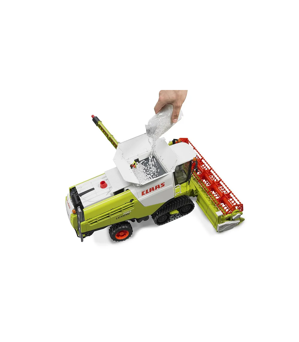 La cosechadora Claas Lexion 780 Terra Trac de BRUDER Spielwaren sigue fielmente el modelo original y es fascinante no solo por su tamaño y mano de obra, sino también por su amplia gama de funciones. Las huellas de la cosechadora son particularmente llamativas. TERRA TRAC un desarrollo innovador de Claas. Las megacosechadoras de hoy, con su alto rendimiento y los altos pesos operativos asociados, requieren estos desarrollos innovadores para lograr la presión sobre el suelo para un manejo suave del suelo. Al mismo tiempo, la eficiencia de recolección aumenta nuevamente, a medida que se reducen la resistencia de conducción y el deslizamiento de la unidad de transmisión. BRUDER trae esta unidad TERRA TRAC completamente funcional como la original con cintas de correr robustas, como la primera empresa del mundo como modelo de juguete en una escala de 1: 16, en el mercado. Además, la dirección fácil de usar facilita la maniobra del modelo grande, incluso para manos pequeñas. La unidad de corte también es apta para uso todoterreno, tiene compensación de nivel durante el uso y se puede acoplar al enganche del remolque de la cosechadora mediante un carro de la unidad de corte una vez finalizado el trabajo. Otras características especiales de las funciones jugables son el carrete accionado por una rueda de fricción y el depósito de grano rellenable, que se puede vaciar a través del tubo de vaciado mediante un accionamiento de husillo manual. Por tanto, apenas existen límites en la realidad a la hora de simular los procesos de trabajo de una cosechadora.