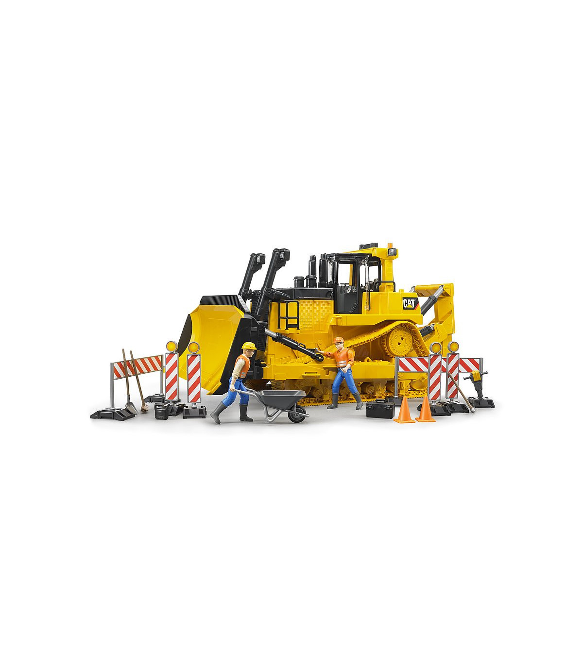 El gran modelo de la topadora de cadena Cat® impresiona a todos los espectadores por sus dimensiones y diseño con la prominente transmisión por cadena delta. Al desarrollar nuestro modelo, nos sentimos obligados a dar esta impresión y, de acuerdo con nuestra afirmación "En lo pequeño como en lo grande" (Al igual que en la realidad), creamos un modelo impresionante como juguete. Estas máquinas se utilizan principalmente en grandes obras de construcción y en el área de la mina para nivelar grandes áreas. La cadena de eslabones completamente funcional, que consta de 62 eslabones y no muestra debilidades incluso en el uso diario rudo (cajón de arena), recibe una atención especial. Como en el original, la poderosa hoja topadora es ajustable en altura y ángulo. El impresionante ripper se puede ajustar en altura. Las puertas de la cabina se pueden abrir para agregar nuestras figuras de bworld a la excavadora y así crear un mundo de juego basado en la realidad. Nada se interpone en el camino del juego realista con esta verdadera máquina de potencia en la habitación de los niños o al aire libre. Los vehículos BRUDER se pueden complementar de forma ideal con nuestros accesorios para obras.