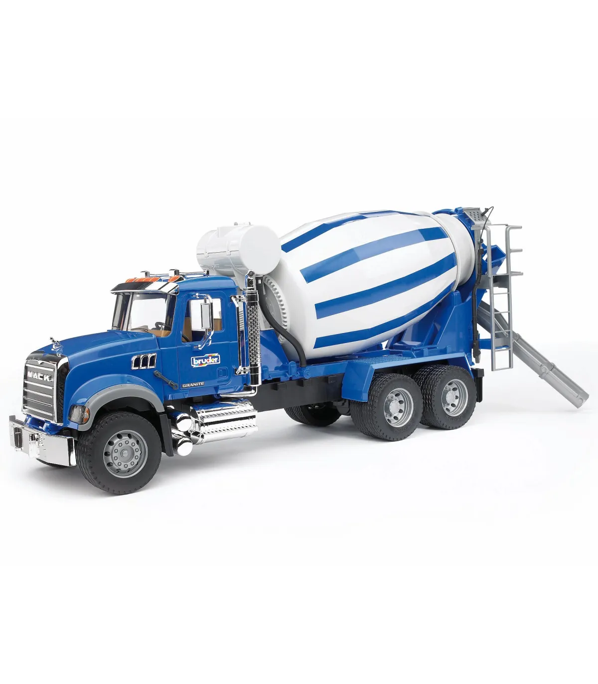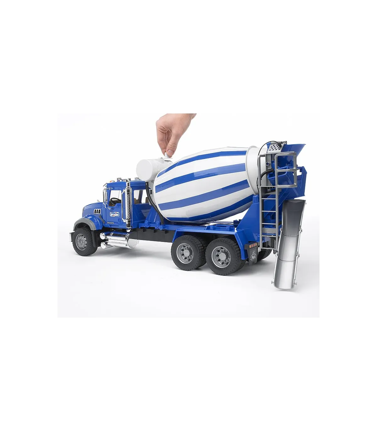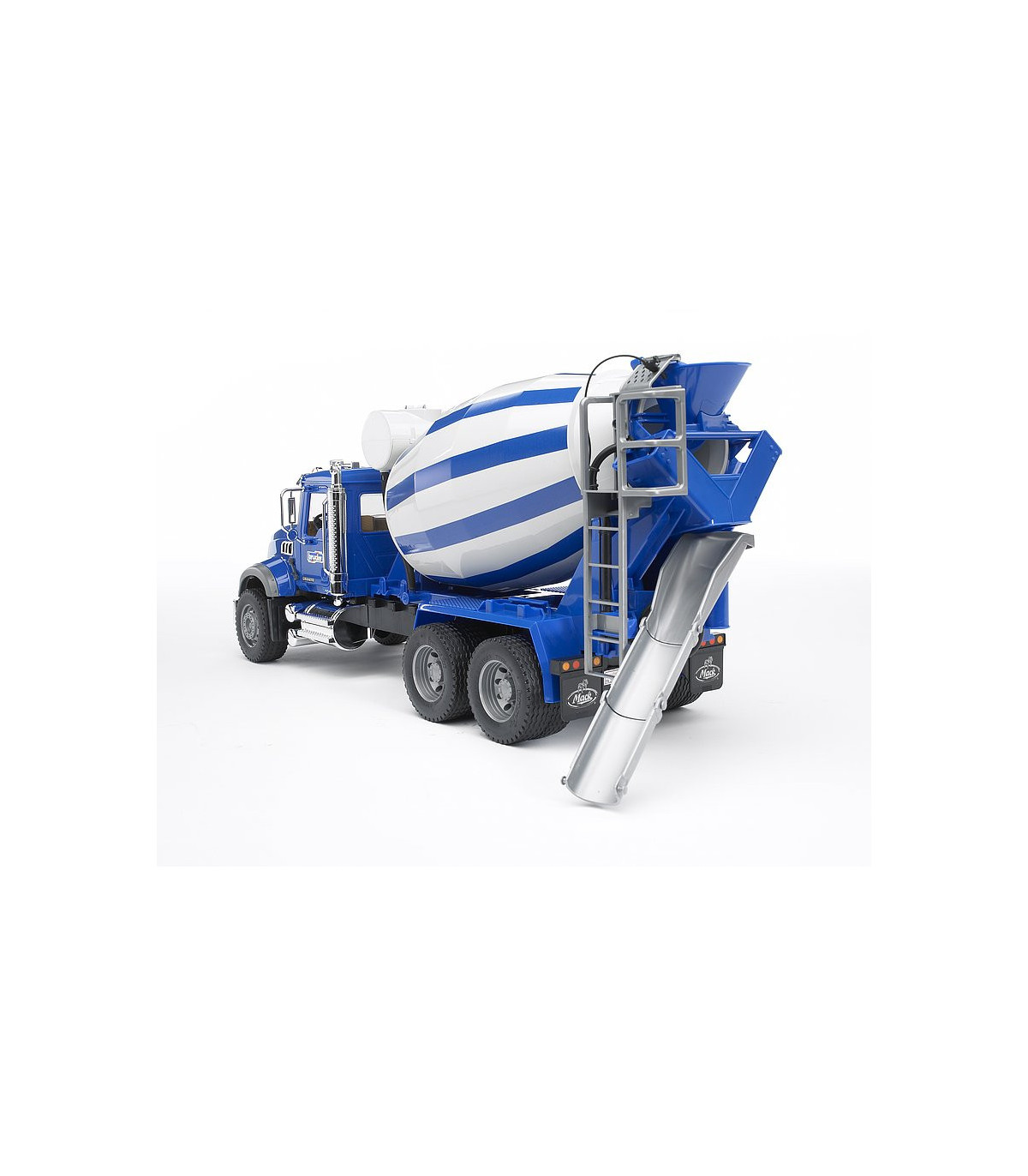 La cabina del conductor "tremendamente" realista con puertas que se pueden abrir, capó de motor abatible que deja ver el bloque de motor, espejos traseros abatibles y muchas piezas adosadas con efecto cromado llama verdaderamente la atención no sólo a los aficionados a los camiones. El tambor de la hormigonera (tambor con espiral de mezcla) se puede girar mediante una manivela extensible sumergida en el "depósito de agua" (simulado). Según la dirección de giro la carga se transporta al tambor o se vacía. Los toboganes montados en los laterales de la estructura se pueden unir al lanzadero de hormigón posterior para alargarlo.