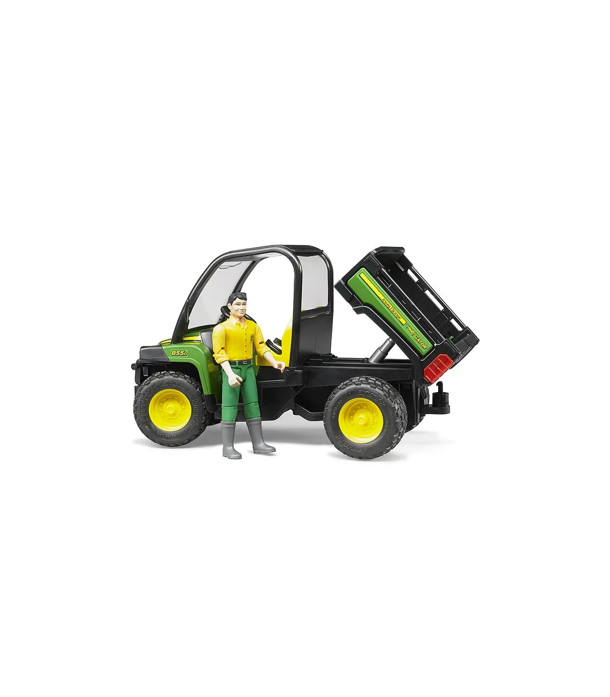 El John Deere Gator 855D es un verdadero todoterreno, ya sea para trabajos agrícolas, como apoyo en la silvicultura, para el trabajo urbano o en obras de construcción. el Gator tiene una excelente figura en todas partes. Esta combinación particularmente exitosa de un vehículo comercial eficaz y un mini-móvil que se puede usar en cualquier lugar hace del Gator algo muy especial. Especialmente con la figura del conductor BRUDER totalmente articulada, este artículo enriquece el entorno de juego de nuestros pequeños clientes, estimula el juego de roles y la imaginación no conoce límites.