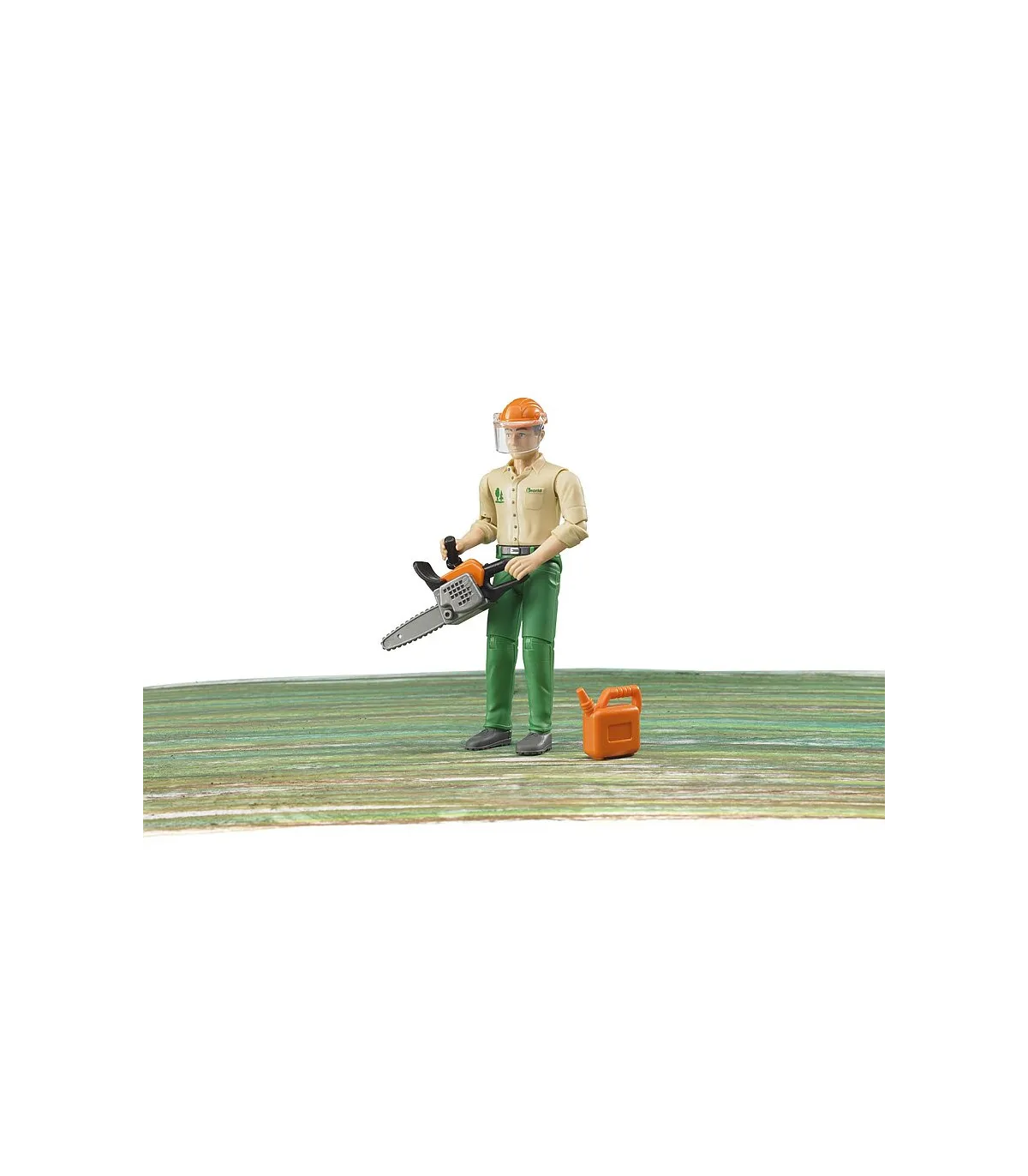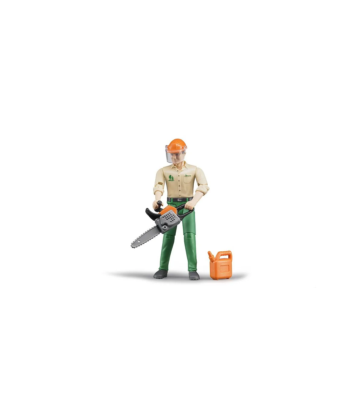 La amplia gama de BRUDER incluye numerosos tractores, remolques y equipos forestales. El complemento ideal para ello son las figuras de juego, que aportan aún más diversión y realismo a toda la zona de juego. El trabajador forestal con accesorios es el complemento ideal para todos los equipos forestales de la gama. ? ¿Para estar seguros? Equipado con un casco protector con visera, el trabajo puede comenzar de inmediato. Además, el conjunto incluye una motosierra y una lata de gasolina para que la vida cotidiana de un trabajador forestal se pueda simular de la forma más realista posible. La cabeza del trabajador, así como los brazos y piernas son móviles y la ropa está diseñada para que coincida con el tema.