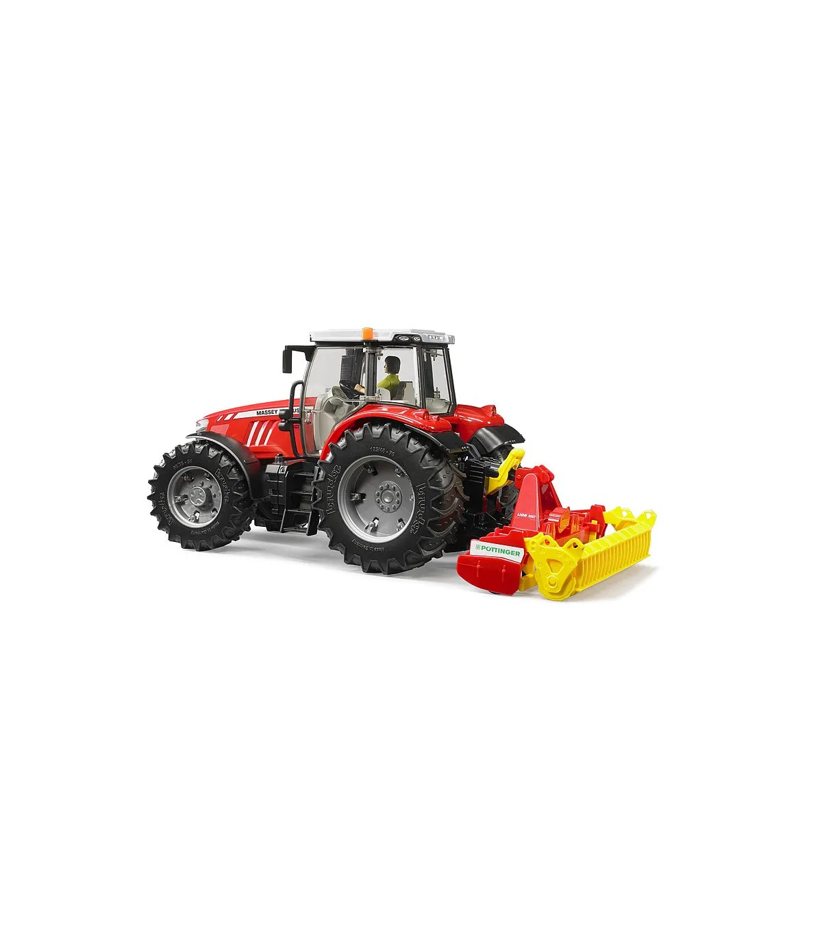 La grada rotativa Pöttinger Lion 3002 se utiliza para el cultivo de suelos agrícolas y se utiliza en particular para preparar el lecho de siembra antes de la siembra. El modelo dispone del adaptador específico BRUDER con el que se puede acoplar la grada rotativa a algunos tractores de la gama. Gracias al mecanismo de elevación integrado, tanto el transporte como la posición de trabajo se pueden reproducir fielmente al original levantando y bajando la unidad. El rodillo de presión giratorio se encarga del procesamiento del piso en la posición de trabajo, mientras que muchos otros detalles respaldan el efecto visual y, por lo tanto, hacen que el juego sea aún más realista.