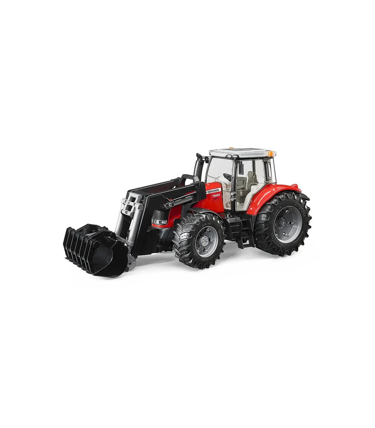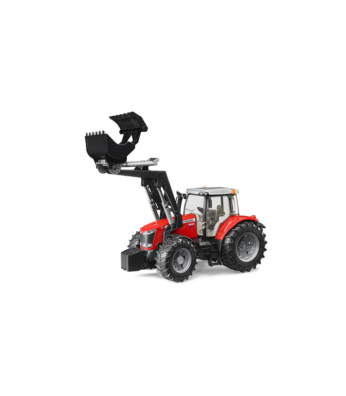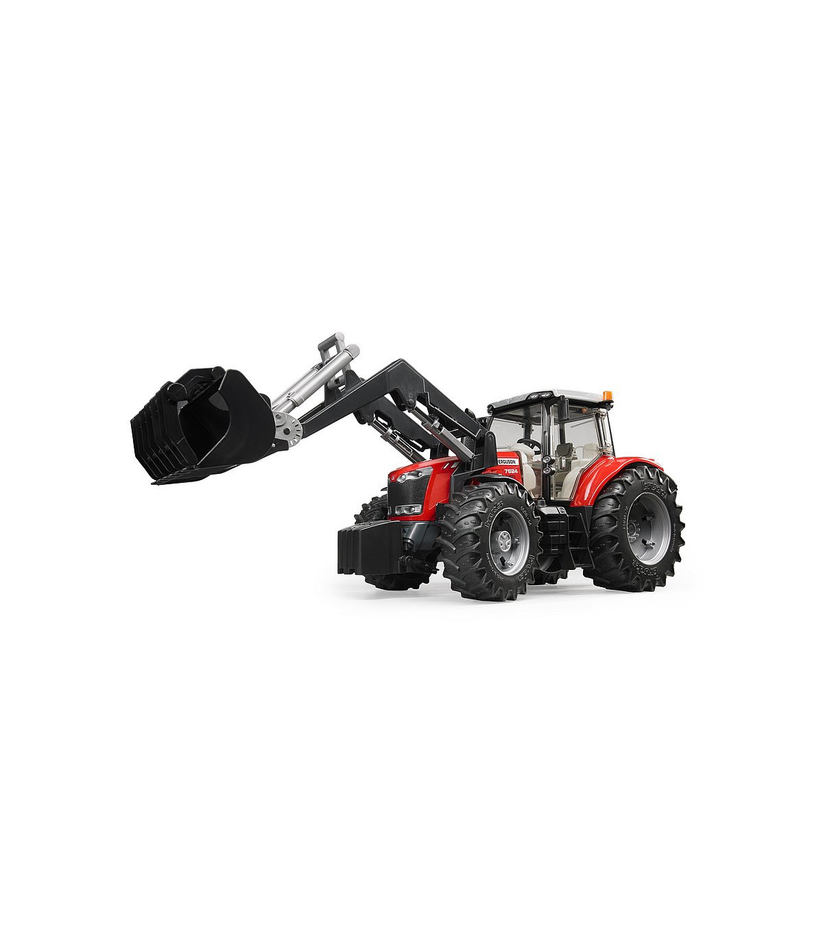 La serie de tractores MF 7600 no solo ganó el premio a la Máquina del año 2012. en la categoría de tractores de clase alta (180 a 260 CV) en Agritechnica en Alemania, pero también, por ejemplo, el? Tractor del año por diseño 2012? así como numerosos otros premios internacionales. Por tanto, no es de extrañar que esta unidad de potencia esté representada en la clase de tractores BRUDER más potente (PREMIUM-PRO). Así, el modelo también cuenta con todas las características que hablan por el grupo tractor, como una cabina acristalada, puertas y capó que se pueden abrir y la función de dirección mediante un manillar adicional que se inserta a través del techo del tractor. El eje de giro todoterreno aumenta la agilidad, mientras que el peso delantero desmontable y el cargador frontal hacen del tractor un todoterreno flexible. Se pueden agregar numerosos accesorios y remolques BRUDER al acoplamiento de remolque ajustable en altura para simular toda la vida cotidiana de un conductor de tractor. Los caracteres necesarios para ello también se pueden encontrar en la amplia gama BRUDER.