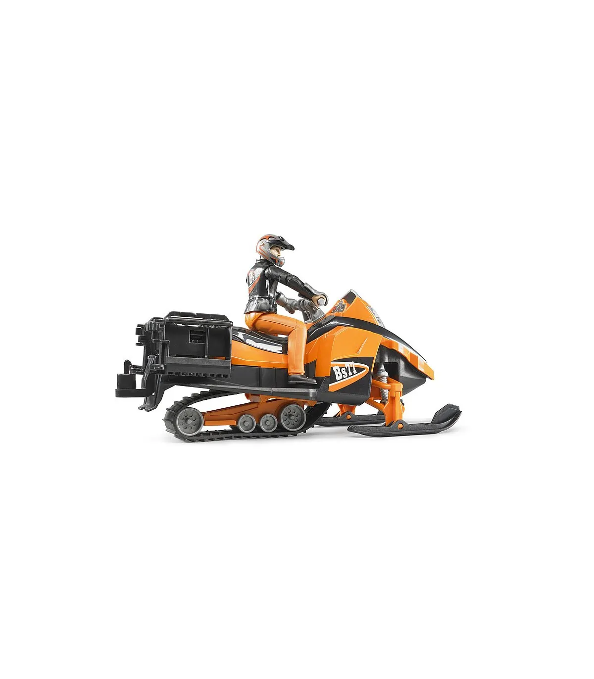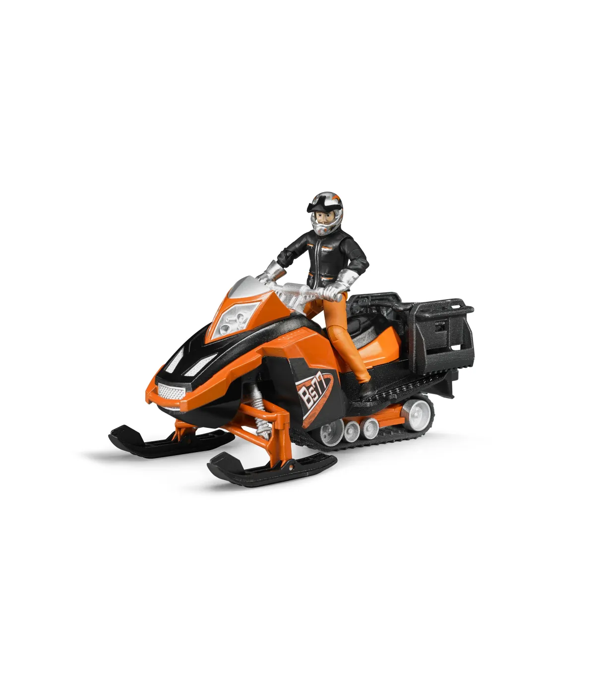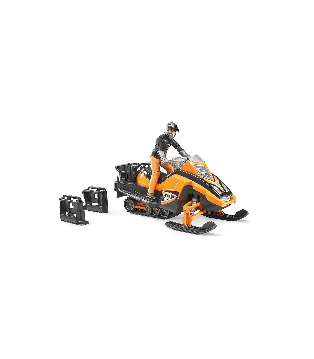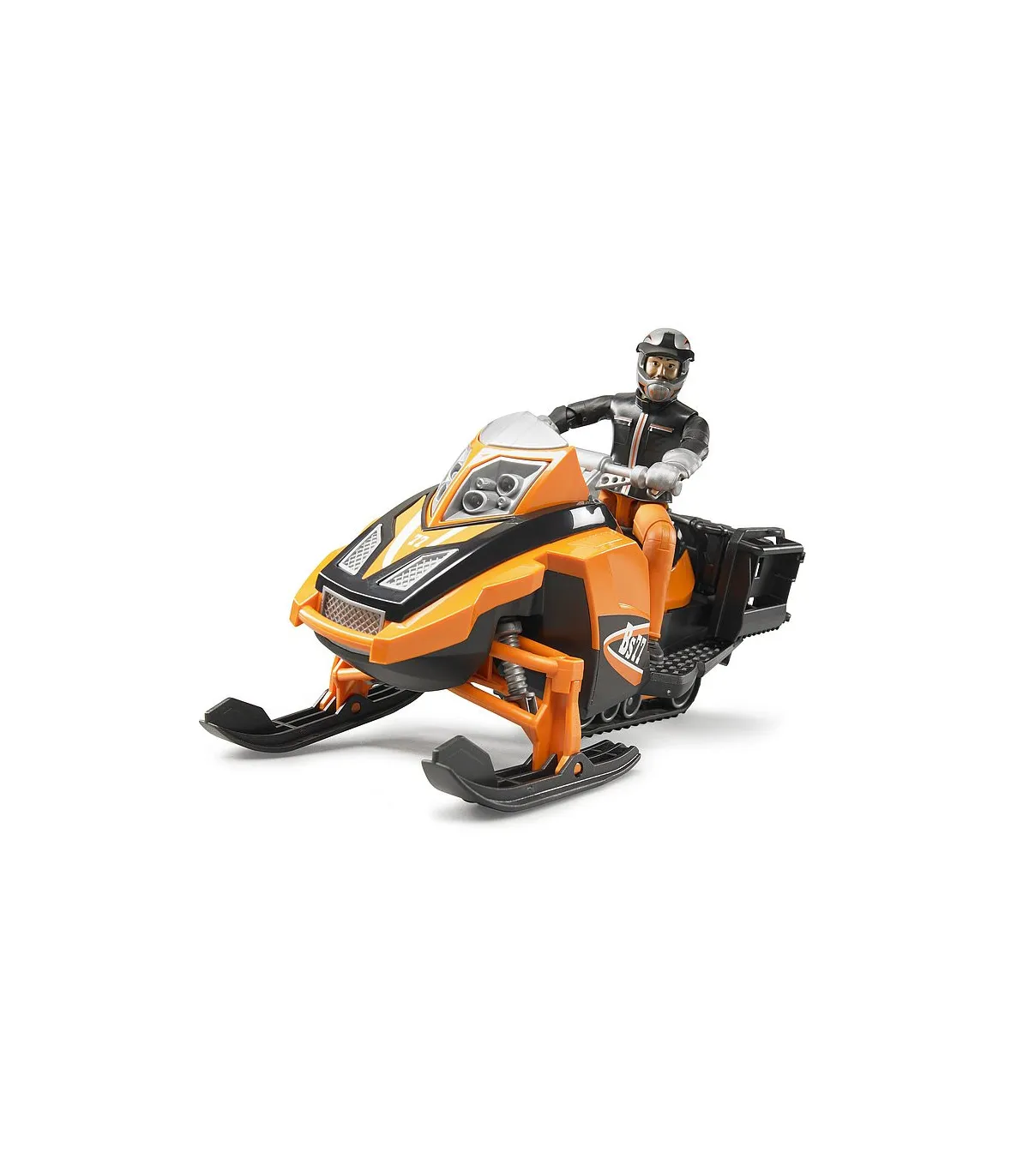 Para muchas personas, los deportes de invierno suponen una oportunidad de recuperarse de su estresante vida cotidiana, respirar el aire fresco de la montaña y disfrutar de fantásticos paisajes montañosos cubiertos de nieve. En estas regiones también se utilizan motos de nieve, que pueden circular por las pistas de nieve de forma rápida y segura como ningún otro medio de transporte. En esos casos, la moto de nieve de BRUDER es adecuada para la conducción deportiva y también como vehículo utilitario en todas las aplicaciones de pista. Por supuesto, el conductor cuenta con equipo de protección, casco de seguridad y guantes, para los rápidos desplazamientos al mando de su moto de nieve. El chasis de suspensión completa con cadena de elastómero, en combinación con la suspensión delantera oscilante de los esquíes, ofrece excelentes características de manejo en terrenos intransitables. El asiento de la moto de nieve brinda espacio para dos personas. Así, un pasajero bworld puede acompañar al conductor en cualquier momento. En este caso, el complemento ideal es, por ejemplo, el esquiador (n.º de art. 60040) o la chica con snowboard (n.º de art. 60420) de la extensa gama de invierno de BRUDER.