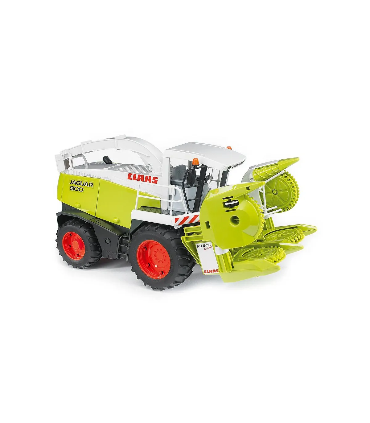 La cosechadora de forraje Claas Jaguar 900 es una réplica detallada de la original, que en realidad es una máquina recolectora impresionante del líder del mercado en tecnología de recolección en Europa. El modelo se caracteriza por un cabezal de maíz con cuatro discos de alimentación que se accionan cuando el vehículo está en movimiento. Para garantizar la funcionalidad incluso en los baches en el área de juego, el cabezal de maíz está suspendido en forma de péndulo y se estabiliza en la posición central mediante un resorte de torsión. El cabezal de maíz también es extraíble, lo que revela el mecanismo de picado indicado. Para el transporte por carretera, ambos discos de alimentación externos se pueden plegar y se puede levantar todo el cabezal de maíz. Además, el modelo también ofrece trampillas de carcasa que se pueden abrir, lo que permite ver la tecnología, como el motor y la correa de transmisión. El llamativo pico de descarga se puede ajustar de muchas formas de la misma forma que el original. Un eje pendular todoterreno, neumáticos perfilados y una cabina del conductor parcialmente acristalada completan el cuadro. Para complementar el juego, la picadora de forraje se puede equipar con neumáticos gemelos, nº de artículo: 02013 (no incluido).