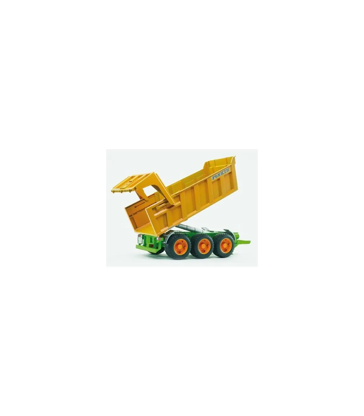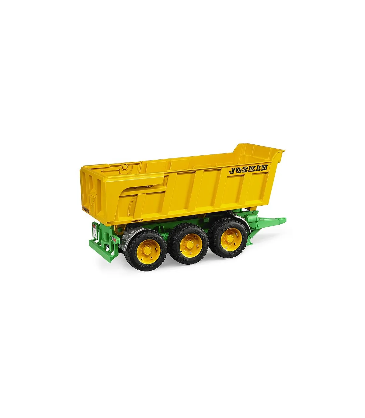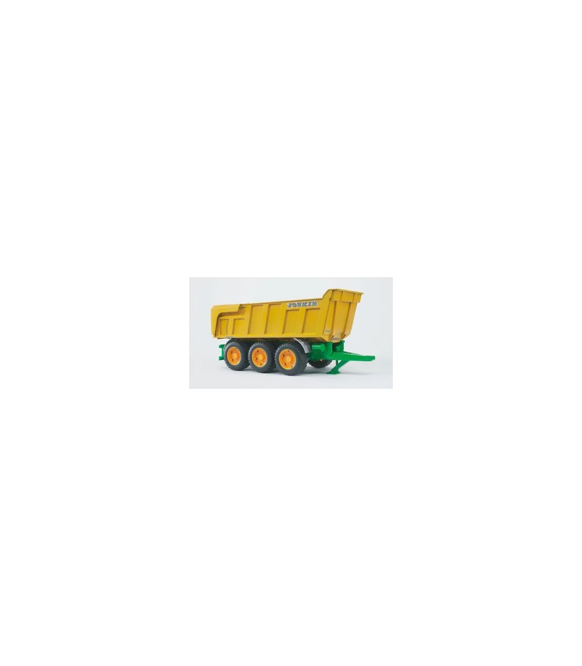 Uno de los remolques basculantes de bañera más grandes y pesados del mercado es el volquete de 3 ejes del fabricante belga Joskin. Diseñados para cargas pesadas y transportes en condiciones extremas, como obras de ingeniería civil o uso agrícola en terrenos difíciles, estos "monstruos" soportan hasta 24 toneladas de carga útil o hasta 29 metros cúbicos de volumen de carga en el original. El impresionante modelo BRUDER fue desarrollado en analogía con la serie original "Trans-SPACE" y, en línea con nuestro eslogan ... "como si fuera real" ... tiene un volquete basculante plegable y bloqueable con apertura automática del portón trasero. El chasis de 3 ejes compensa todos los terrenos irregulares. Este remolque basculante es ideal para los mejores tractores profesionales de la nueva generación, que han estado disponibles desde el otoño de 2004 y ya han encontrado muchos clientes entusiastas. Pero los tractores de la serie Profi y nuestros Unimog (que utilizan un adaptador de acoplamiento) también son adecuados como vehículos de remolque.
