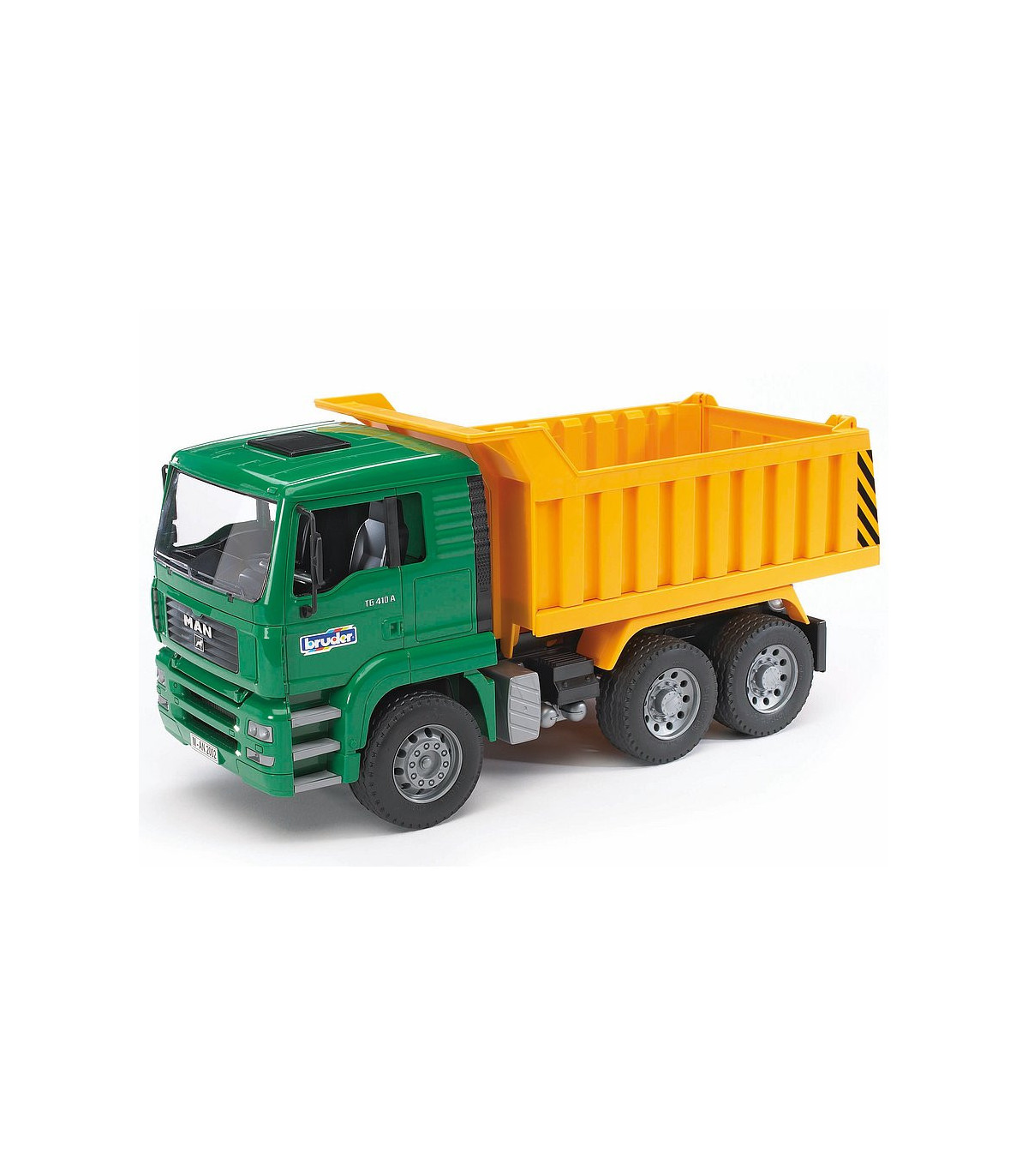 La cabina del conductor inclinable del camión MAN con cuerpo basculante permite ver el bloque del motor. Los espejos de la cabina se pueden desplegar. La artesa se puede inclinar y el portón trasero se puede abrir. Los neumáticos de perfil completan el cuadro. Para aumentar la diversión, el camión MAN con caja basculante se puede equipar con el módulo de luz y sonido n. ° de artículo: 02801 (no incluido en el volumen de suministro).