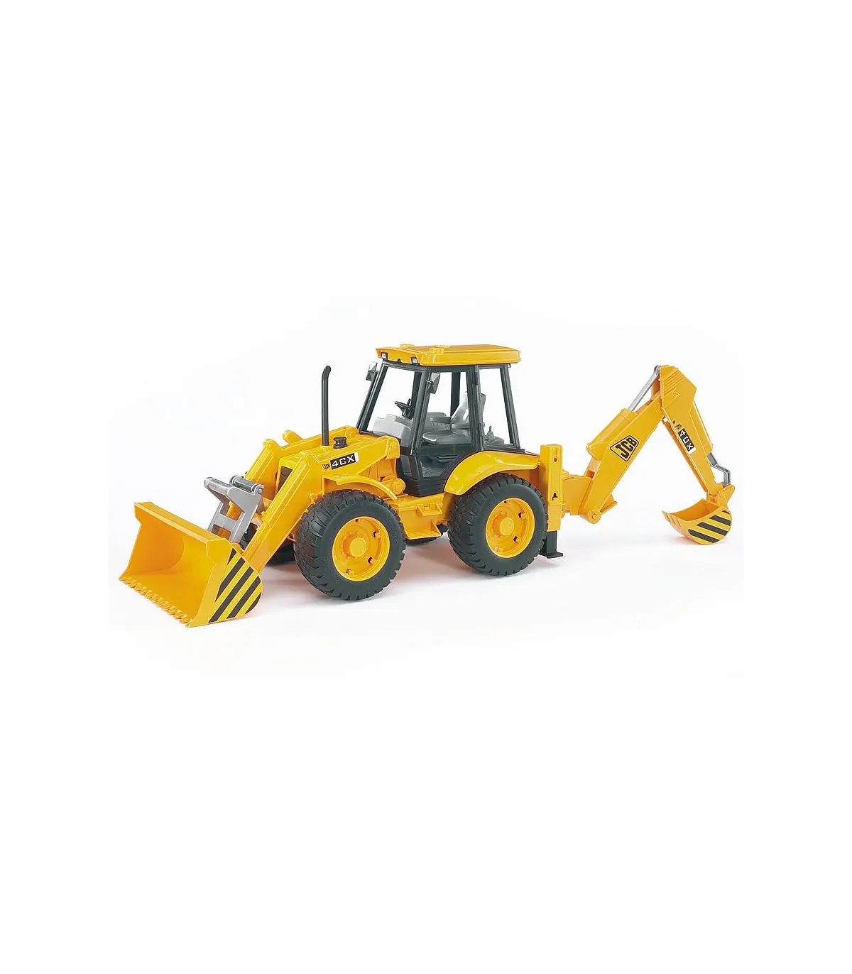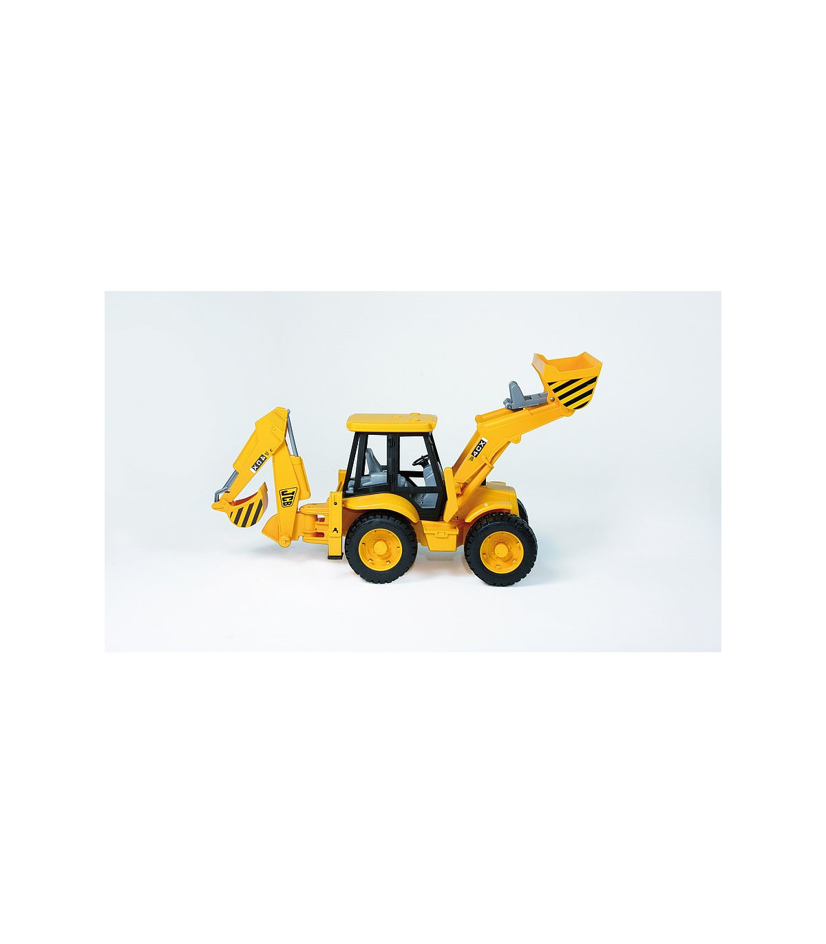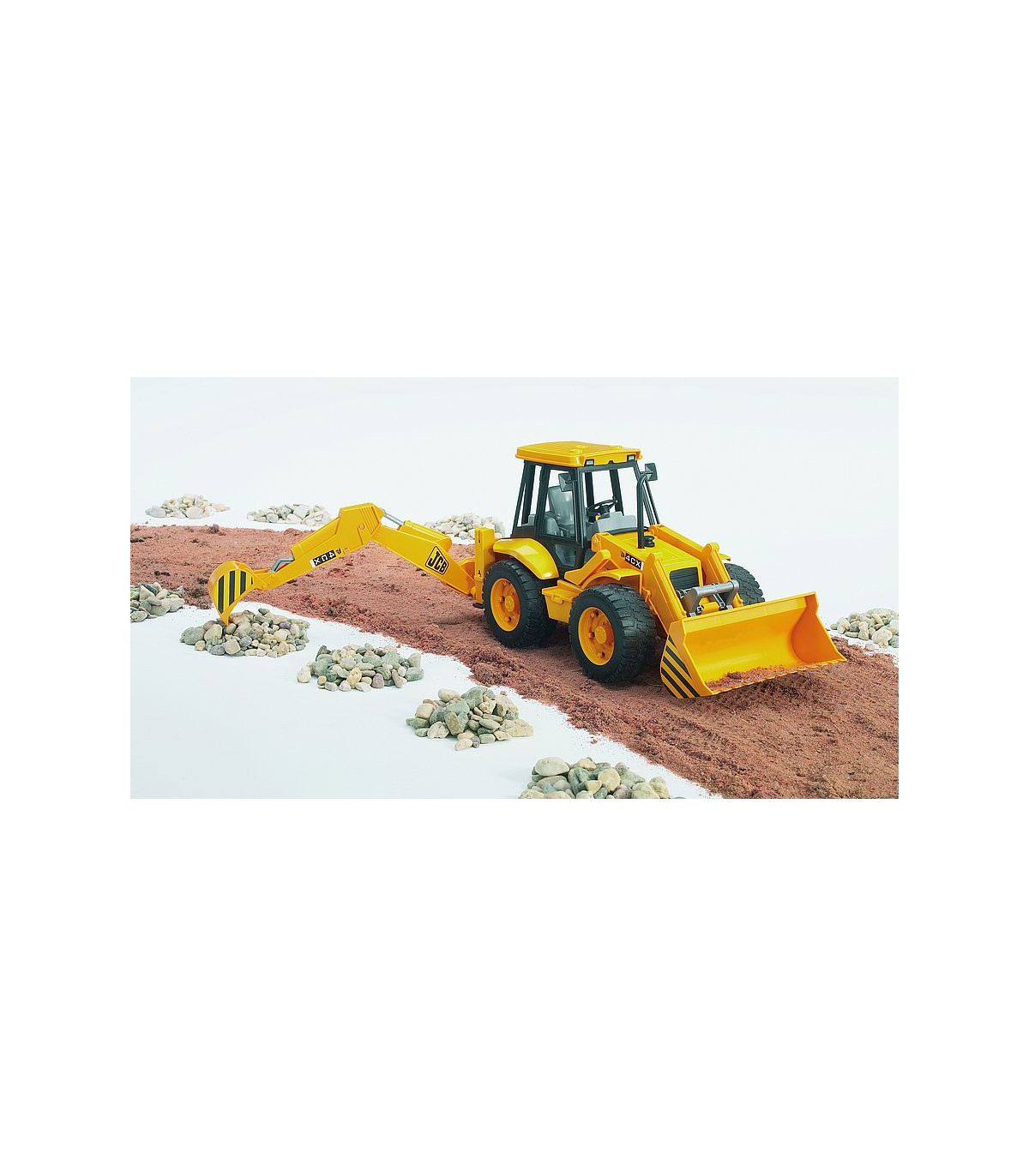 La retroexcavadora tiene una pala frontal completamente funcional que se puede bloquear en la posición más alta. La pala delantera se puede inclinar y el asiento del conductor se puede girar 360 °. El volante también es móvil. La retroexcavadora también es completamente funcional y se puede mover horizontalmente, girar 180 ° y bloquear. Los dos soportes extensibles le dan a la retroexcavadora un agarre seguro y los neumáticos de la banda de rodadura completan la imagen. La retroexcavadora se puede equipar con neumáticos gemelos en plateado, artículo n °: 02400, para complementar el juego (no incluido).