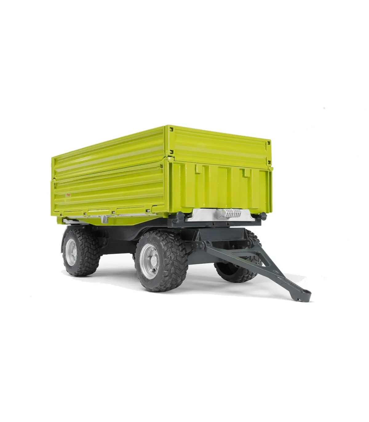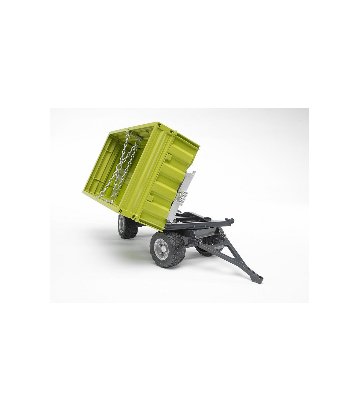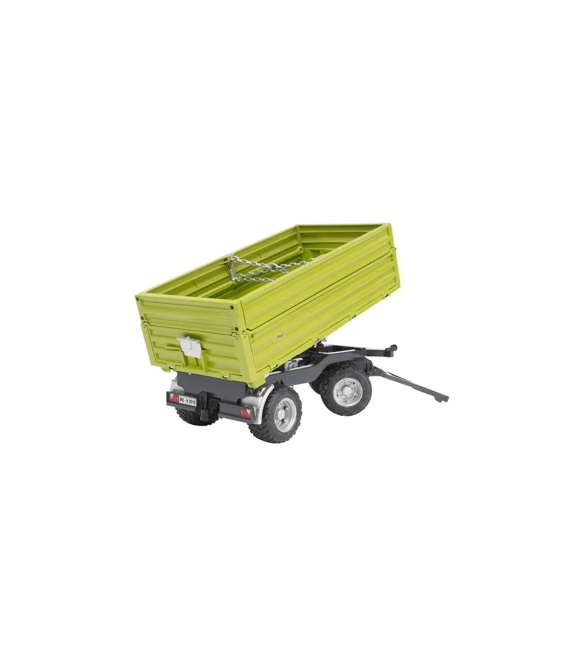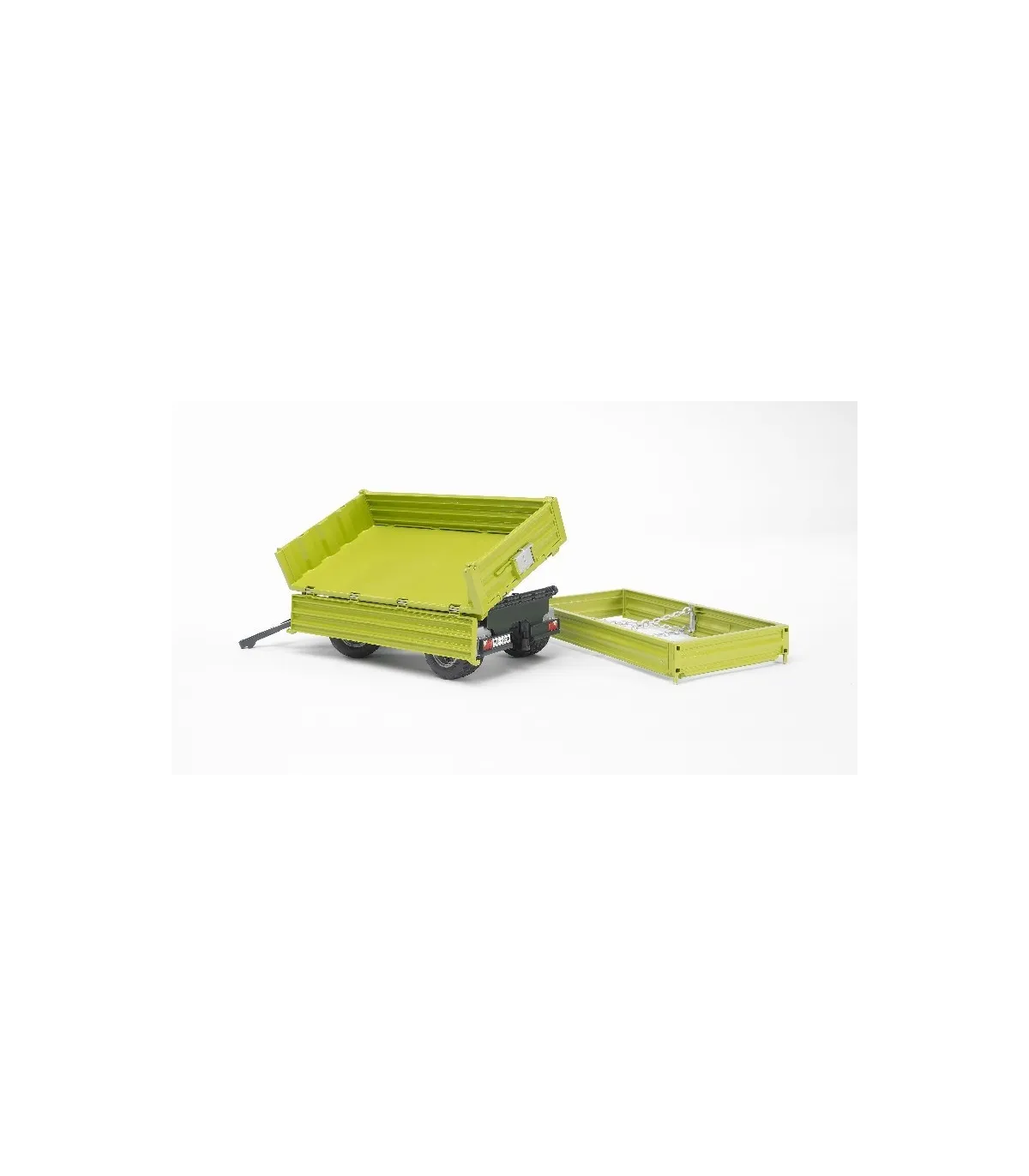 El remolque basculante de 3 vías BRUDER es único en el segmento de los juguetes. Por primera vez, el complejo control de la plataforma, que se puede inclinar en 3 lados, se ha gestionado de forma sencilla y adaptada a los niños. Nuestro desafío fue combinar funciones realistas con una jugabilidad excepcional. La placa deslizante de la innovadora unidad basculante se encuentra en la parte delantera del volquete. Si mueve la palanca de control hacia la izquierda, la plataforma se puede inclinar hacia la izquierda; si mueve la palanca de control hacia la derecha, el remolque se inclina hacia la derecha. Movida hacia el centro, la unidad de accionamiento solo le permite inclinarla hacia atrás. Así que es un juego de niños, especifique intuitivamente la dirección con la palanca de ajuste y el remolque solo se puede inclinar en esta dirección. Por supuesto, un volquete de 3 vías también incluye bisagras en la parte superior, a paredes laterales abiertas. Los pequeños agricultores disfrutarán volcando la cosecha del remolque en, por ejemplo, el silo de almacenamiento, al igual que con el modelo grande. El bloqueo lateral es tan fácil de operar como el mecanismo de inclinación. Hay una corredera de bloqueo debajo del lado abatible en cada uno de los lados basculantes. Empújelo con un pequeño tirón en la dirección de apertura y se suelta el lado abatible. Como ya se mencionó, muy fácil. Pero eso no es todo. Por supuesto, los laterales abatibles con clip también se pueden quitar. Esto significa que los laterales abatibles también se pueden abrir de forma convencional, con el eje de giro en la parte inferior de la plataforma. El bloqueo lateral es tan fácil de operar como el mecanismo de inclinación. Hay una corredera de bloqueo debajo del lado abatible en cada uno de los lados basculantes. Empújelo con un pequeño tirón en la dirección de apertura y se suelta el lado abatible. Como ya se mencionó, muy fácil. Pero eso no es todo. Por supuesto, los laterales abatibles con clip también se pueden quitar. Esto significa que los laterales abatibles también se pueden abrir de forma convencional, con el eje de giro en la parte inferior de la plataforma. El bloqueo lateral es tan fácil de operar como el mecanismo de inclinación. Hay una corredera de bloqueo debajo del lado abatible en cada uno de los lados basculantes. Empújelo con un pequeño tirón en la dirección de apertura y se suelta el lado abatible. Como ya se mencionó, muy fácil. Pero eso no es todo. Por supuesto, los laterales abatibles con clip también se pueden quitar. Esto significa que los laterales abatibles también se pueden abrir de forma convencional, con el eje de giro en la parte inferior de la plataforma. Por supuesto, los laterales abatibles con clip también se pueden quitar. Esto significa que los laterales abatibles también se pueden abrir de forma convencional, con el eje de giro en la parte inferior de la plataforma. Por supuesto, los laterales abatibles con clip también se pueden quitar. Esto significa que los laterales abatibles también se pueden abrir de forma convencional, con el eje de giro en la parte inferior de la plataforma.