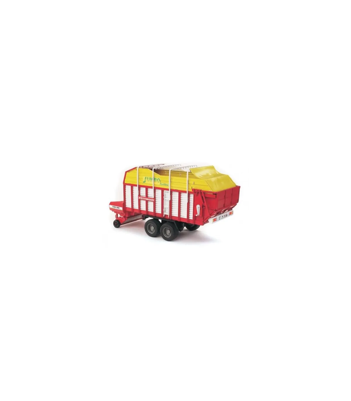 El rodillo de recogida del remolque autocargador Pöttinger se mueve mientras el vehículo está en movimiento. Se puede abrir la trampilla lateral, plegar la escalera y retirar los soportes y las cuerdas del techo (incluidos). Los rodillos dosificadores pueden accionarse accionando la manivela. El portón trasero también se puede abrir. Una pata de apoyo proporciona una sujeción segura y los neumáticos de la banda de rodadura completan la imagen. El remolque autocargador Pöttinger se adapta a todos los tractores de la serie Profi (no incluidos).
