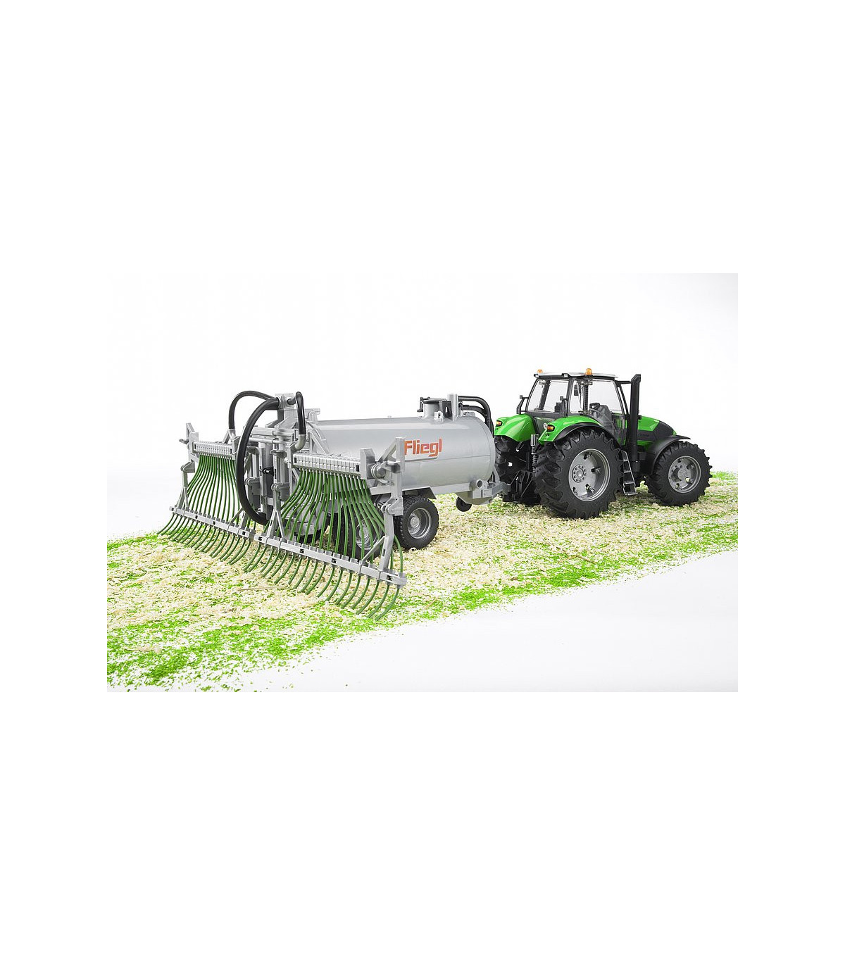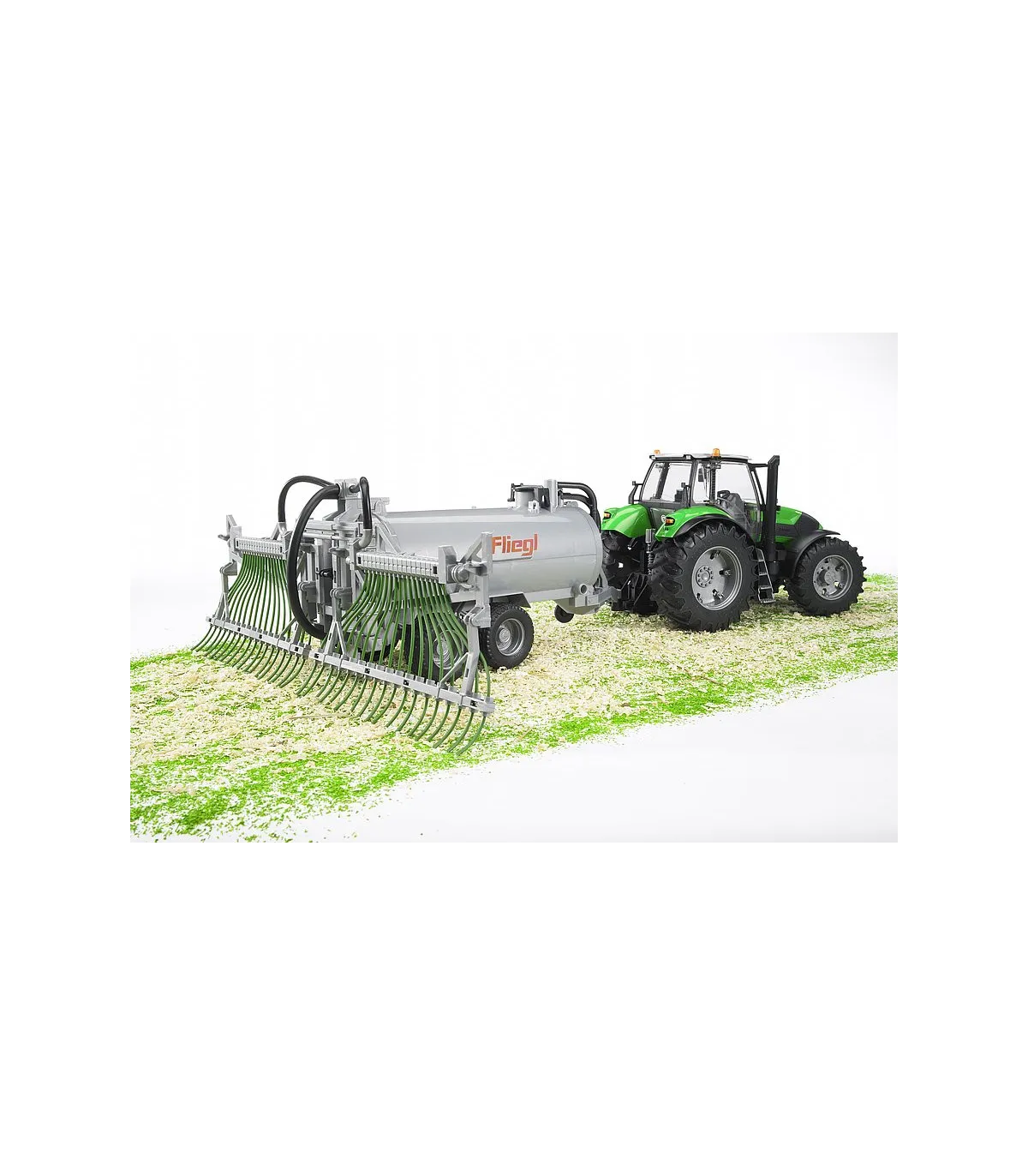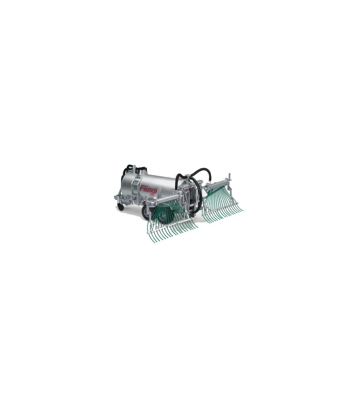 El remolque de tambor con distribuidor de manguera de arrastre modelo Fliegl se puede llenar con agua y cerrar con una tapa. El remolque de bidones se puede vaciar de nuevo a través de la válvula de salida. El distribuidor de la manguera de arrastre se puede plegar mientras se conduce. El remolque de barril con distribuidor de manguera de arrastre se adapta a todos los tractores de la serie Profi (no incluidos).