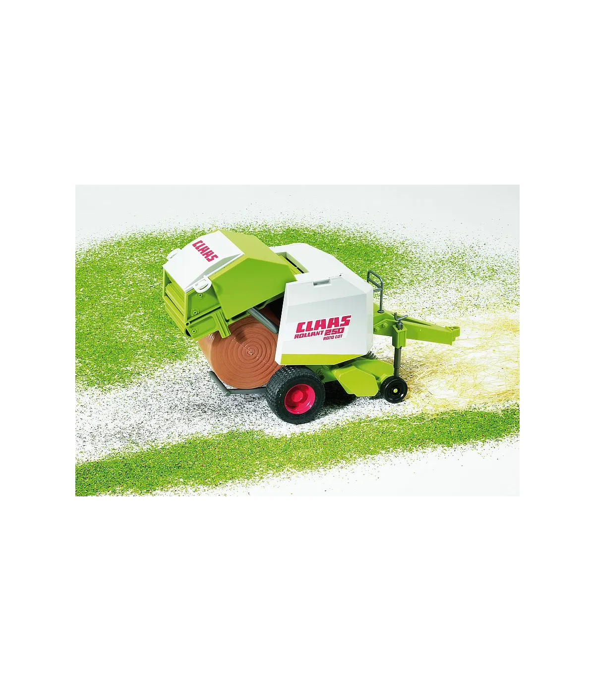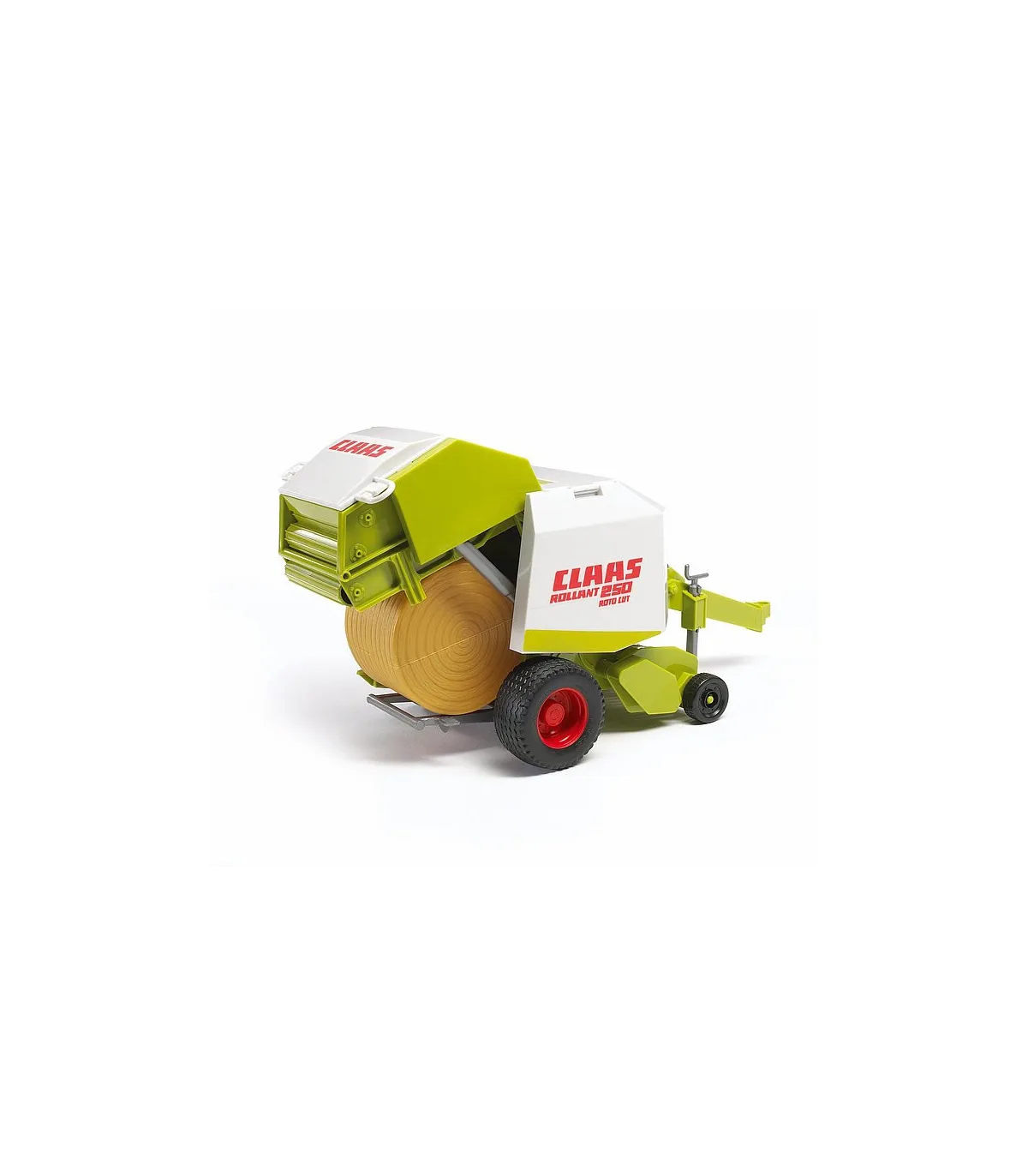 La rotoempacadora Claas Rollant 250 se puede plegar con un pick-up y es accionada por ruedas palpadoras. La tapa lateral y la parte trasera de la prensa se pueden abrir. La paca insertada se expulsa automáticamente accionando el balancín de almacenamiento. La encintadora de pacas se puede colocar mediante un enganche de remolque (no se incluye la encintadora de balas). Se incluye una paca redonda y los neumáticos con banda de rodadura completan el cuadro. Para aumentar la diversión, la rotoempacadora Claas Rollant 250 se puede combinar con todos los tractores de la serie Profi y la encintadora no. De artículo: 02122, la empacadora de pacas redondas no.: 02314 también están disponibles por separado (no incluida).