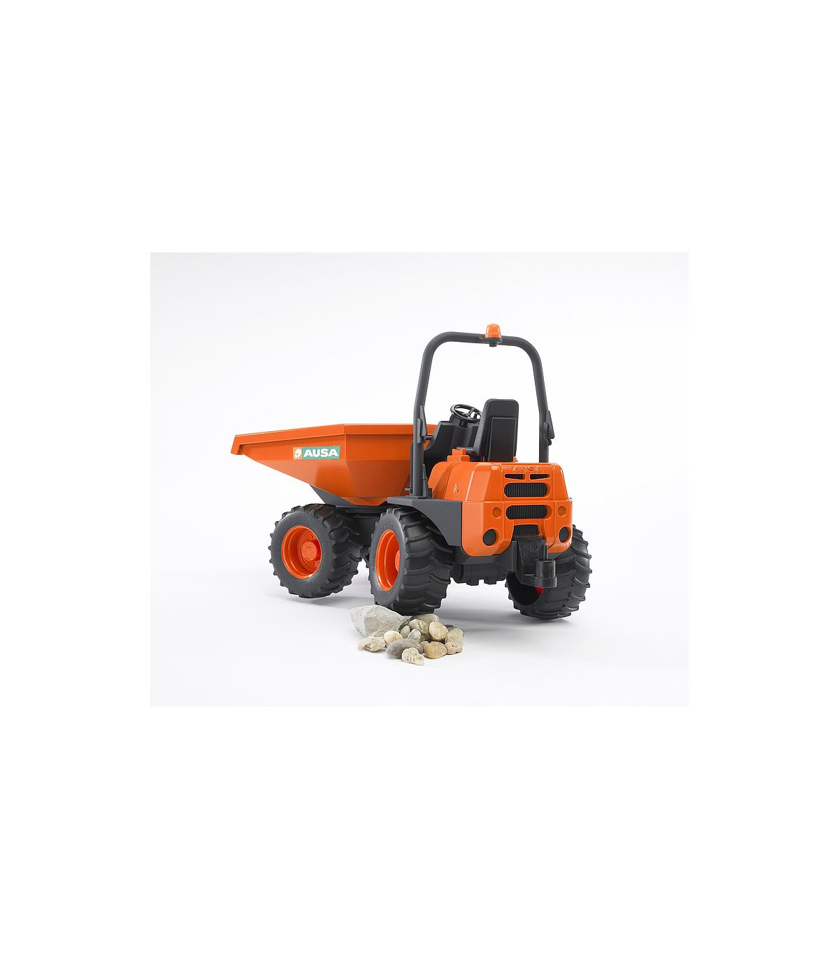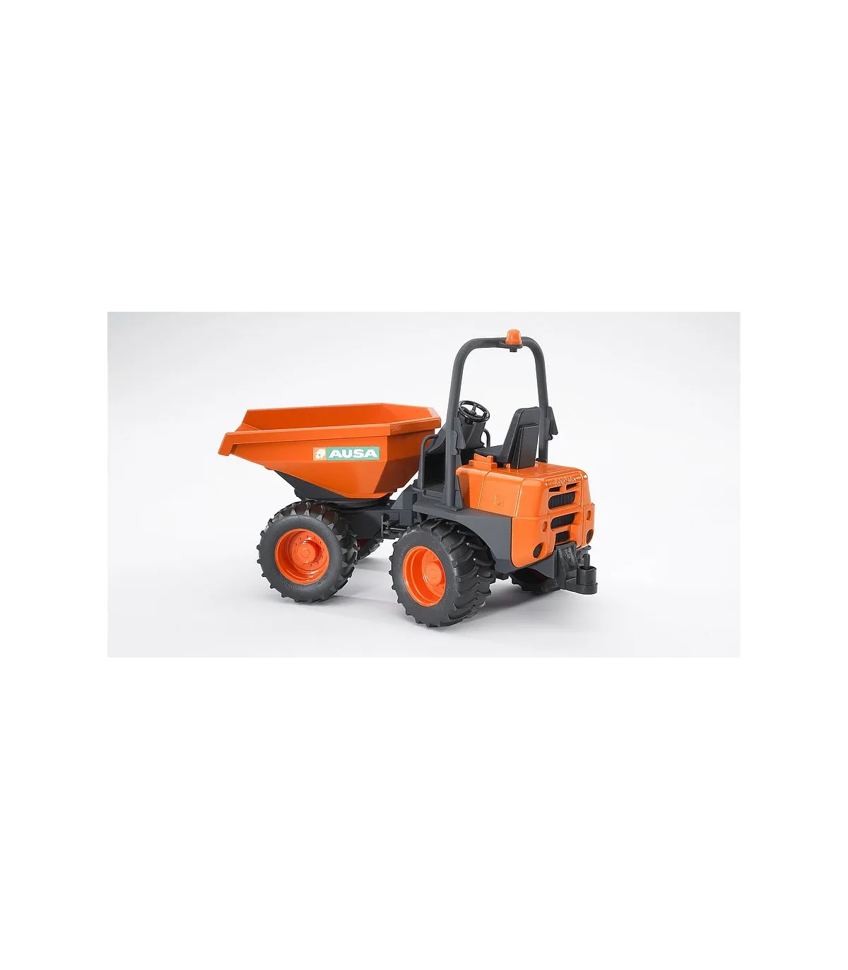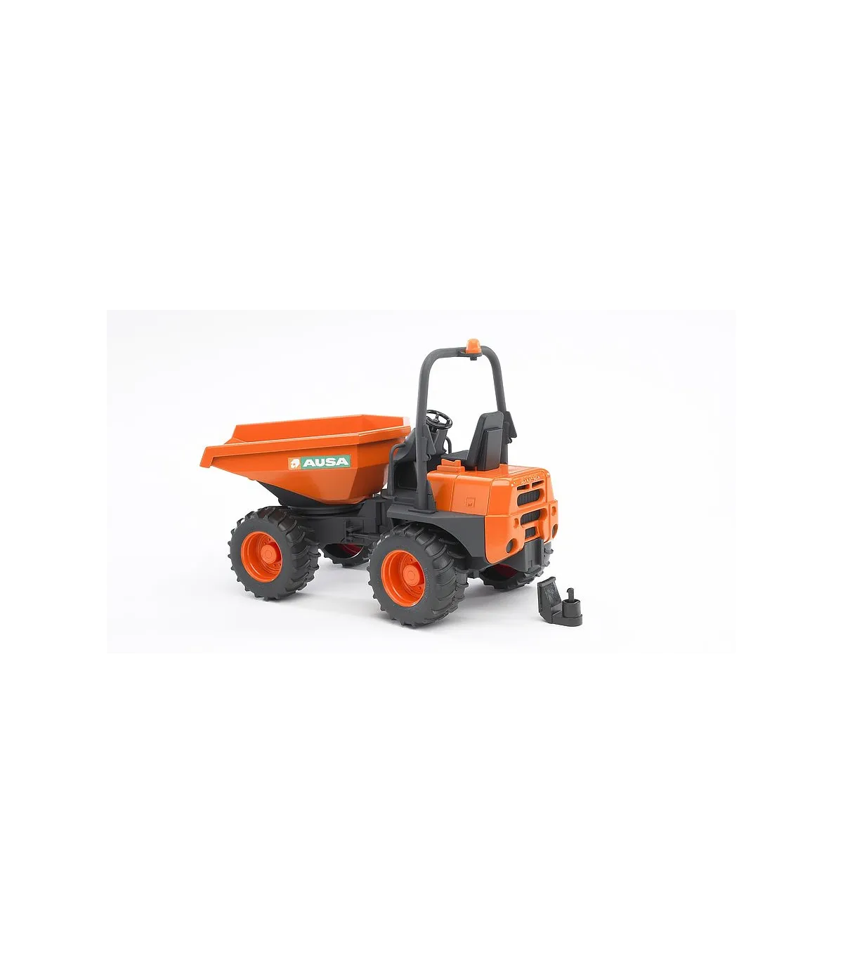 BRUDER está incorporando un minidumper a la exitosa gama de vehículos de construcción más pequeños. En su mayoría son máquinas articuladas y compactas que permiten el transporte de cargas de hasta 4 toneladas en terrenos accidentados y de difícil acceso. Con la ayuda de la tracción total y su dirección articulada, se consigue una enorme maniobrabilidad, manteniendo las cuatro ruedas en contacto constante con el suelo. El dumper D 350 AHG de la empresa española AUSA sirve de modelo para el nuevo modelo BRUDER. Como el original, el dumper BRUDER tiene dirección articulada, un volquete giratorio y, como el original, se caracteriza por una alta movilidad todoterreno. El vehículo está equipado con un acoplamiento trasero; esto permite la combinación con numerosos remolques de la gama de productos BRUDER.