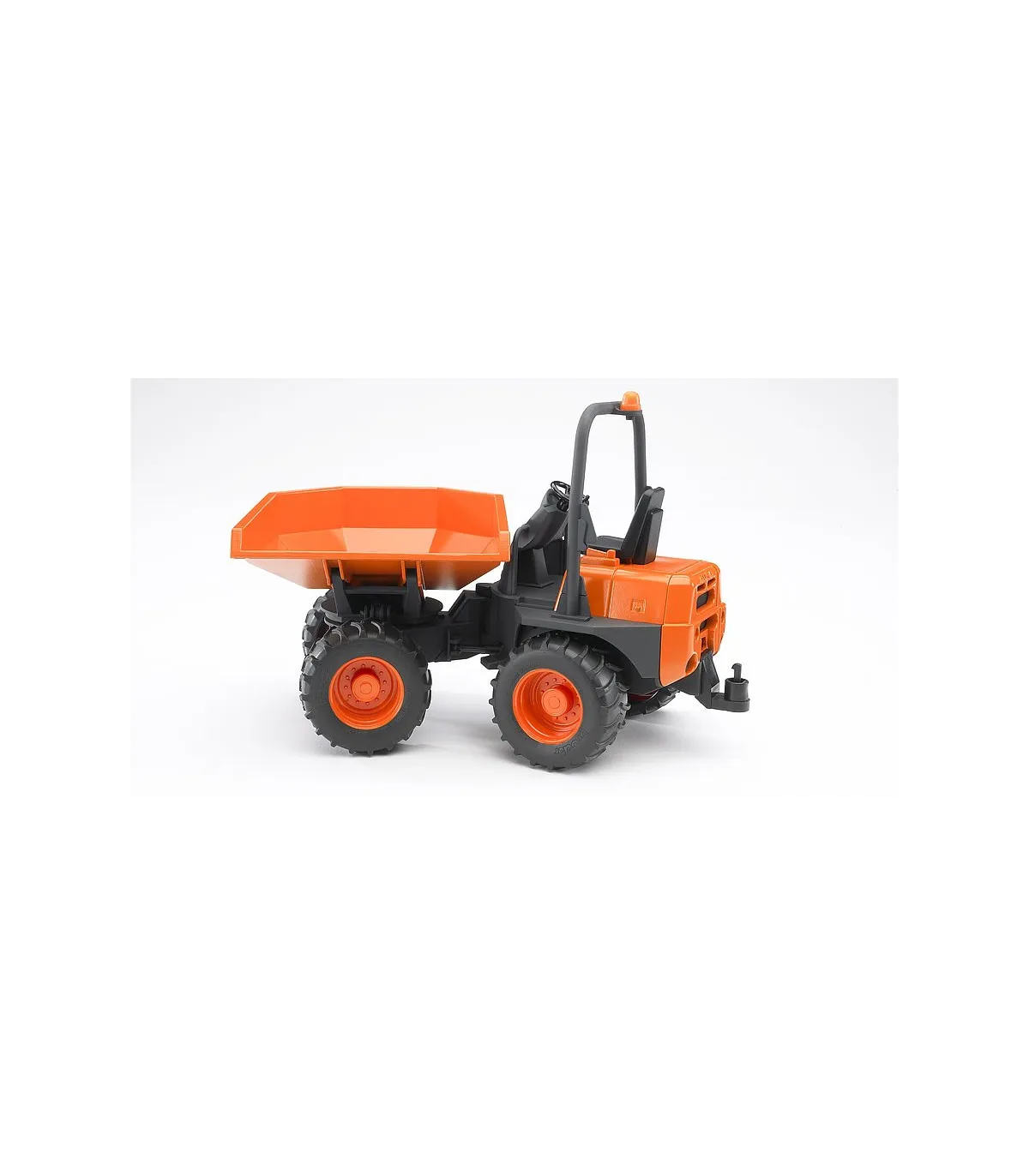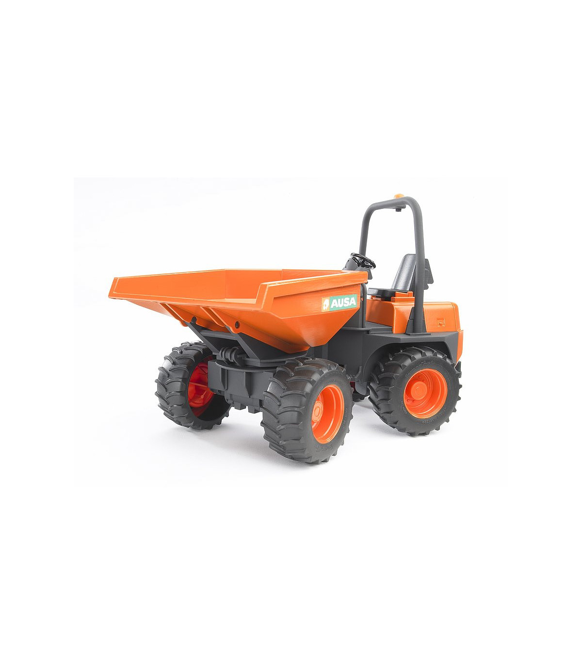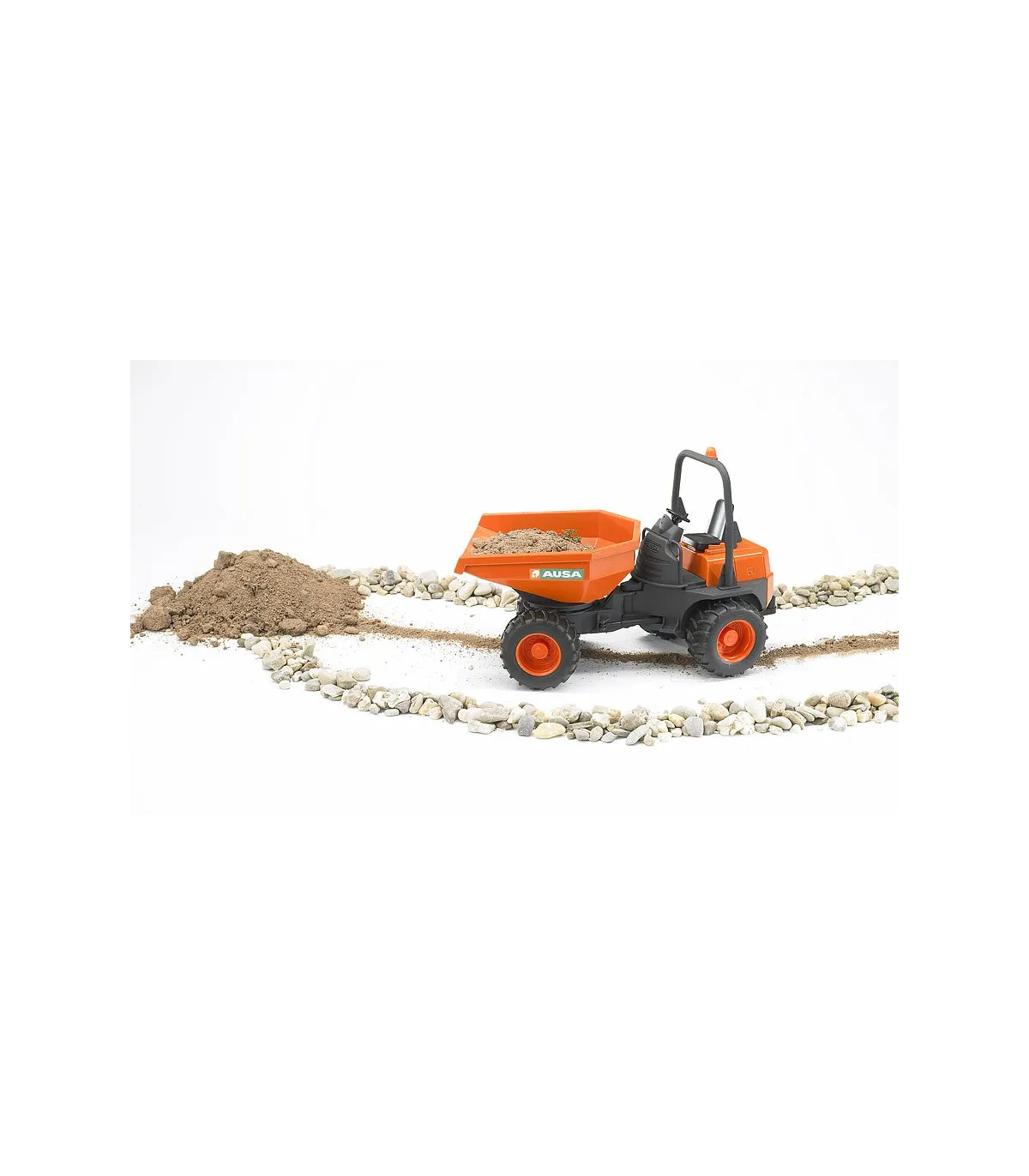 BRUDER está incorporando un minidumper a la exitosa gama de vehículos de construcción más pequeños. En su mayoría son máquinas articuladas y compactas que permiten el transporte de cargas de hasta 4 toneladas en terrenos accidentados y de difícil acceso. Con la ayuda de la tracción total y su dirección articulada, se consigue una enorme maniobrabilidad, manteniendo las cuatro ruedas en contacto constante con el suelo. El dumper D 350 AHG de la empresa española AUSA sirve de modelo para el nuevo modelo BRUDER. Como el original, el dumper BRUDER tiene dirección articulada, un volquete giratorio y, como el original, se caracteriza por una alta movilidad todoterreno. El vehículo está equipado con un acoplamiento trasero; esto permite la combinación con numerosos remolques de la gama de productos BRUDER.