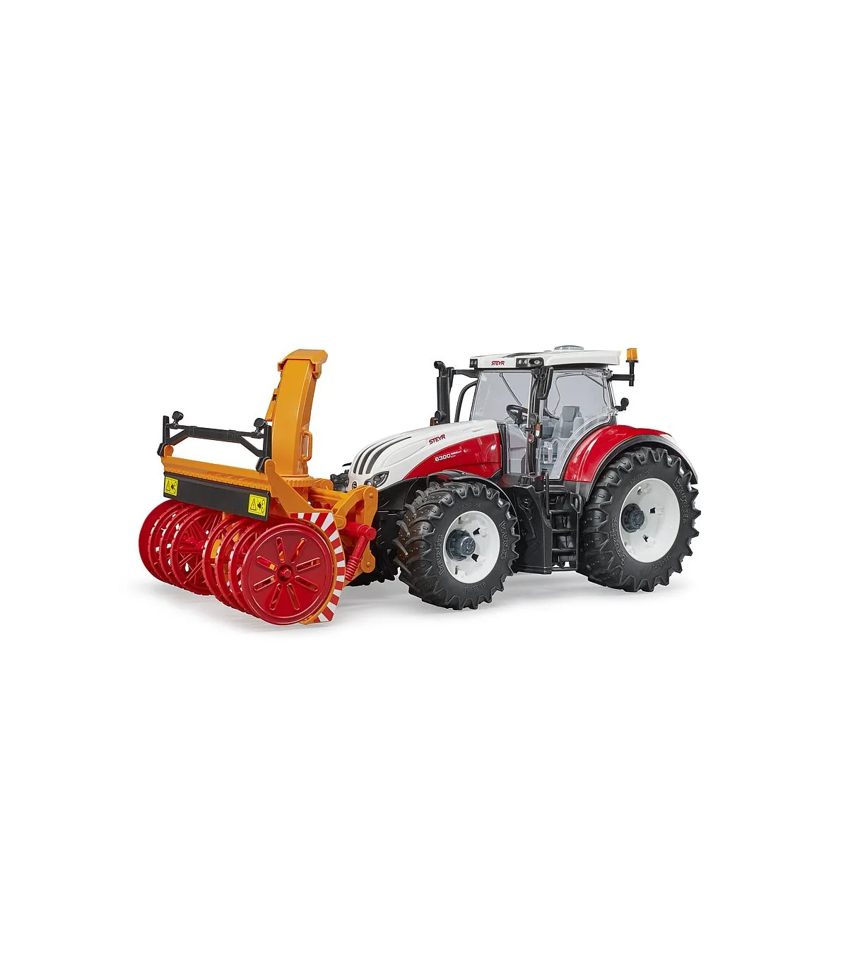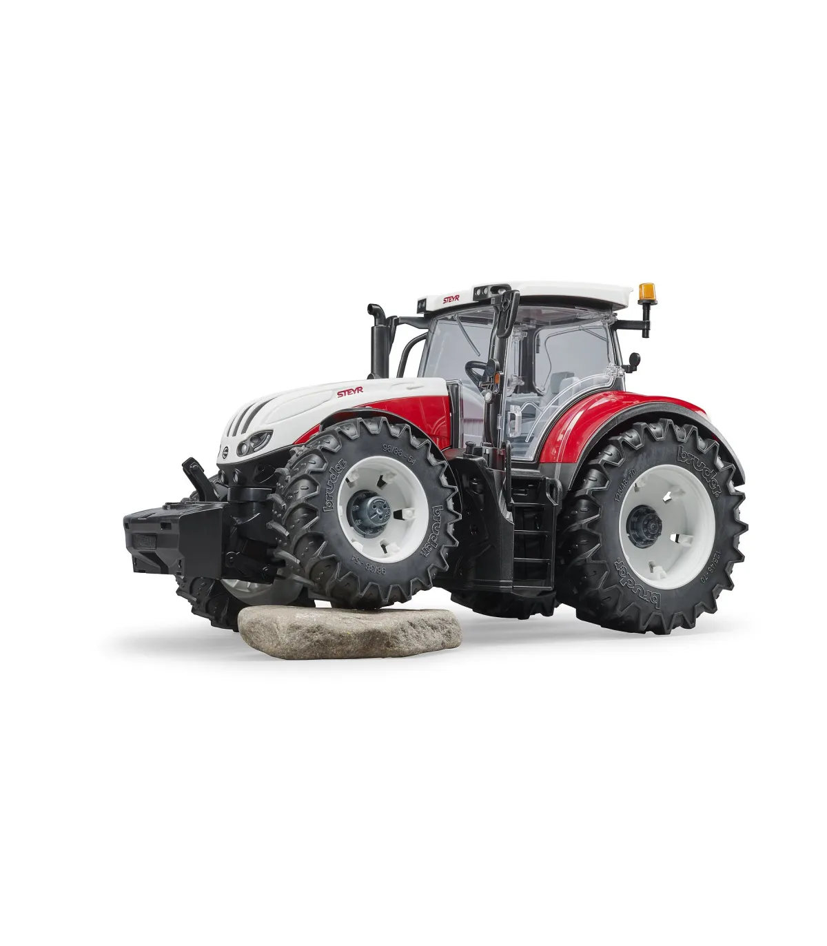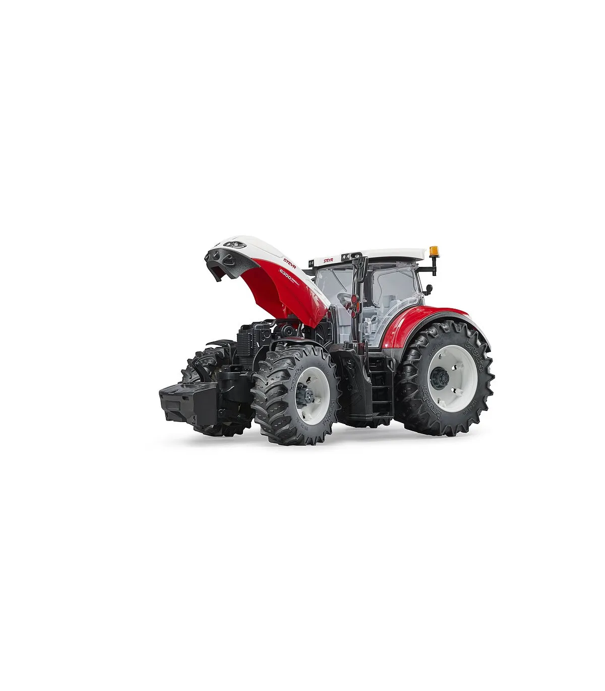 El Steyr Terrus CVT de 300 CV es el nuevo modelo superior del fabricante de tractores austriaco. Debido a su relación potencia-peso ideal, este tractor está predestinado tanto para tareas de transporte rápido como para uso intensivo en el campo. El nuevo modelo a escala 1:16 de Bruder no es de ninguna manera inferior a este. La cabina del conductor está completamente acristalada y las puertas son fáciles de abrir. El capó del motor con bisagras ofrece una vista del imponente motor. El eje oscilante integrado y la extensión de la dirección que se puede insertar a través del techo corredizo logran una excelente capacidad de control y comodidad de conducción. Para expandir este modelo, se puede instalar un cargador frontal (artículo No. 03333) y neumáticos gemelos (artículo No. 03311). Todos los remolques de la serie profesional se pueden utilizar gracias al acoplamiento trasero ajustable en altura. Las nuevas ruedas extraíbles están unidas para divertirse aún más. Por supuesto, todos los remolques e implementos agrícolas de BRUDER caben en este tractor. Opcionalmente se puede adjuntar un modelo de luz y sonido (artículo no. 02802) para ampliar el valor de juego