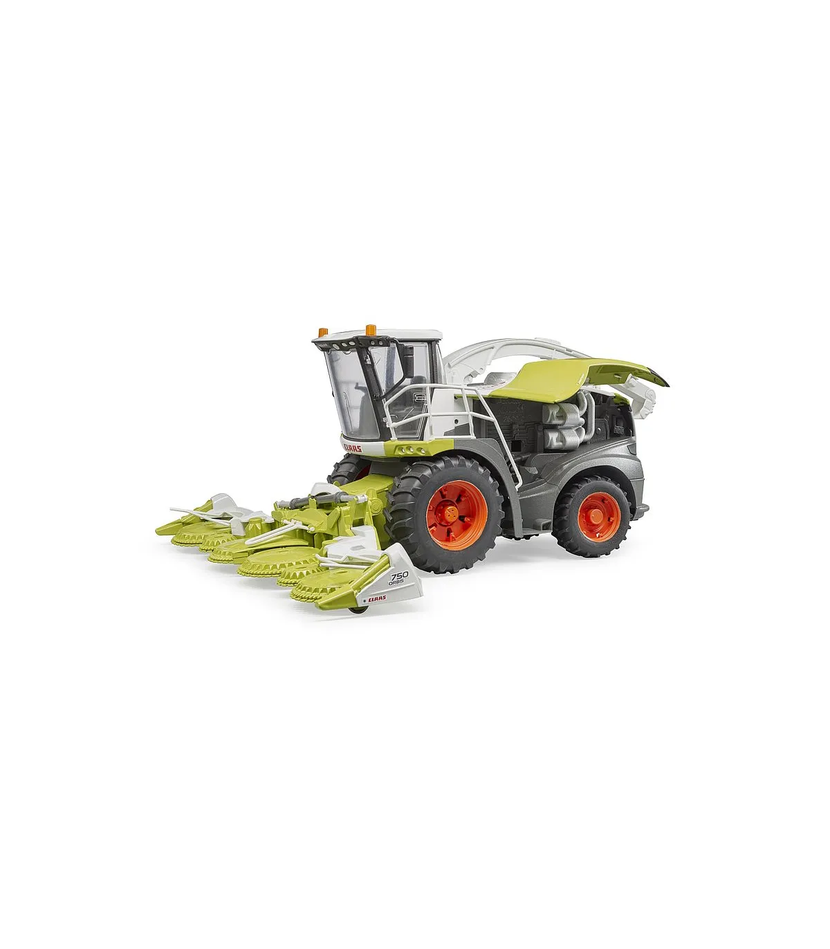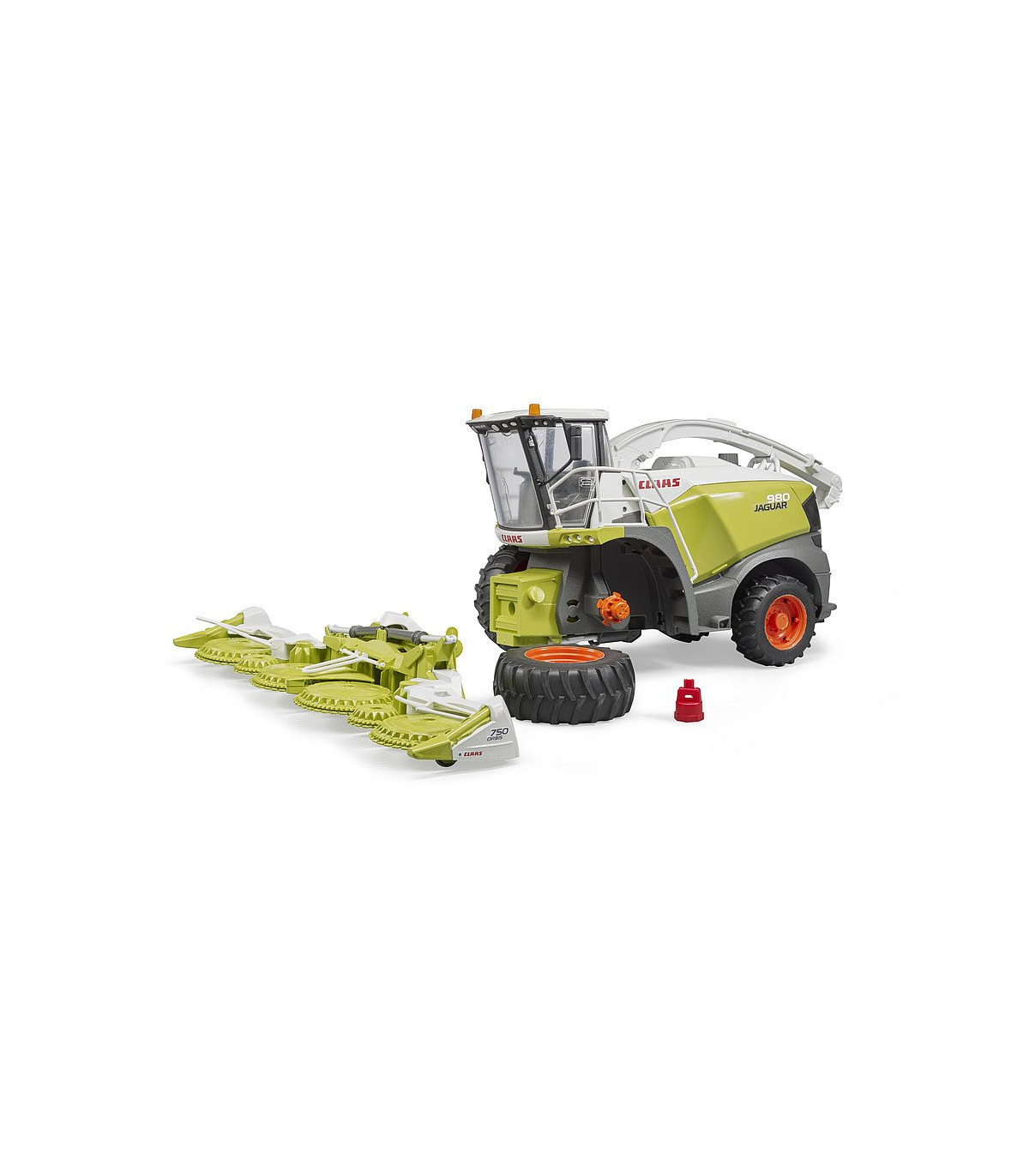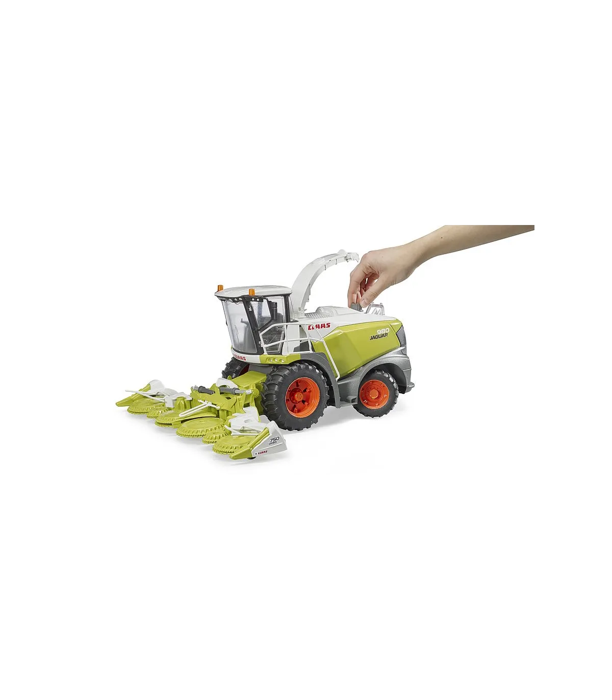 La Jaguar 980 es la cosechadora de forraje más grande de la gama del especialista en cosechadoras Claas. Con el impresionante rendimiento de un motor diésel V12 con 884 CV, así como los sistemas de transmisión y recolección recientemente desarrollados, esta máquina se utiliza donde sea que se necesite cosechar grandes campos de manera rápida y eficiente. Un modelo a escala 1:16 muy detallado es nuevo en la gama agrícola BRUDER. El imponente cabezal de maíz de la picadora de forraje está equipado con 6 discos de entrada motorizados y el pico de descarga se puede girar de forma divertida en cualquier dirección deseada. La puerta y el capó que se abren permiten vislumbrar la detallada cabina del conductor y el imponente motor y subrayan una vez más el credo del hermano, "como si fuera real". Otro punto a destacar son las ruedas intercambiables, que aumentan el valor de juego nuevamente. Este gran vehículo se puede ampliar con los accesorios Pickup de Claas (artículo nº 02325) y el juego de mecánica (artículo nº 62100).