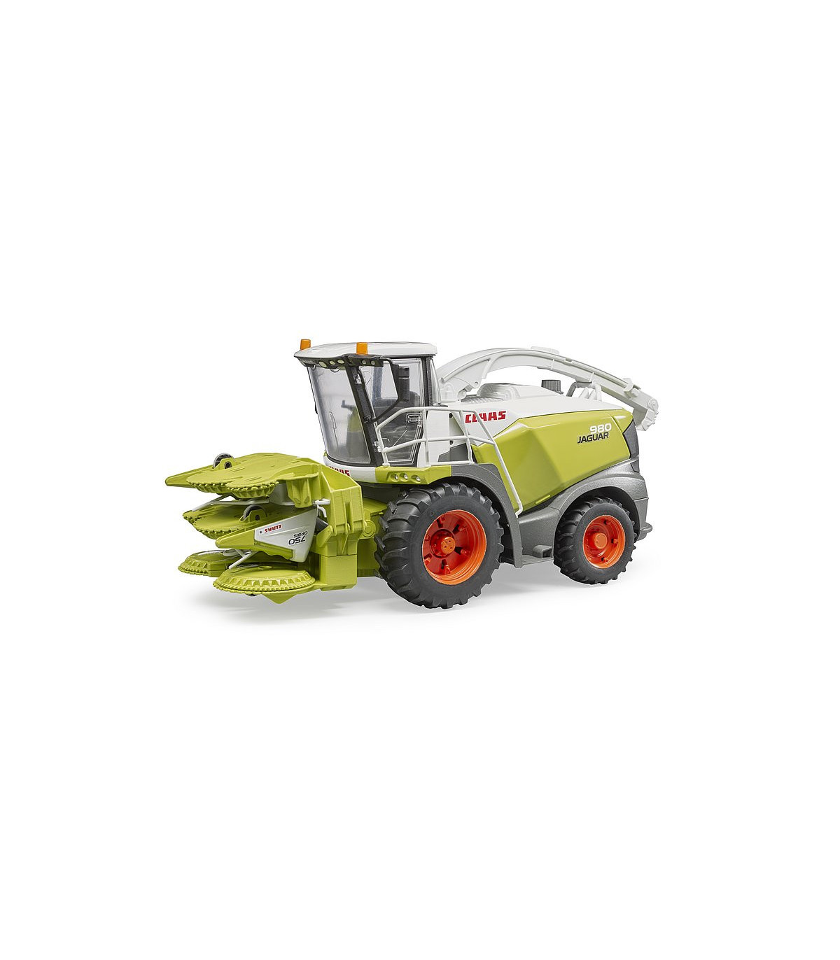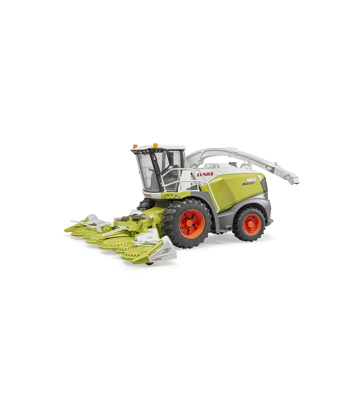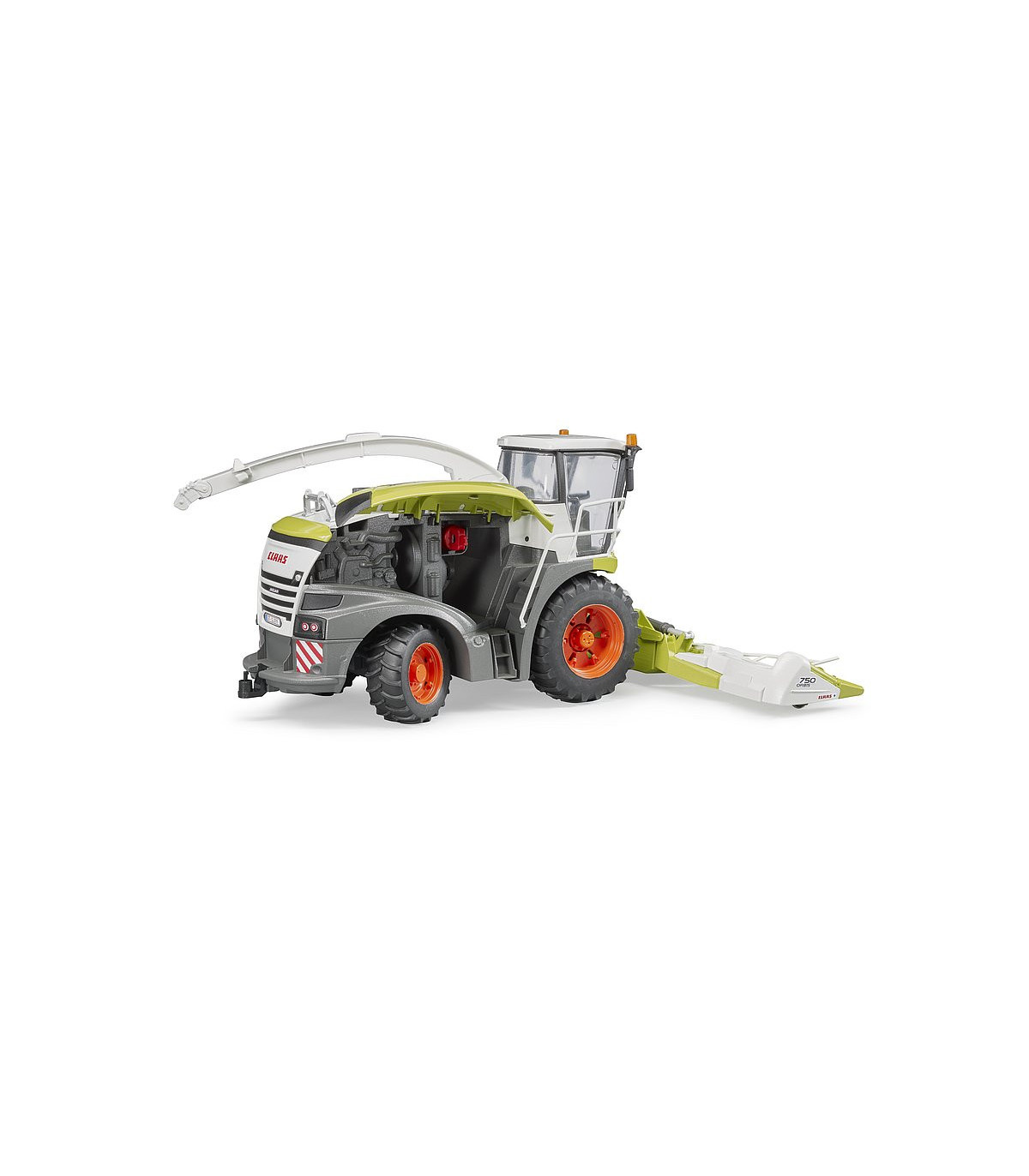 La Jaguar 980 es la cosechadora de forraje más grande de la gama del especialista en cosechadoras Claas. Con el impresionante rendimiento de un motor diésel V12 con 884 CV, así como los sistemas de transmisión y recolección recientemente desarrollados, esta máquina se utiliza donde sea que se necesite cosechar grandes campos de manera rápida y eficiente. Un modelo a escala 1:16 muy detallado es nuevo en la gama agrícola BRUDER. El imponente cabezal de maíz de la picadora de forraje está equipado con 6 discos de entrada motorizados y el pico de descarga se puede girar de forma divertida en cualquier dirección deseada. La puerta y el capó que se abren permiten vislumbrar la detallada cabina del conductor y el imponente motor y subrayan una vez más el credo del hermano, "como si fuera real". Otro punto a destacar son las ruedas intercambiables, que aumentan el valor de juego nuevamente. Este gran vehículo se puede ampliar con los accesorios Pickup de Claas (artículo nº 02325) y el juego de mecánica (artículo nº 62100).