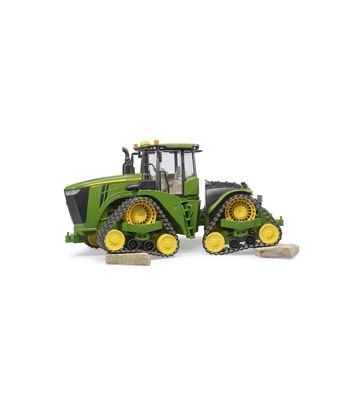Debido a que las demandas de las operaciones agrícolas modernas están aumentando, es más importante que nunca aumentar el rendimiento de sus máquinas. Con el 9620RX, John Deere presenta el tractor sobre orugas más grande y potente hasta la fecha. Con una potencia de motor de hasta 670 CV y sus cuatro orugas, que le confieren una potencia de tracción increíble con la mejor protección posible del suelo, es el socio perfecto cuando se trata de dominar los trabajos de arrastre más pesados con implementos como la combinación de cultivador, arado y siembra. Este imponente tractor ahora también está disponible en escala 1:16 con una atención única a los detalles, nuevo en la gama Bruder. Al igual que el original, el modelo tiene 4 unidades Caterpillar recientemente desarrolladas y la dirección articulada todoterreno. La cabina del conductor tiene una puerta que se puede abrir y el imponente capó también se puede abrir y muestra el enorme motor. Numerosos dispositivos de remolque de la gama agrícola de BRUDER se pueden acoplar al acoplamiento del remolque con un dispositivo de elevación ajustable en altura.