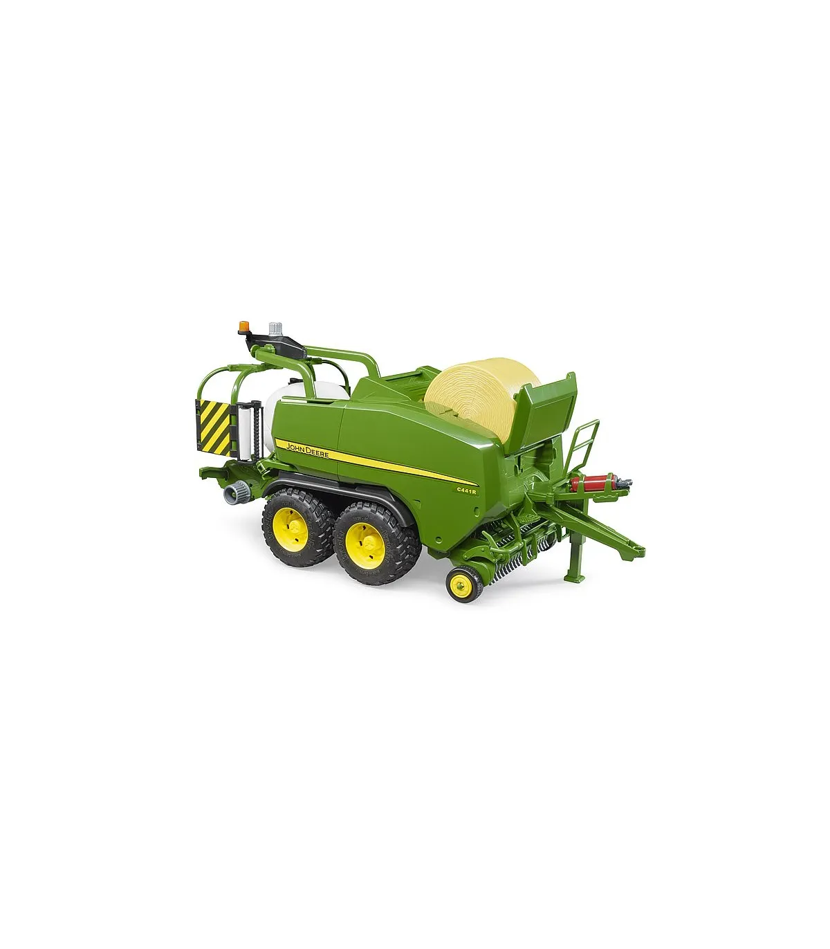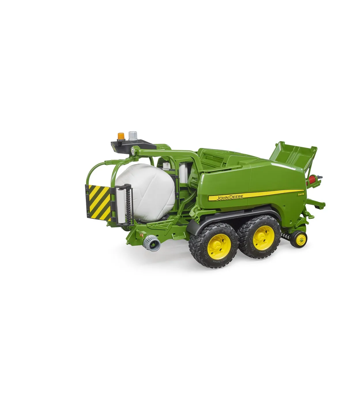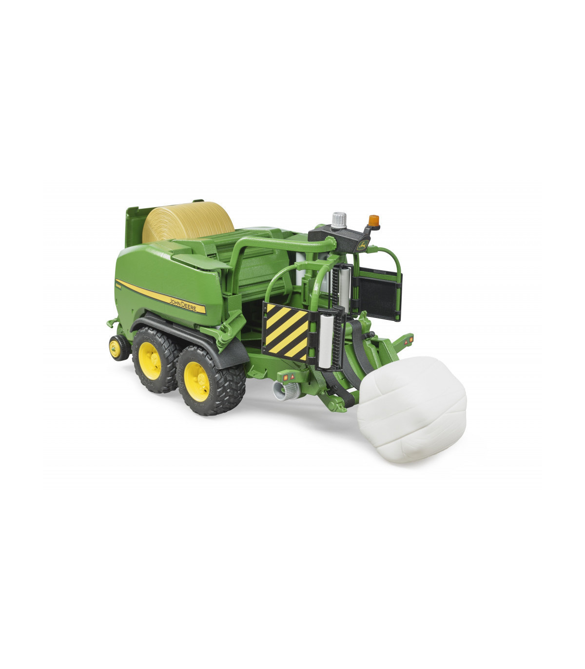 John Deere es conocido desde hace mucho tiempo no solo por sus tractores, sino también por sus innovadoras cosechadoras. La prensa combinada C441R es la ayudante ideal para cosechar paja y heno. Con la última tecnología de prensa y cinta transportadora, esta combinación de prensa y encintadora tiene una producción de hasta 60 pacas por hora. Este fantástico dispositivo de recolección ya está disponible en BRUDER en el mundo temático de Agricultura. Se prestó atención al más alto nivel de detalle y funcionalidad. La camioneta de trabajo es móvil y regulable en altura. Los pequeños agricultores pueden introducir la paca de paja suministrada a través de la solapa en la parte superior. Con el sistema transportador recientemente desarrollado, las balas de paja se pueden transportar desde la sala de empacado al dispositivo de envoltura y la envoltura de película giratoria completa el proceso de recolección.