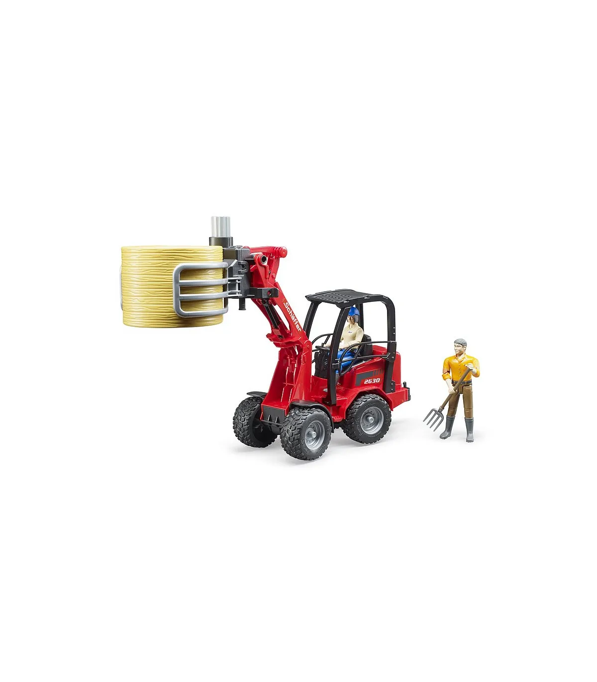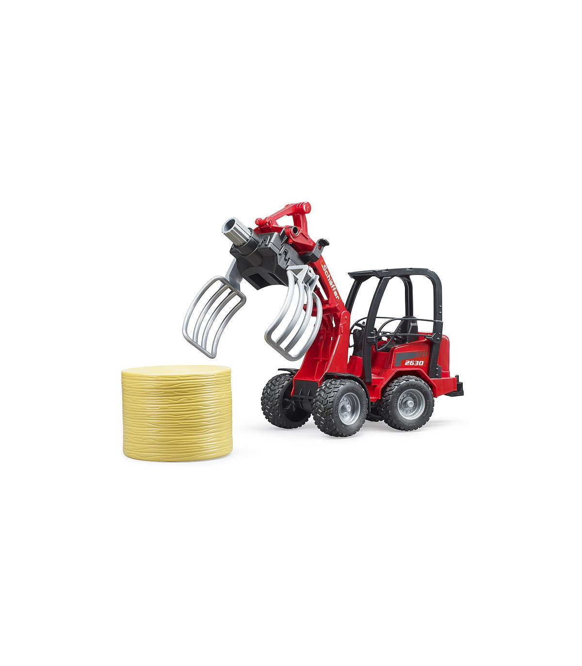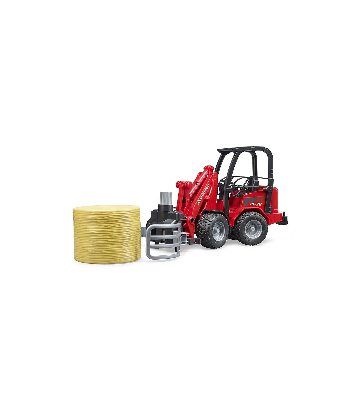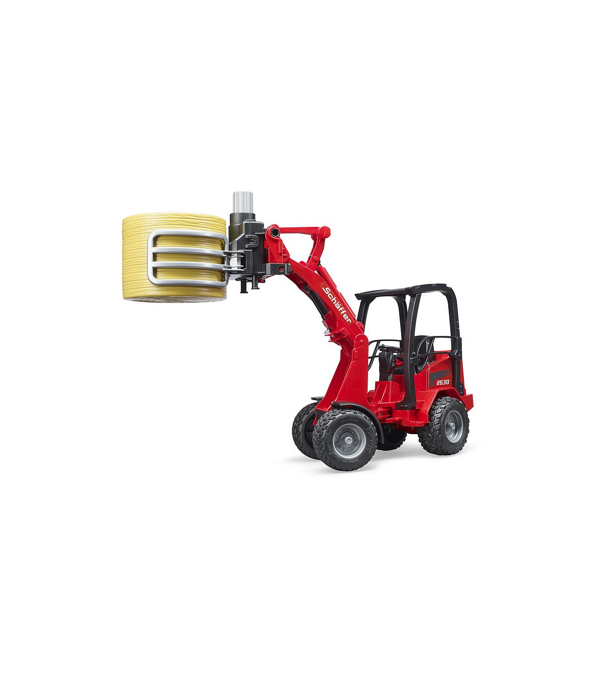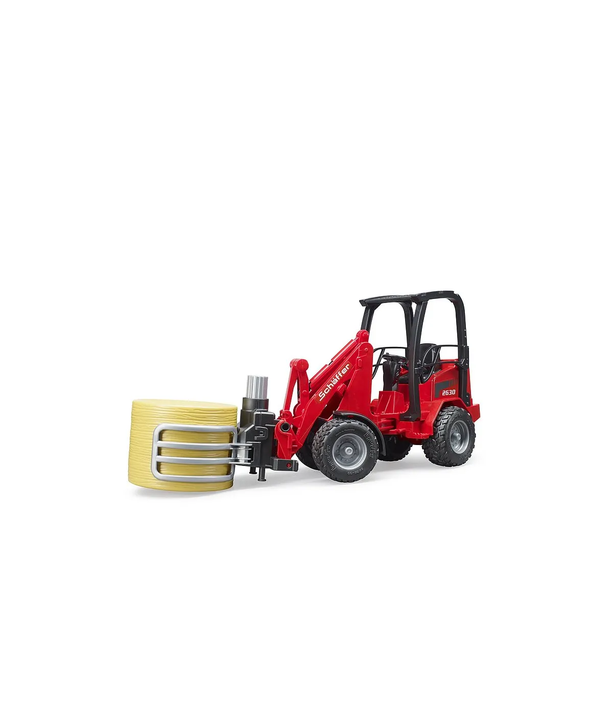 Schäffer lleva más de 50 años desarrollando cargadoras de ruedas para agricultura, jardinería y paisajismo. La clase compacta 2000 es una de las series más exitosas de Schäffer. Ofrecer el máximo rendimiento en los espacios más pequeños, esa es la premisa de esta cargadora. Este vehículo importante y convincentemente versátil para todas las explotaciones agrícolas exitosas está ahora disponible de BRUDER en una escala de 1:16 en combinación con una pinza para balas. Para una máxima maniobrabilidad, el vehículo, como el original, tiene una dirección articulada que funciona y el brazo de carga y la pala también funcionan como el modelo más grande. Para la seguridad de la figura de bworld, que cabe cómodamente en el asiento del conductor, hay una barra antivuelco masiva. La nueva pinza de bolas es una ayuda muy útil para el transporte y distribución de paja y heno. lo que ayuda a todos los pequeños agricultores a transportar la paca redonda suministrada al establo y descargarla. La pinza se abre y se cierra simplemente girando la rueda de ajuste superior.