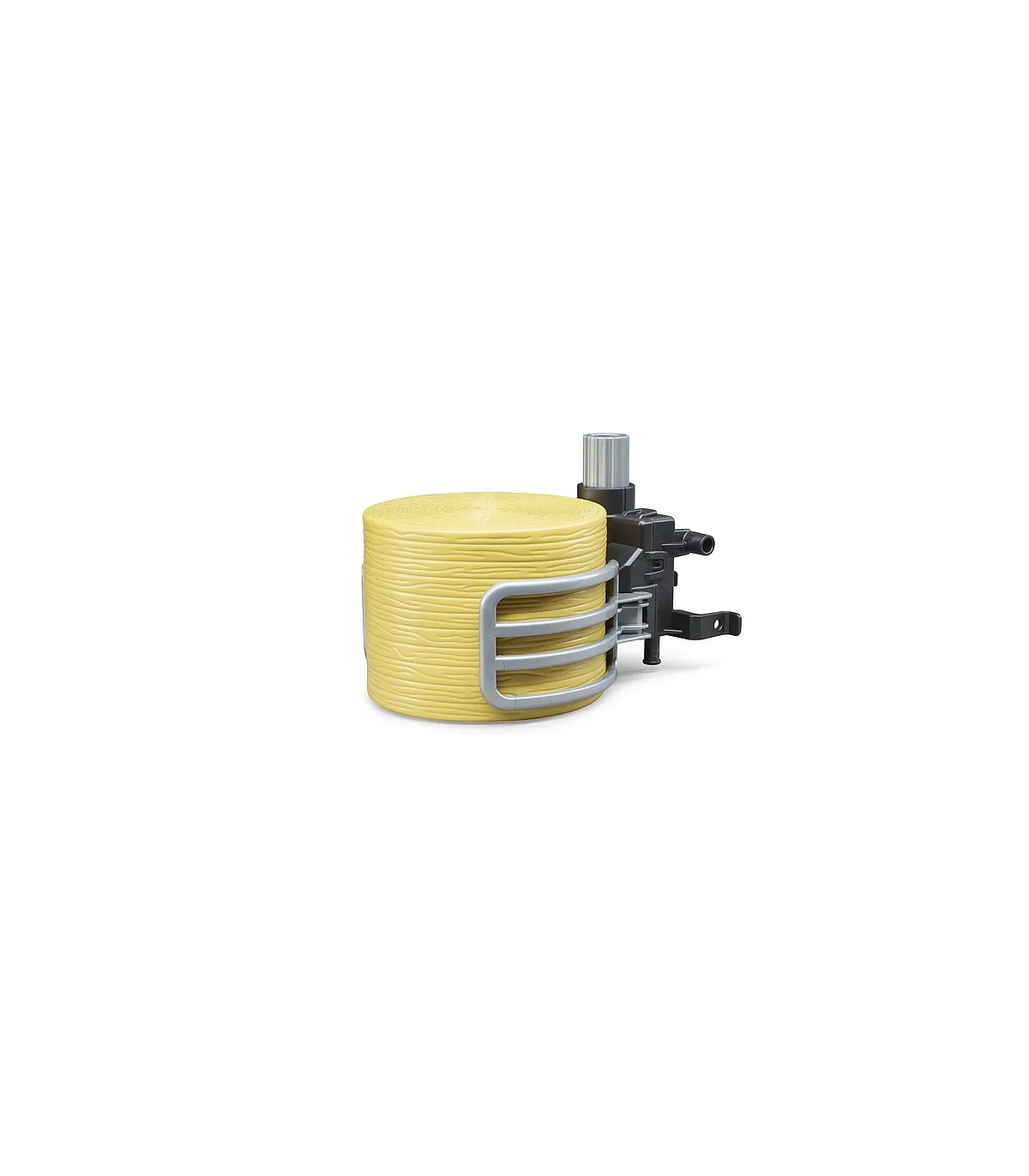 La pinza se abre y se cierra simplemente girando la rueda de ajuste superior. La pinza de pacas se adapta a todos los cargadores frontales BRUDER para tractores, todos los manipuladores telescópicos BRUDER, así como al cargador de patio Schäffer y al cargador articulado compacto Cat y al cargador de cadena compacto