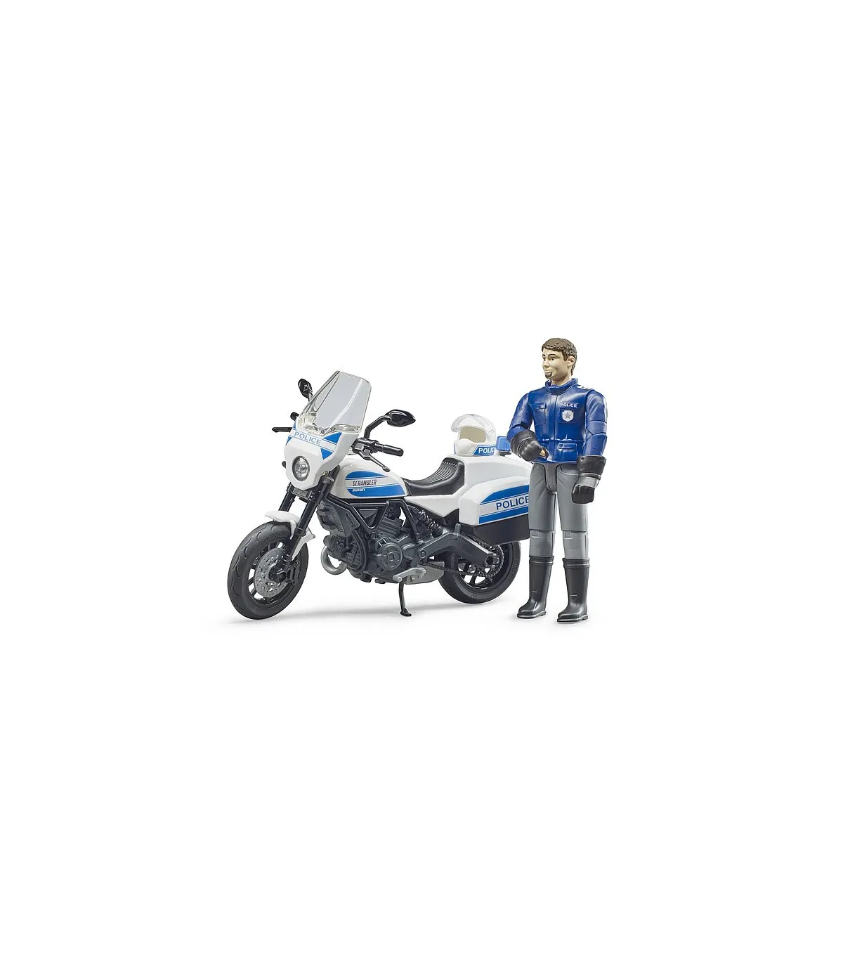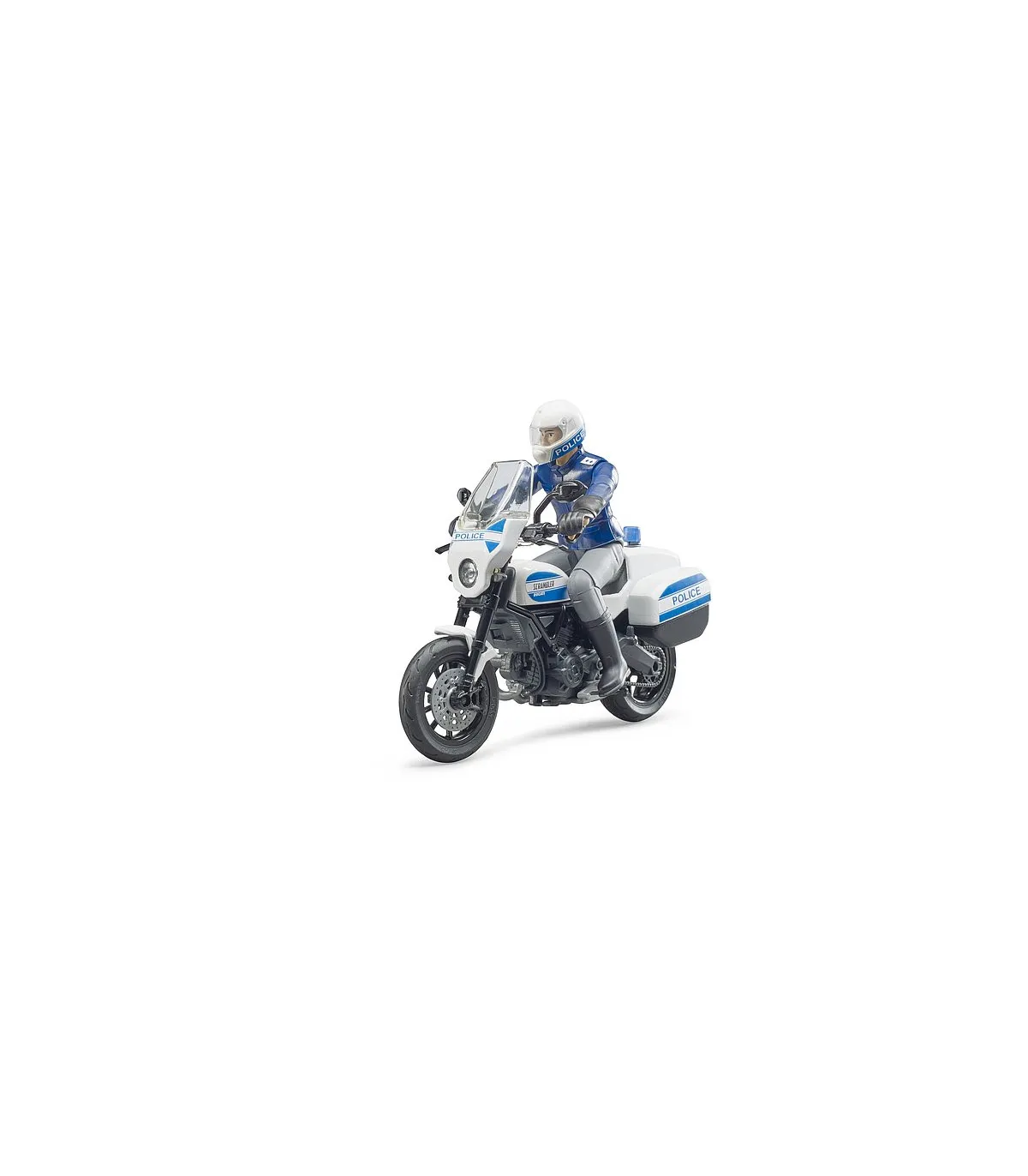 El grupo de trabajo de la policía de bworld recibe refuerzos. El policía en motocicleta y la motocicleta de la policía son nuevos en el equipo. Las ventajas de una motocicleta de policía son su velocidad, maniobrabilidad y tamaño reducido. Este vehículo es convincente en la vigilancia del tráfico, el registro de accidentes y en las medidas de seguridad y acompañamiento. La motocicleta basada en la Scrambler Ducati impresiona por su diseño policial ópticamente muy moderno y el oficial de policía también está equipado con equipos de protección modernos. De los numerosos artículos de BRUDER y bworld, la comisaría de policía de bworld (artículo nº 62730) y el vehículo todoterreno de policía Land Rover Defender (artículo nº 02597) son excelentes.