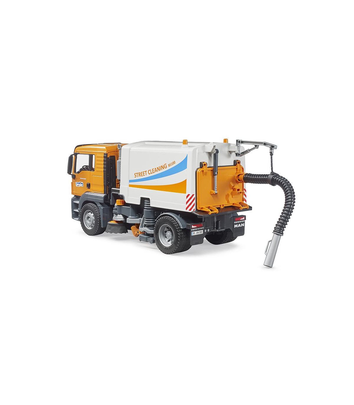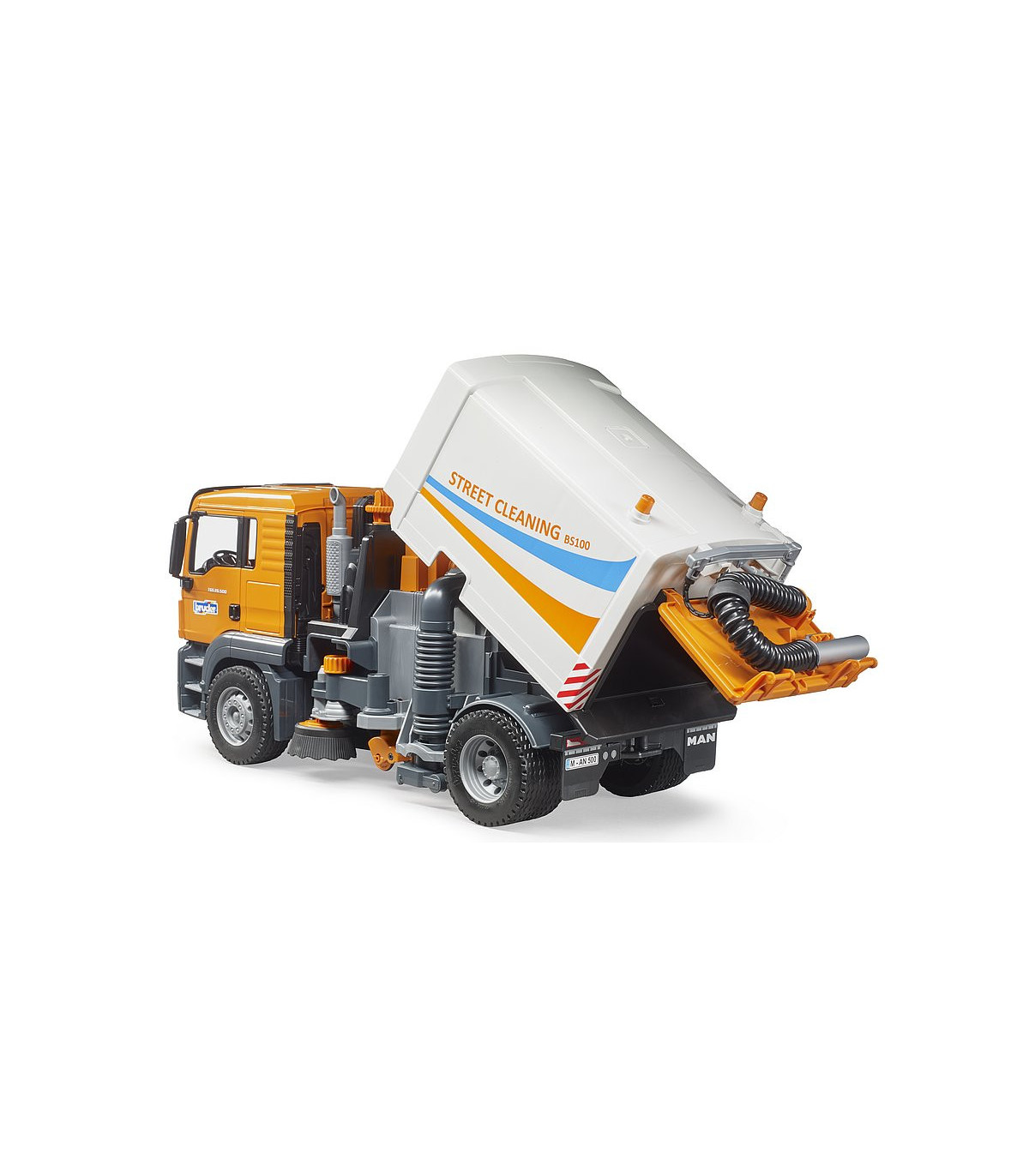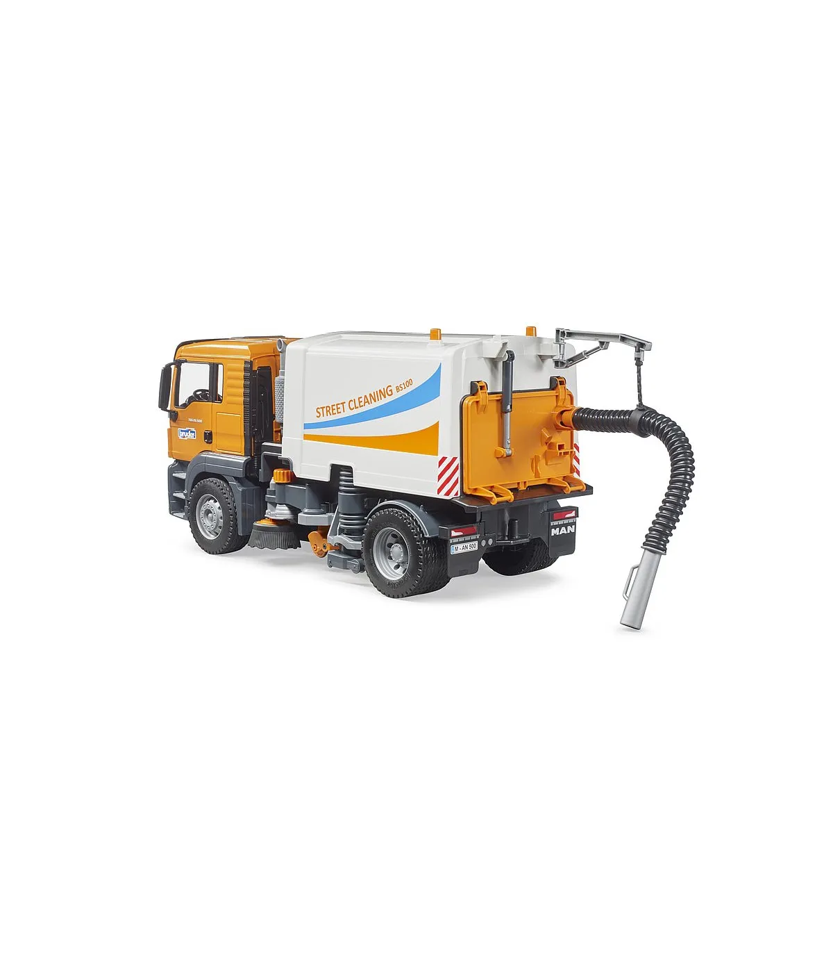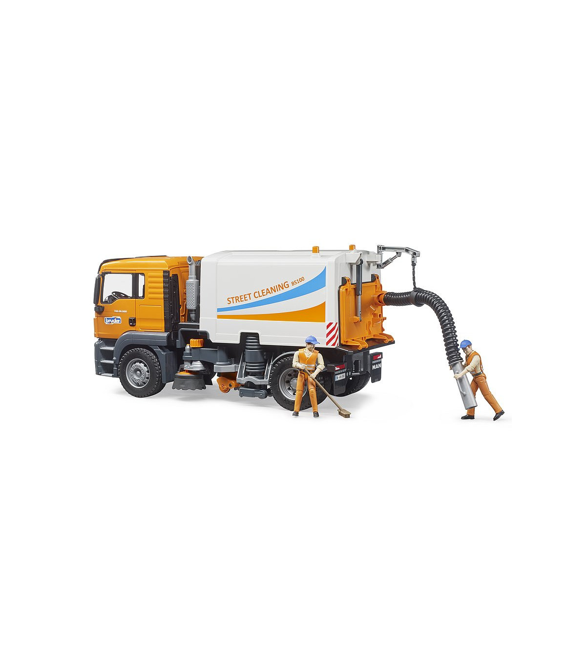 La limpieza de las calles es una ayuda indispensable para todas las administraciones de la ciudad y forma parte del paisaje urbano cotidiano. Ningún otro vehículo es tan eficiente para mantener limpias las carreteras y aceras. La nueva limpieza de calles de BRUDER muestra la funcionalidad de este emocionante camión con el mayor detalle posible. El MAN TGS es el socio perfecto. De construcción robusta, equipada con potentes motores de hasta 500 CV y con una carga útil superior a la media, este camión es el prototipo del todoterreno tan descrito.