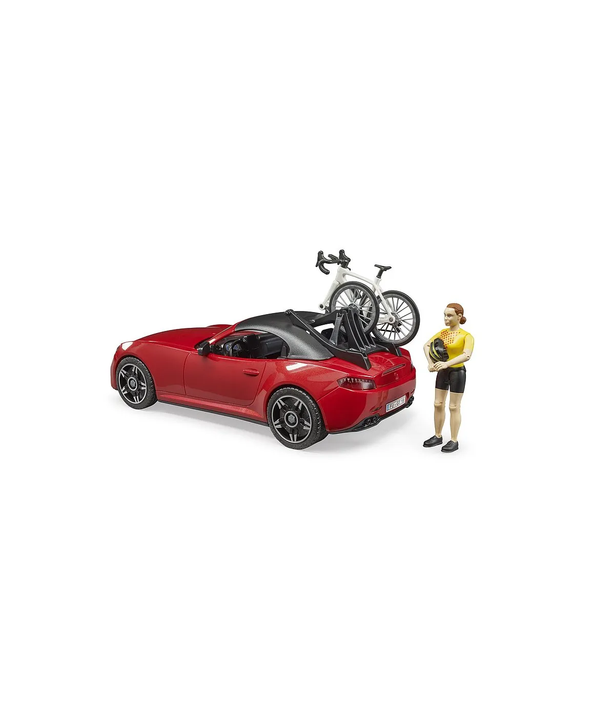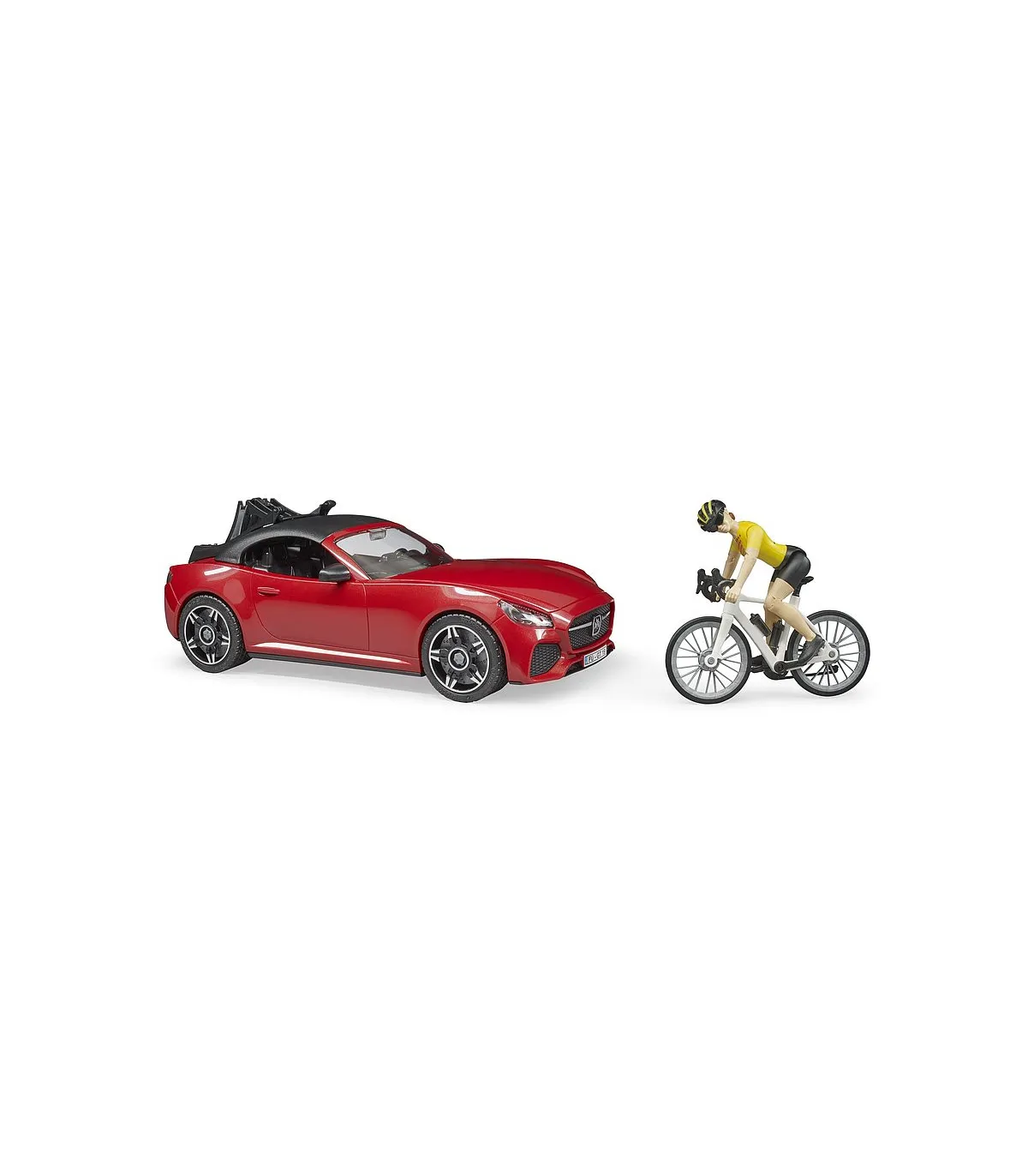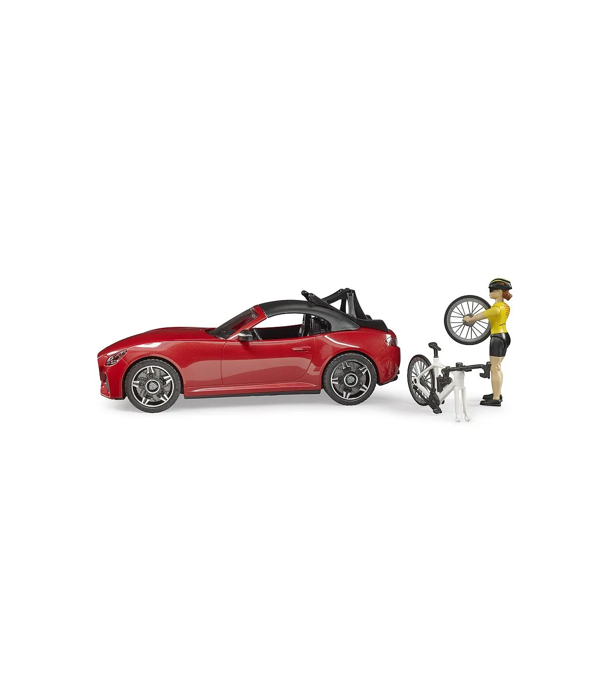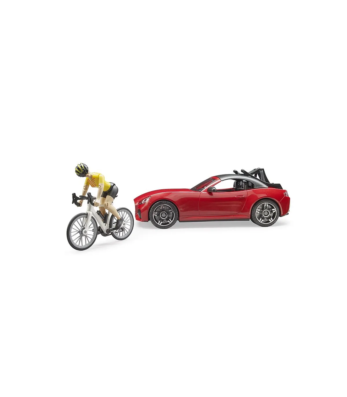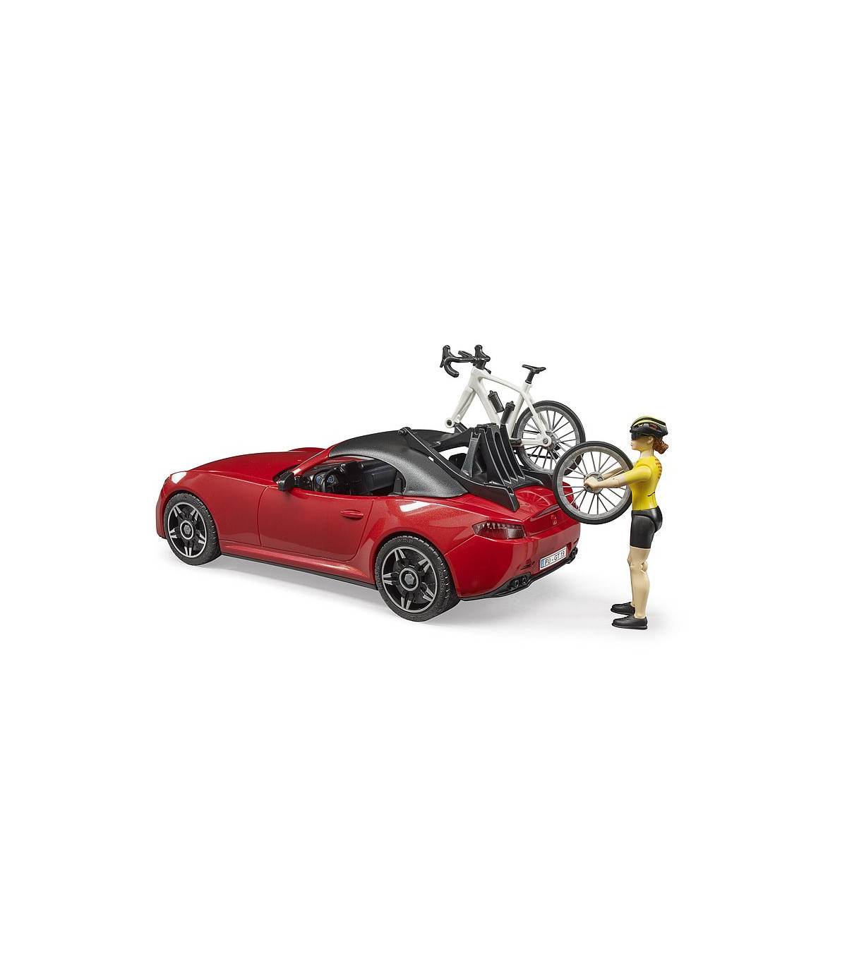 El ciclismo es muy popular. Para muchas personas, este deporte significa relajarse de la estresante vida cotidiana al aire libre en la naturaleza. El boom de la bicicleta también se nota en BRUDER La figura de bworld recientemente desarrollada con un traje de bicicleta moderno superior es deportiva en la también nueva bicicleta de carreras BRUDER. El transporte es igual de deportivo. El BRUDER Roadster es sinónimo de agilidad y deportividad. El portabicicletas de nuevo desarrollo se puede utilizar en la ventana trasera y transporta de forma fiable 2 bicicletas. El ciclista bworld con bicicleta de carreras es una excelente adición a este gran conjunto. (Número de artículo 63110)