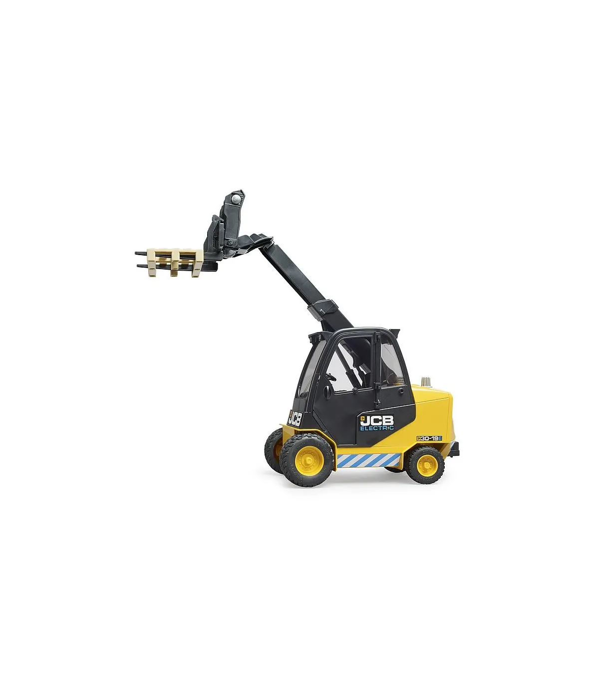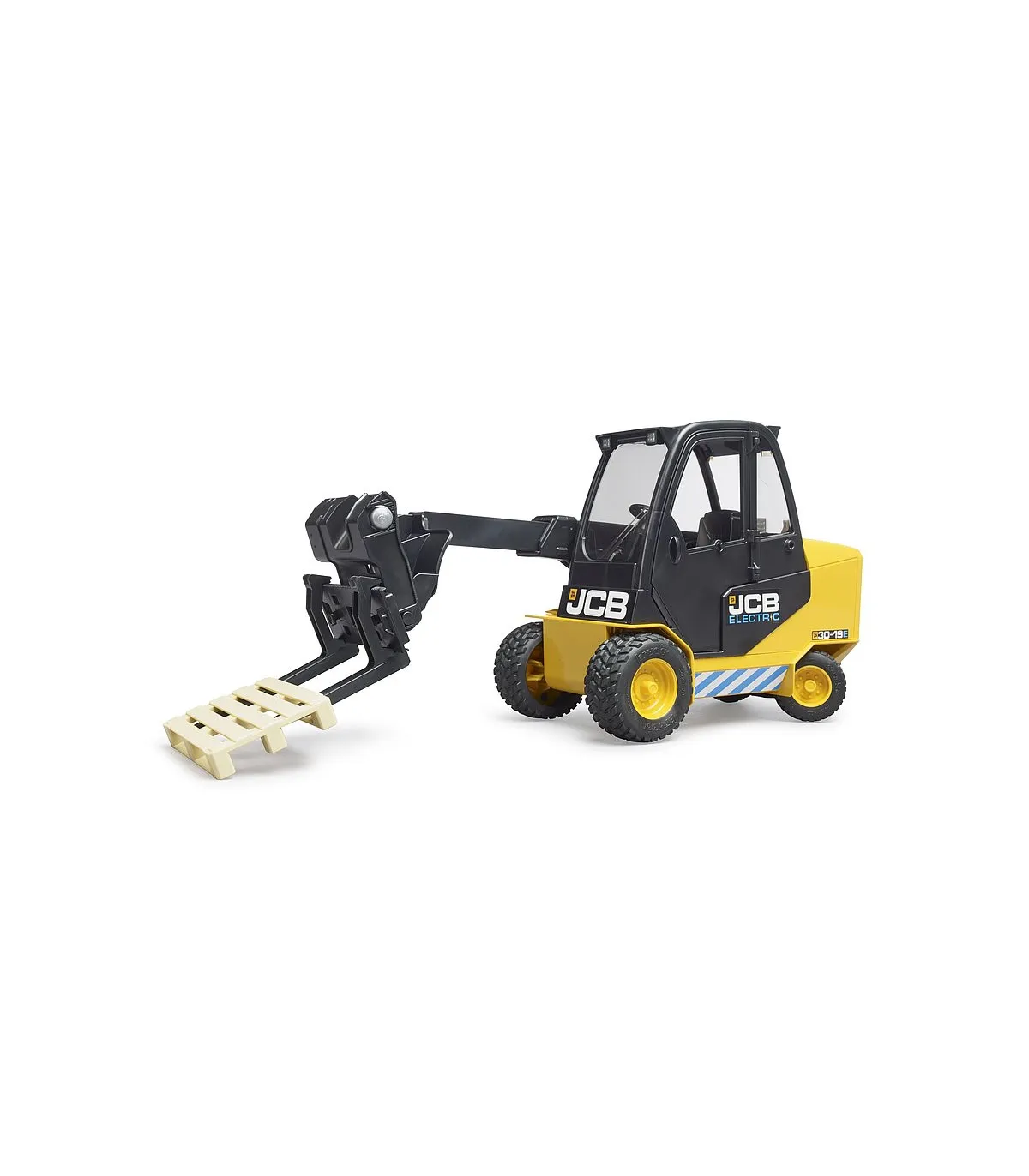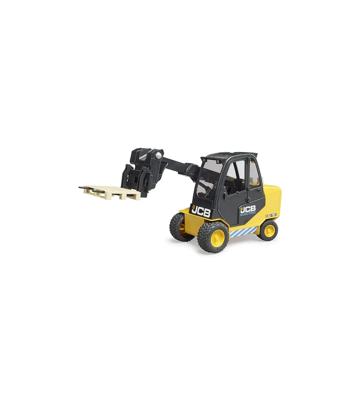 BRUDER es sinónimo de juego manual y descubrimiento, como en esta nueva carretilla elevadora. La carretilla elevadora JCB 30-19E Teletruk forma parte de una nueva generación de productos innovadores denominada JCB E-TECH, con accionamiento eléctrico y cero emisiones en el lugar de uso y con la potencia de siempre. Aporta la máxima eficiencia con un novedoso brazo telescópico a la vez que realiza su trabajo con cero emisiones al medio ambiente. Esta revolucionaria carretilla elevadora telescópica se encuentra disponible como nuevo modelo en el mundo temático de BRUDER dedicado a los vehículos industriales. La carretilla elevadora dirigible mediante el eje trasero ofrece espacio para una figura bworld en la moderna cabina del conductor. El brazo telescópico de altura regulable puede replegarse y desplegarse, así como bloquearse, y la inclinación de la horquilla puede ajustarse. Gracias al alojamiento estándar de BRUDER, pueden colocarse las herramientas más diversas, y el juego de accesorios con palé de rejilla, torno de cable y horquillas (n.º de art. 02318) es la ampliación perfecta para hacerla aún más divertida.
