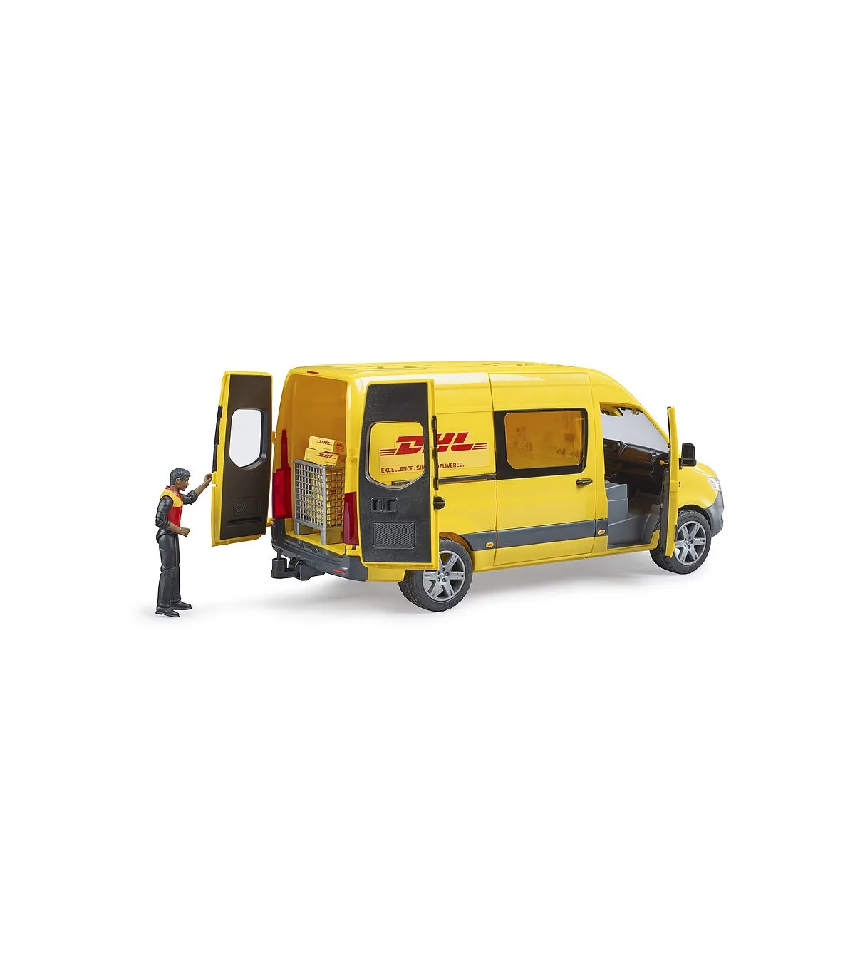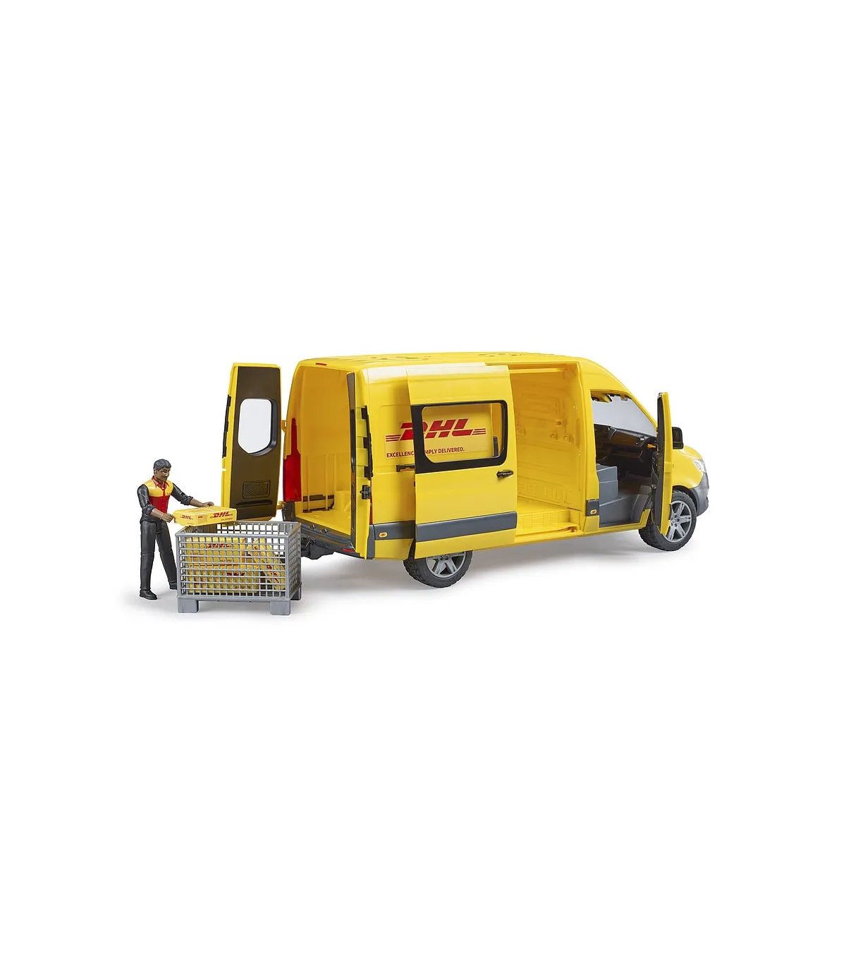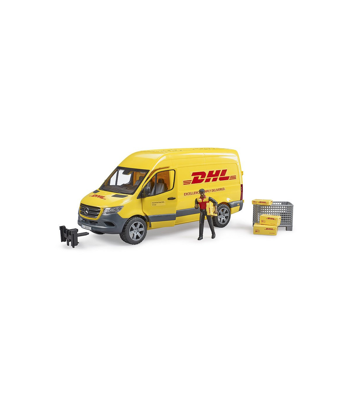 Anche nella versione più recente, lo Sprinter Mercedes Benz è uno dei modelli di maggior successo nella categoria degli autocarri leggeri. La sua versatilità lo rende indispensabile per i comuni, i servizi di soccorso e il settore logistico. Anche DHL si affida allo Sprinter come furgone per le consegne. Nel frattempo, questi veicoli sono diventati un tratto caratteristico sulle strade. L'ultima versione dello Sprinter è ora disponibile anche nell’assortimento BRUDER come veicolo da trasporto DHL. Il veicolo è dotato di portiere apribili sulla cabina di guida e sulla parte posteriore. Una particolarità suggestiva è rappresentata dalla nuova porta scorrevole sul lato passeggero. Il modello BRUDER è dotato di conducente DHL, gabbia per imballo e tipiche scatole di spedizione DHL: un set di piccoli pacchi con un elevato valore ludico. Con l'ampia offerta logistica di BRUDER, questo fantastico modello può essere ulteriormente ampliato. Il set logistico (n. art. 02415) e il carrello elevatore Linde H30D (n. art. 02511) garantiscono giochi ancora più divertenti.