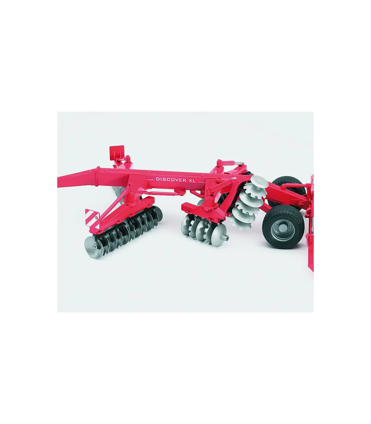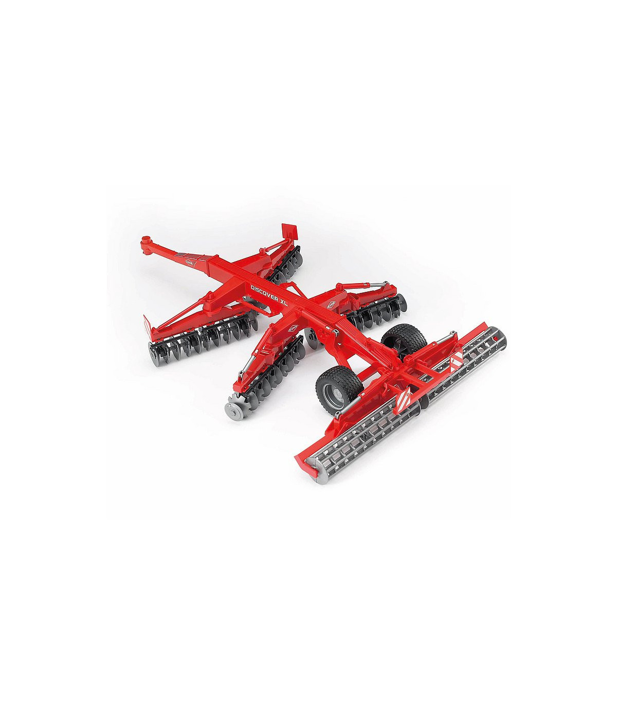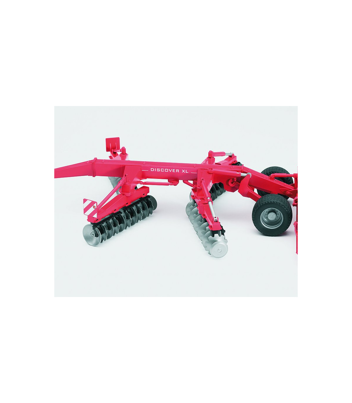 La grada de discos Discover XL de la empresa Kuhn es adecuada para el cultivo de grandes superficies para tractores de 160 CV. Similar al original, el modelo de juguete detallado tiene cuatro marcos de grada de discos con 54 discos giratorios y dos rodillos de barra de caña. En el modelo, los bastidores de la grada de discos se pueden plegar y configurar fielmente al original para viajar por carretera. La grada de discos se puede levantar para viajar por carretera. Los neumáticos de perfil completan el cuadro. Se adapta a todos los tractores de la serie Profi, así como a los MB Unimog (no incluidos).