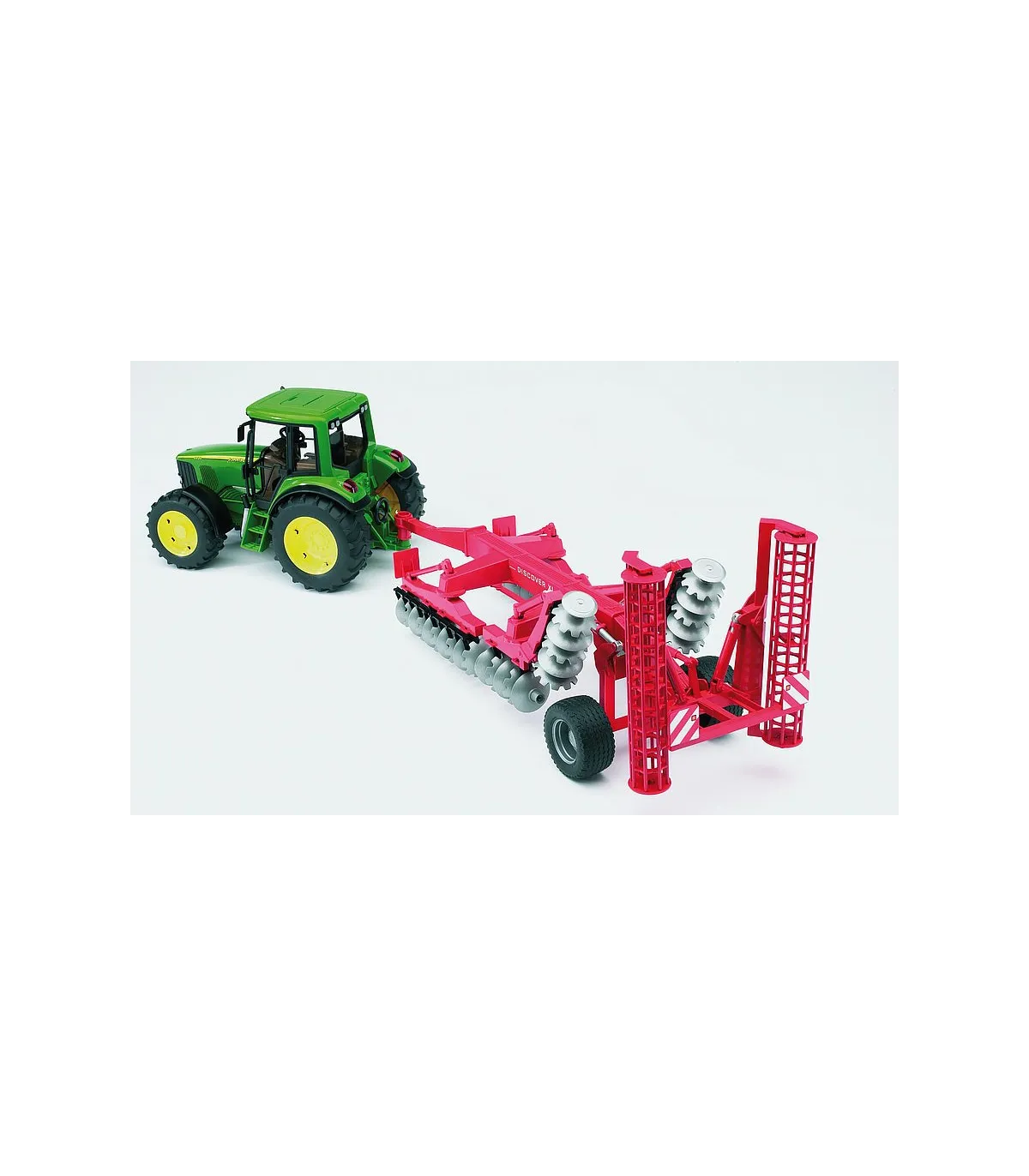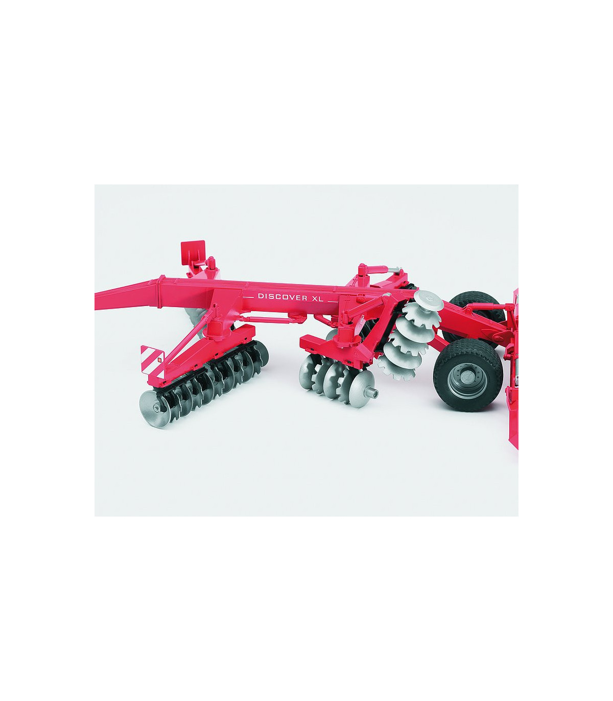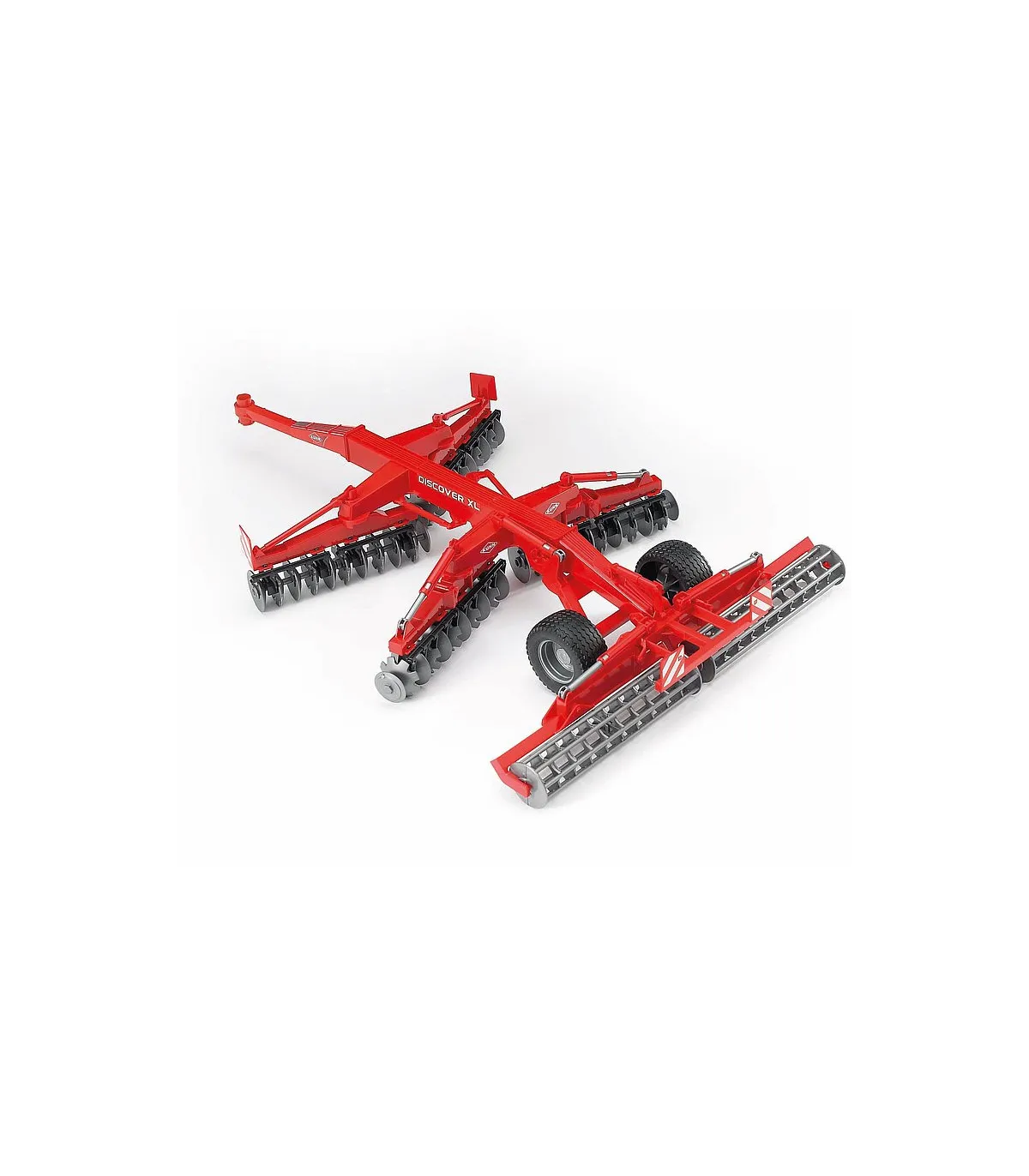 La grada de discos Discover XL de la empresa Kuhn es adecuada para el cultivo de grandes superficies para tractores de 160 CV. Similar al original, el modelo de juguete detallado tiene cuatro marcos de grada de discos con 54 discos giratorios y dos rodillos de barra de caña. En el modelo, los bastidores de la grada de discos se pueden plegar y configurar fielmente al original para viajar por carretera. La grada de discos se puede levantar para viajar por carretera. Los neumáticos de perfil completan el cuadro. Se adapta a todos los tractores de la serie Profi, así como a los MB Unimog (no incluidos).