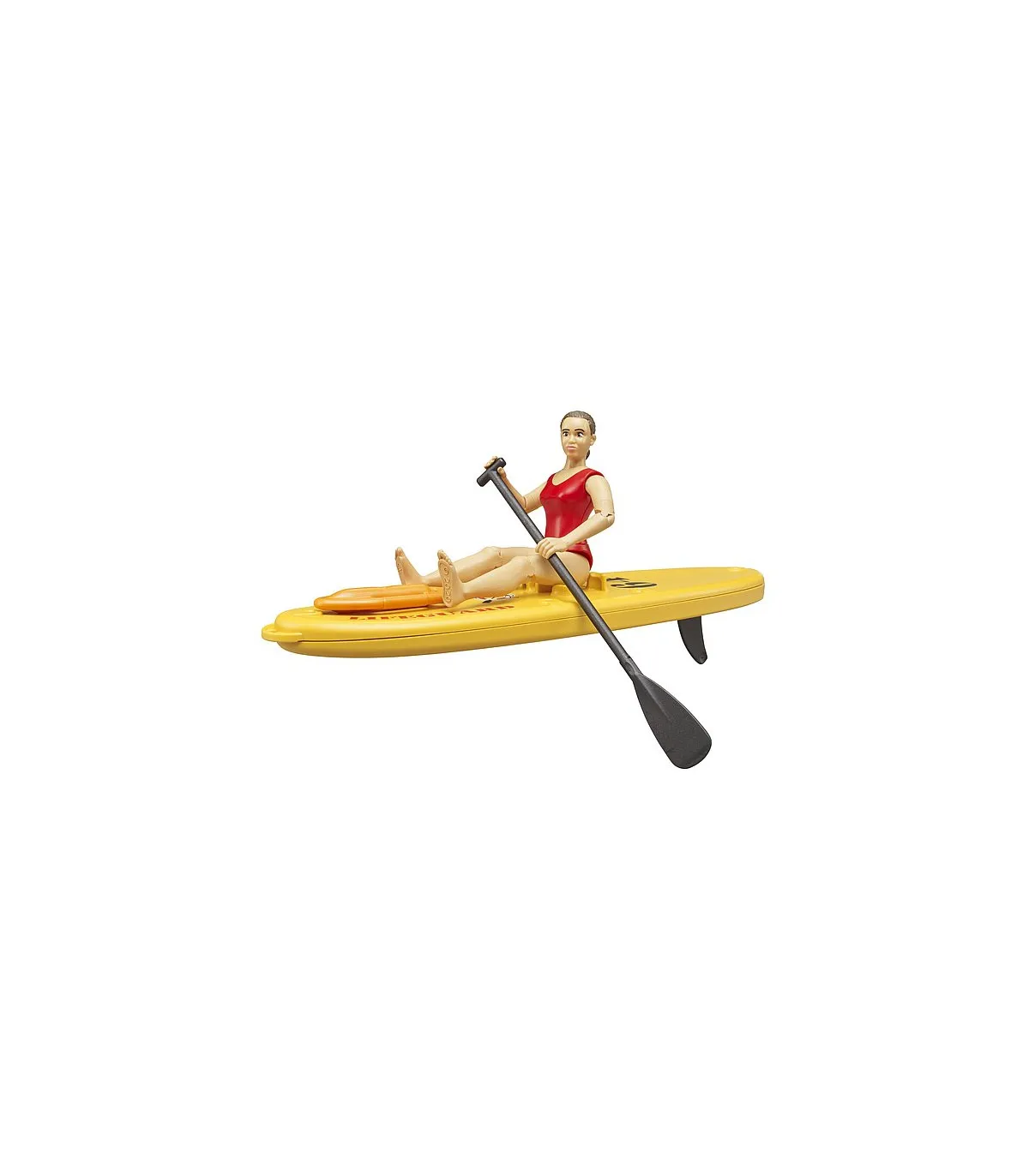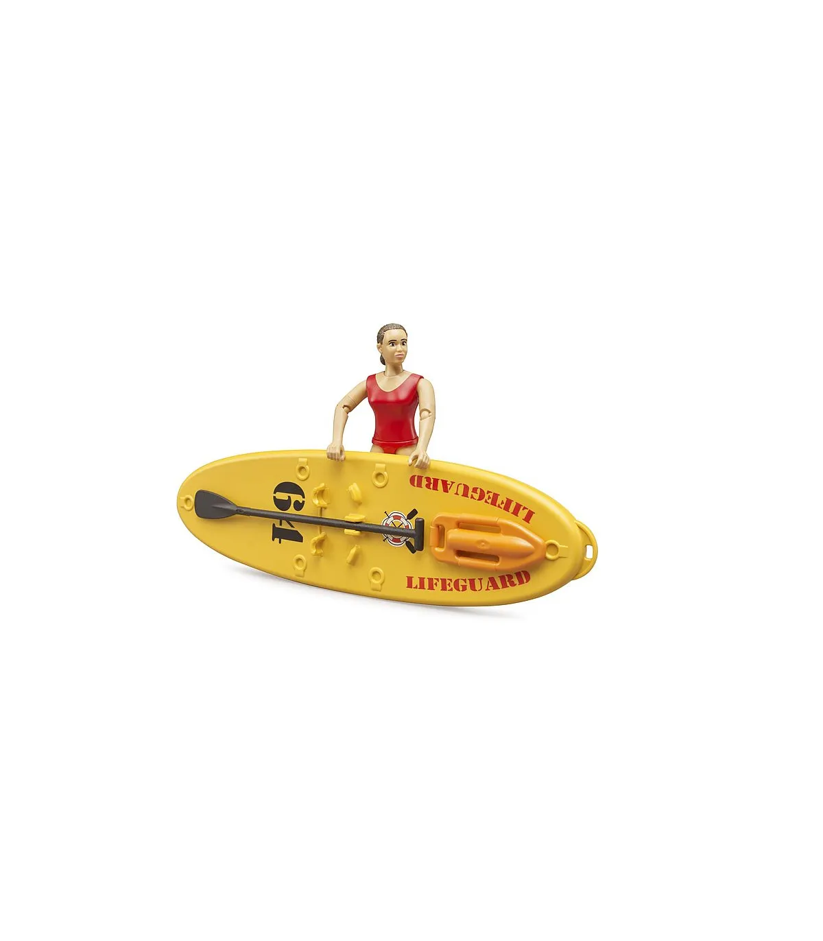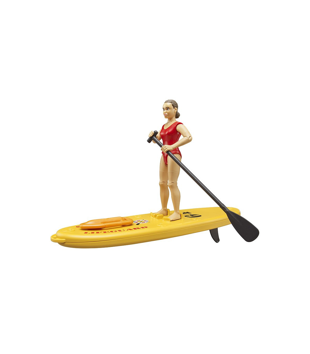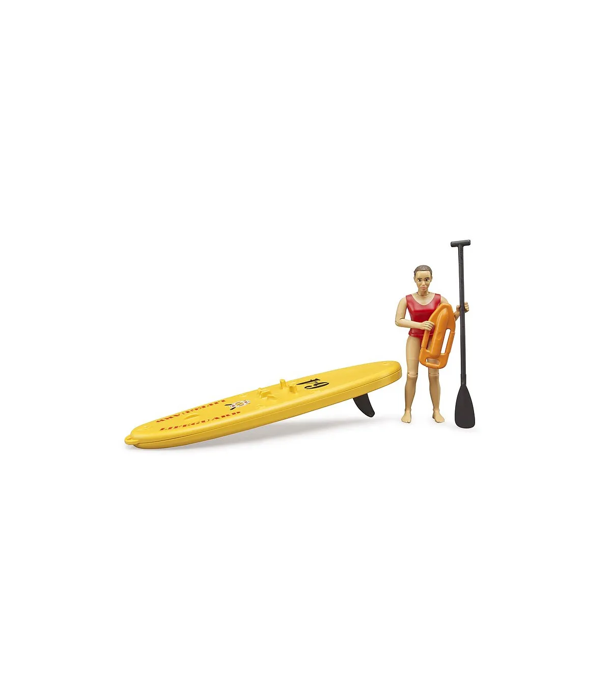 Para el creciente número de deportistas acuáticos bworld, disponemos de la nueva socorrista bworld del equipo de salvamento con tabla de paddle surf. Equipada con su manejable SUP y su boya de rescate, la socorrista puede moverse rápidamente por el agua en cualquier situación de peligro. La fuerte flotabilidad de la tabla garantiza un transporte seguro. El kayak bworld con figura (n.º de art. 63155) y el nuevo puesto de socorro bworld (n.º de art. 62780) se combinan especialmente bien con el juego del mundo acuático de BRUDER