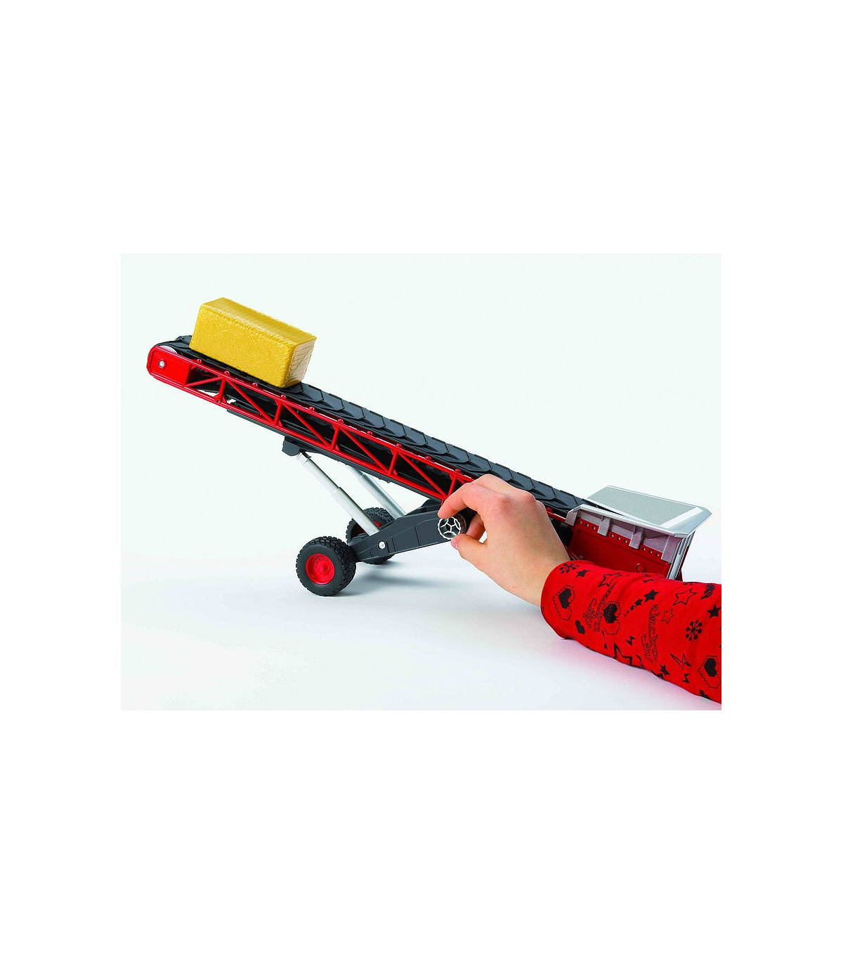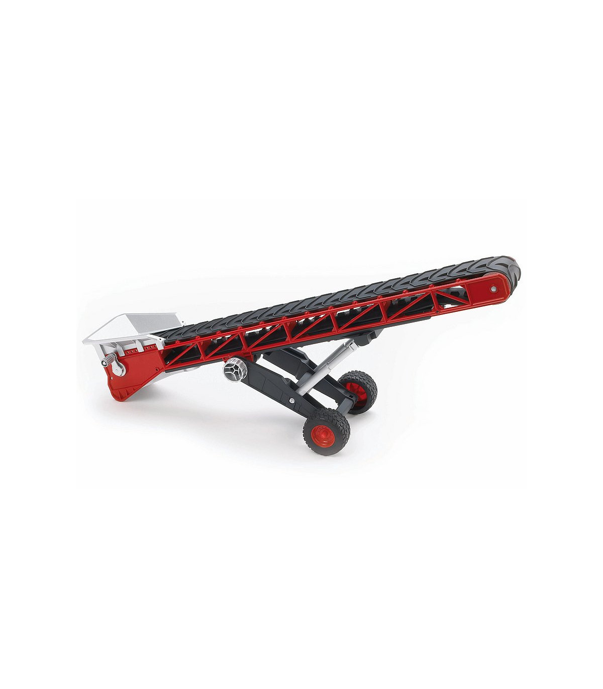 Las cintas transportadoras facilitaron el transporte de mercancías a granel como arena, grava, etc. En el sector agrícola, también se utilizan a menudo para fardos de paja, fundas de madera, es decir, sólidos. Para facilitar el trabajo arduo a nuestros pequeños constructores y agricultores, BRUDER está introduciendo una cinta transportadora moderna en el mercado. El dispositivo de trabajo impresiona por su apariencia exitosa y los mecanismos de elevación y transporte que son muy fáciles de operar mediante perillas giratorias y manivela. Esto significa que las balas de heno pueden transportarse en el vagón y llevarse al granero, la arena o las piedras se pueden transportar en camiones pero también se pueden descargar. La cinta transportadora se puede acoplar a todos los vehículos de remolque BRUDER, como tractores, Unimog, camiones, incluido el Sprinter, pero también a los vehículos de construcción que tienen un acoplamiento de remolque.
