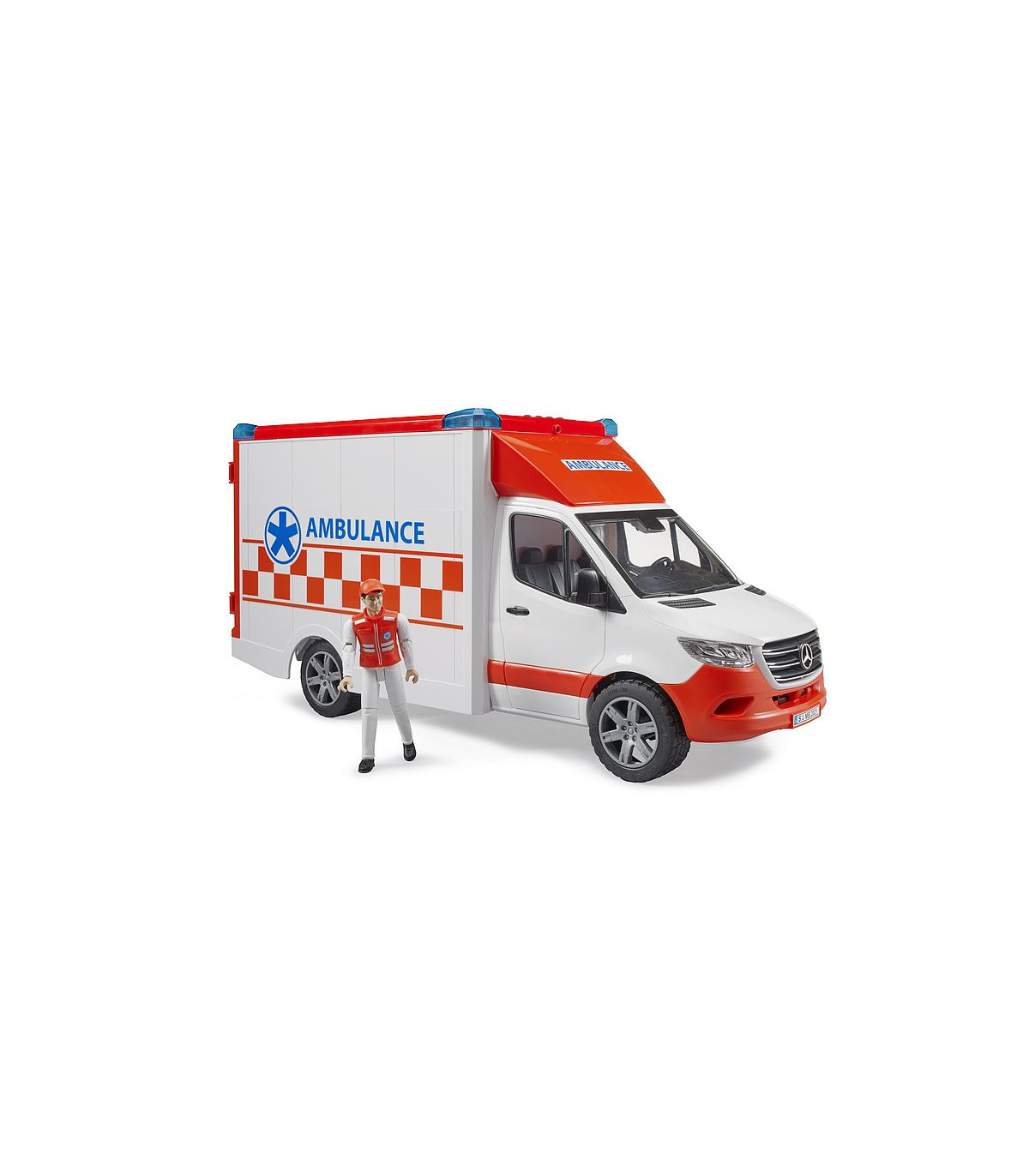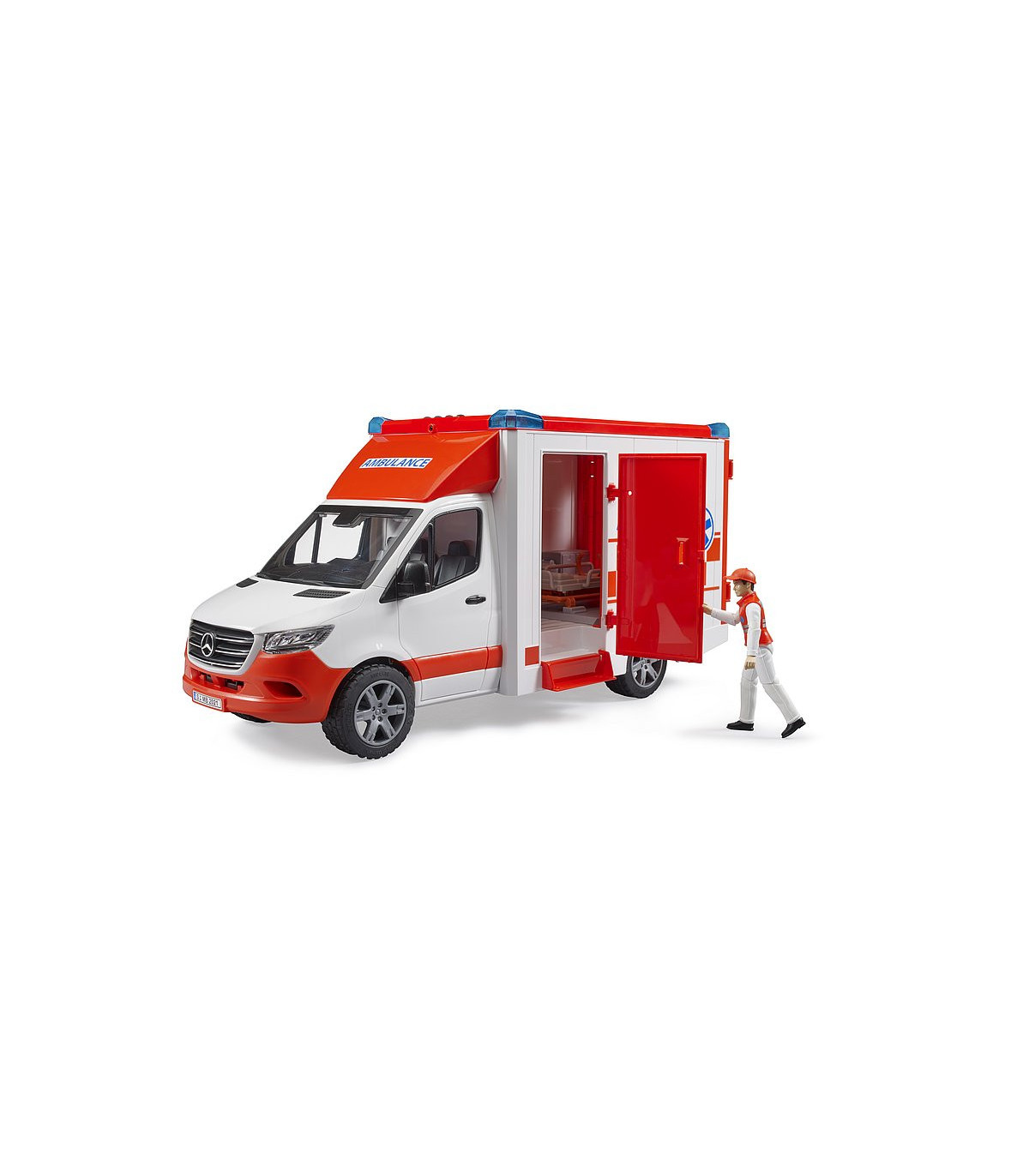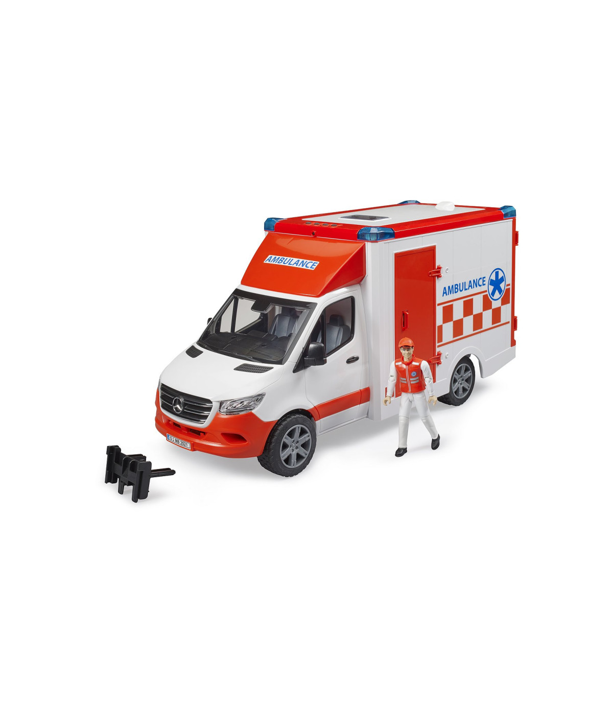 El tema de los vehículos de emergencia juega un papel importante en la empresa Bruder. La nueva ambulancia MB Sprinter se suma ahora para completar esta gama. Si se recrea una misión, no debe faltar este vehículo, que está equipado con multitud de funciones. El paramédico incluido en el volumen de suministro sube a la cabina del conductor a través de las puertas que se pueden abrir. Con el nuevo módulo de luz y sonido integrado con varias señales de sirena y funciones de luz, la ambulancia puede llegar al lugar de forma rápida y segura. El pequeño paramédico tiene acceso a la zona de tratamiento ultramoderna a través de las puertas traseras y laterales que se abren, así como del módulo de techo desmontable. En la camilla regulable en altura, que se puede sacar y volver a meter, hay espacio para cada figura de bworld para un tratamiento y se puede transportar de forma segura, según el lema de brother, como si fuera real. El valor lúdico de este gran vehículo se puede ampliar con el juego de accesorios 62710, compuesto por paramédico y paciente, así como con la enfermería bworld (n.º de artículo 62711).