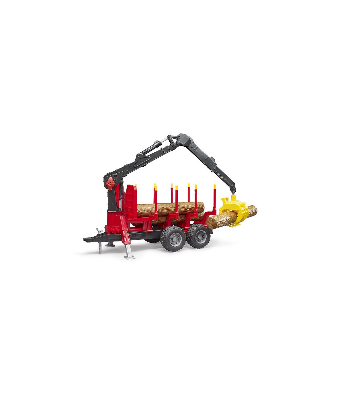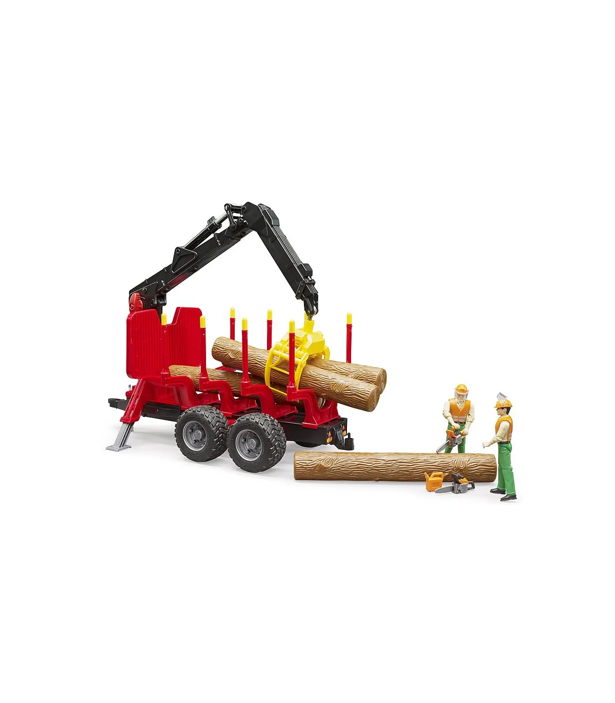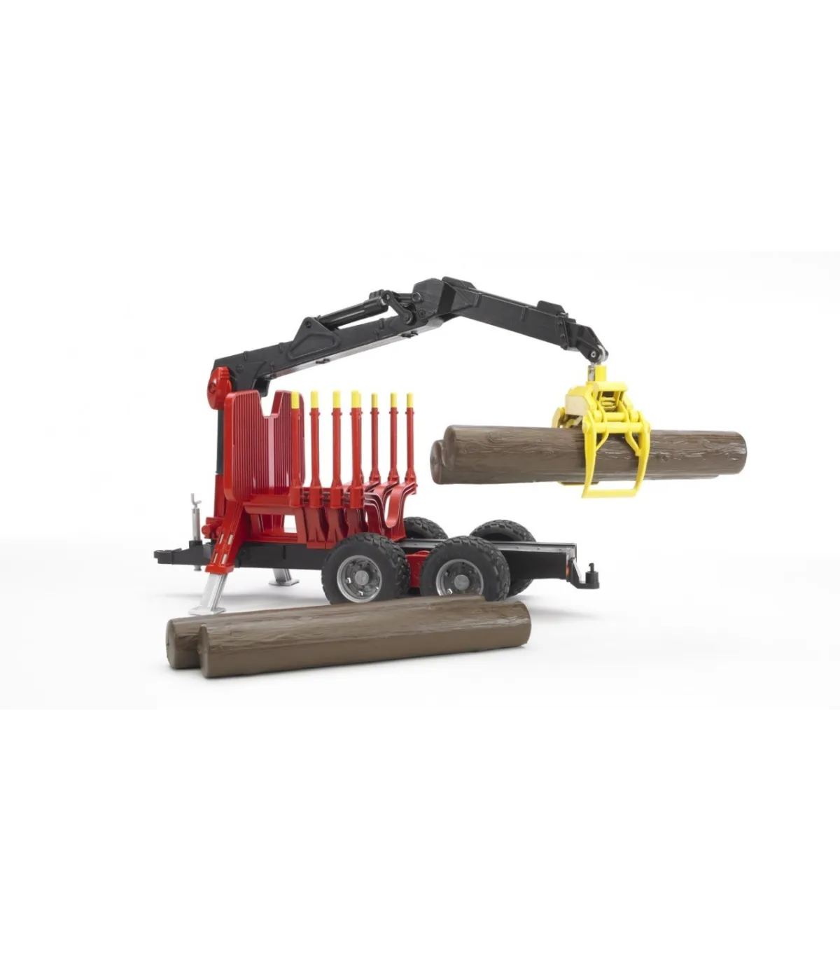 La gama BRUDER en el sector forestal ha seguido creciendo. El nuevo remolque de transporte tiene una excelente figura tanto con los tractores forestales especiales como en combinación con muchos otros artículos. Ya equipado con cuatro troncos de árboles, este remolque funcional con un enganche de remolque y cuatro puntales ajustables le invita inmediatamente a jugar. Convence por su alta funcionalidad y detalles realistas. Gracias a los ejes pendulares todoterreno, el remolque puede hacer frente fácilmente a terrenos difíciles. El modelo está equipado con una grúa de carga giratoria y giratoria, por lo que los troncos de los árboles no solo se pueden transportar, sino también cargar y descargar. El acoplamiento trasero estándar existente se puede utilizar para acoplar elementos adicionales según sea necesario. Los neumáticos de banda de rodadura blanda completan el cuadro.