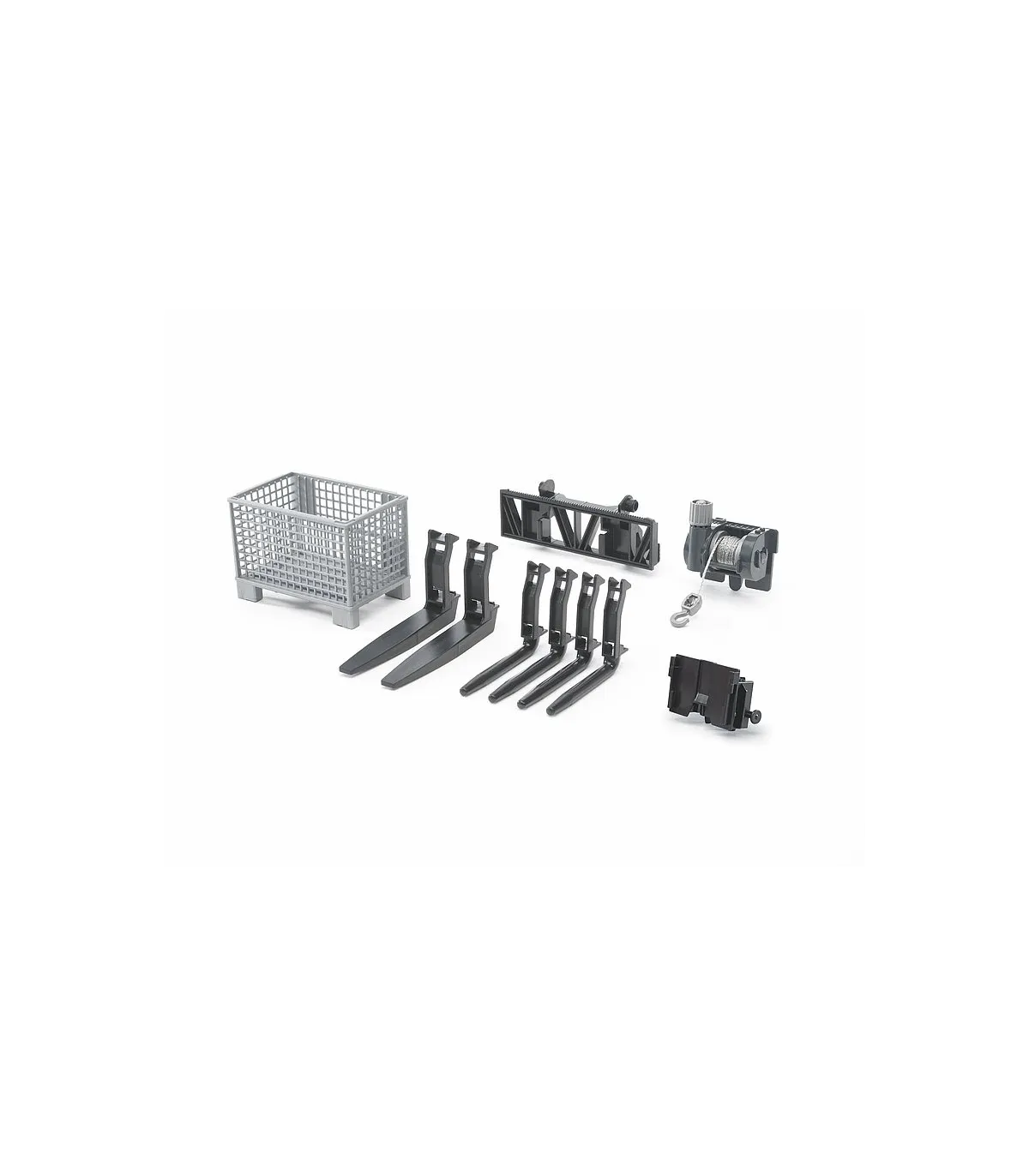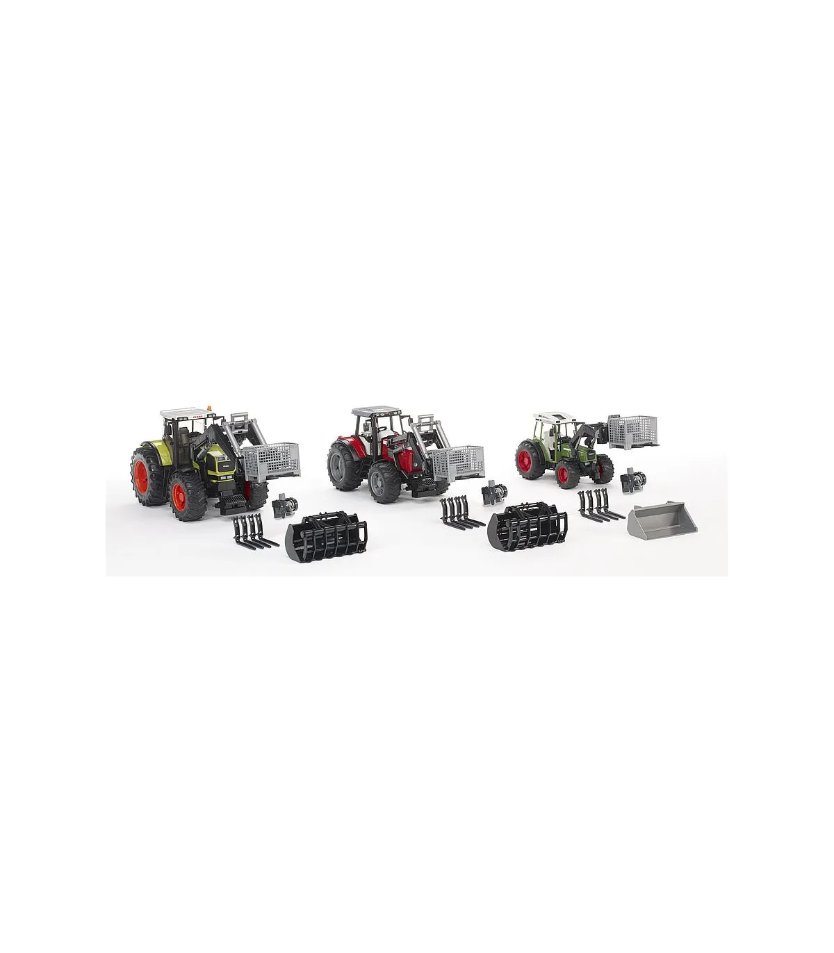 Los accesorios del cargador frontal constan de un adaptador, una paleta de rejilla, un cabrestante de cable y cuatro horquillas para heno y dos para paleta. Para aumentar la diversión, todos los tractores de la serie Profi y el manipulador telescópico Manitou pueden equiparse con los accesorios del cargador frontal.