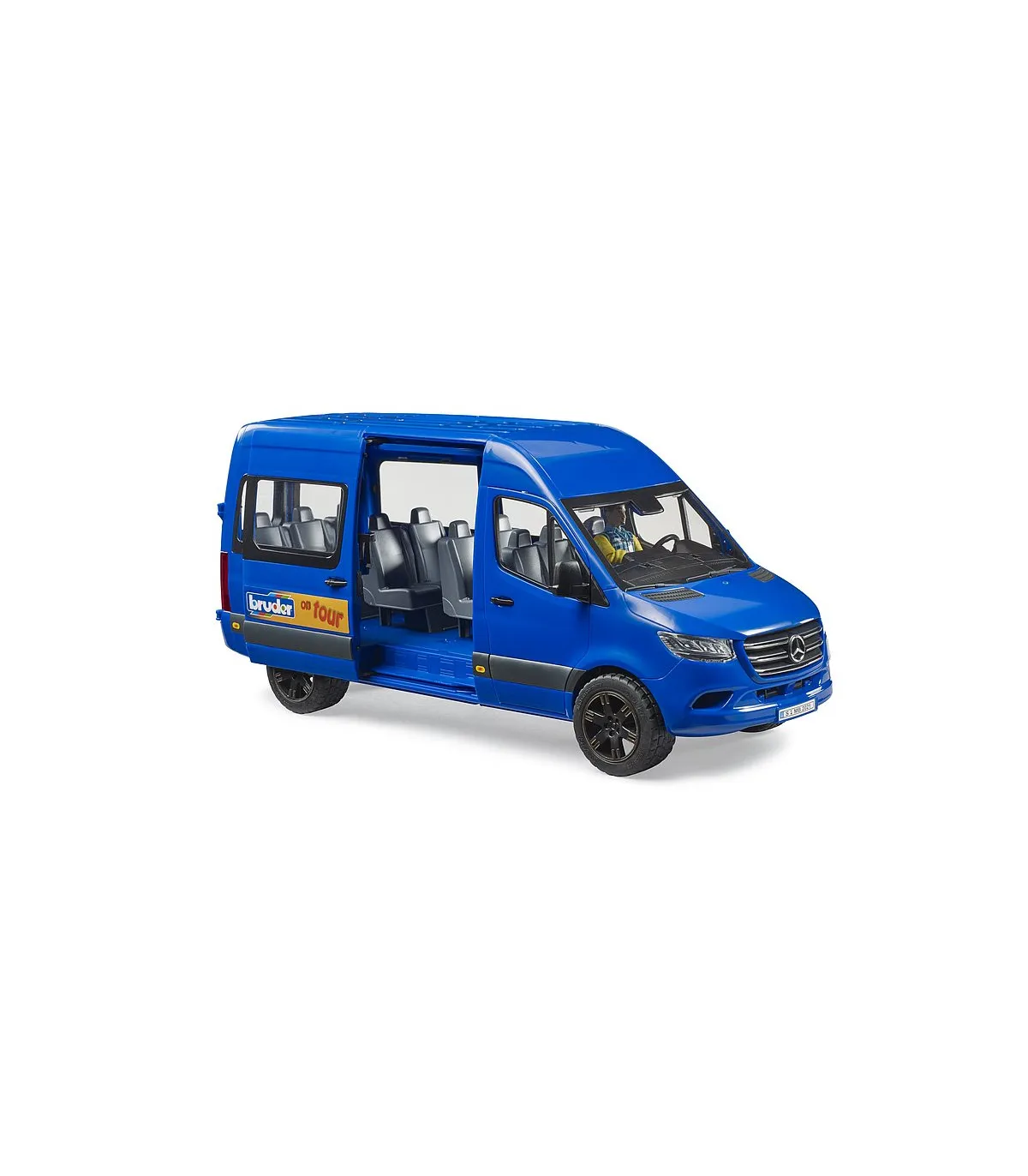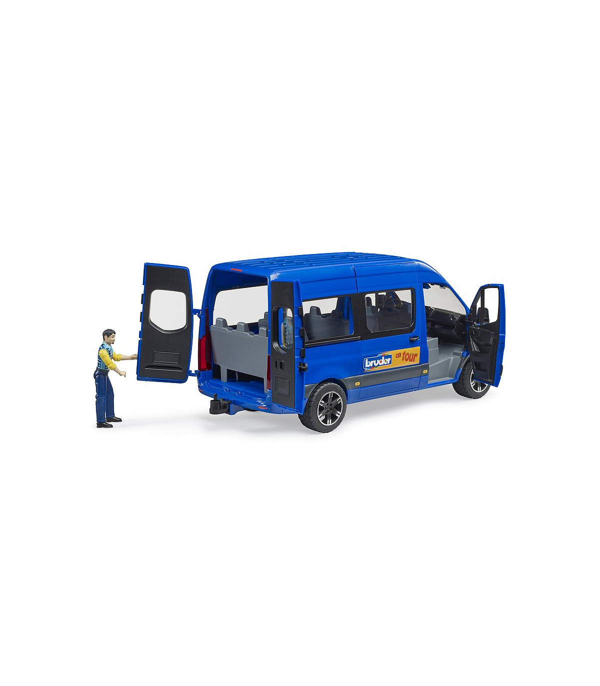 La Sprinter Transfer, con su gran diversidad de variantes, abre unas posibilidades de uso casi ilimitadas. Desde los autobuses escolares o de tripulación hasta los cómodos autobuses interurbanos o los eficaces vehículos de transferencia de los aeropuertos. Esta furgoneta Sprinter ofrece la máxima flexibilidad. BRUDER también ofrece ahora este nuevo modelo de furgoneta Sprinter. El vehículo dispone de puertas que pueden abrirse en la cabina del conductor y en la parte trasera. Lo más destacado es la nueva puerta corredera del lado del pasajero. El interior tiene un diseño flexible. Las filas de asientos traseros se pueden colocar en diferentes direcciones o desmontar por completo. En el volumen de suministro de este vehículo se incluyen el conductor. De la amplia gama de productos de BRUDER, todas las figuras bworld, así como el descapotable BRUDER (n.º de art. 03481) pueden combinarse con este vehículo.