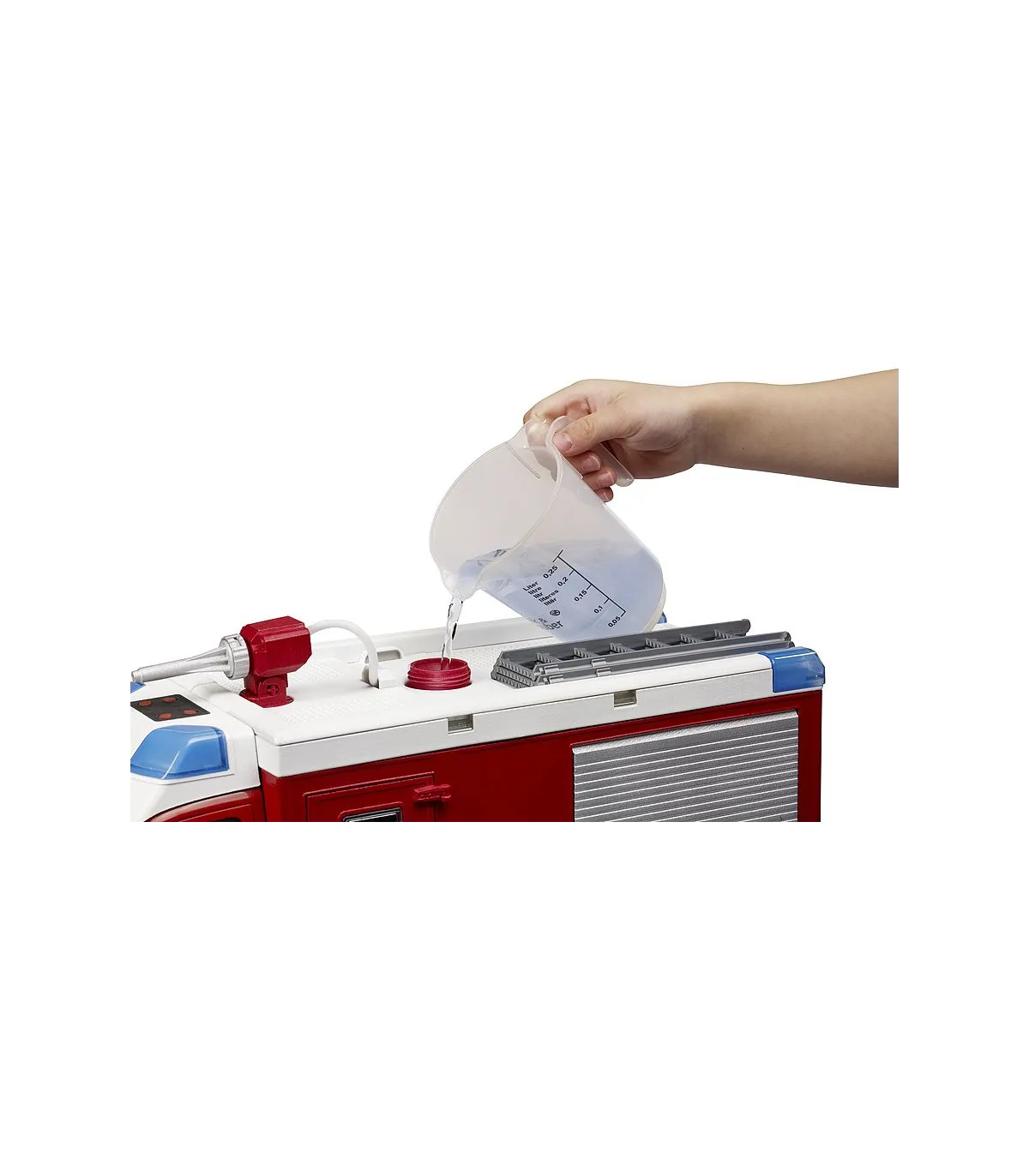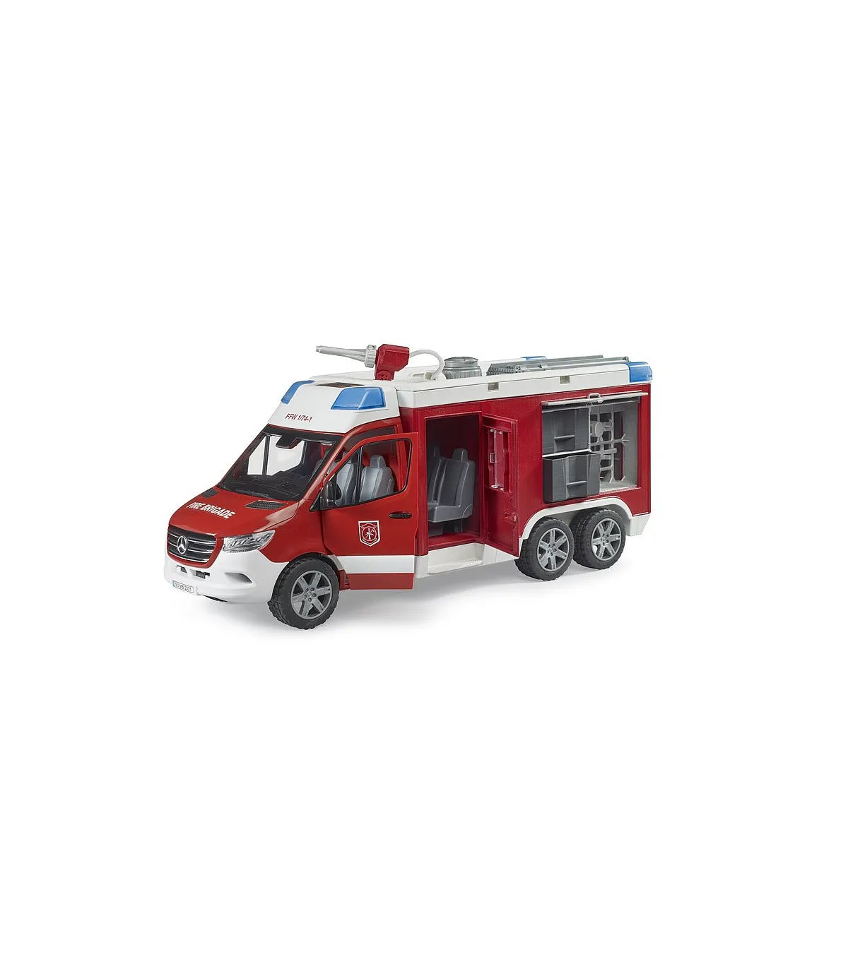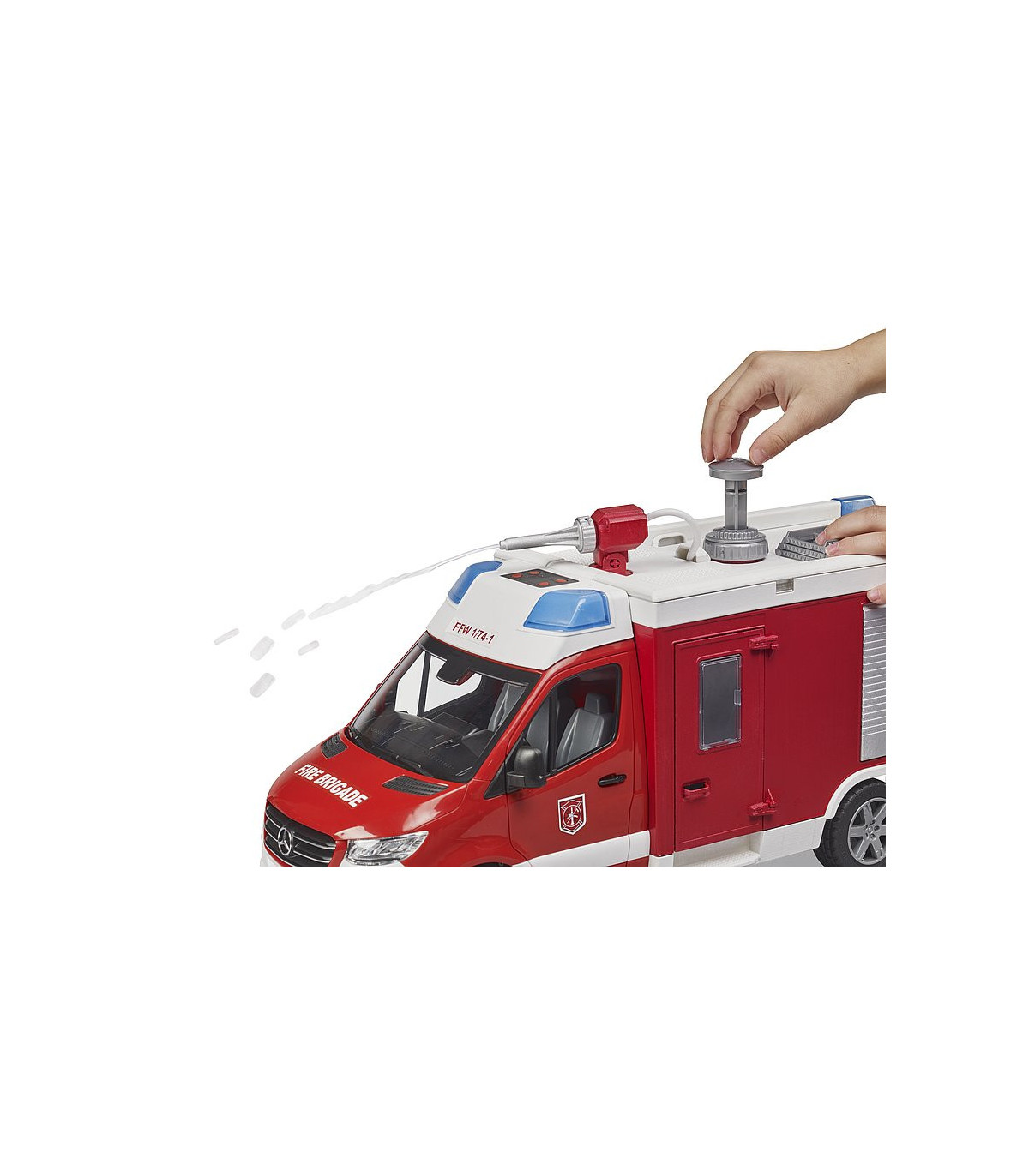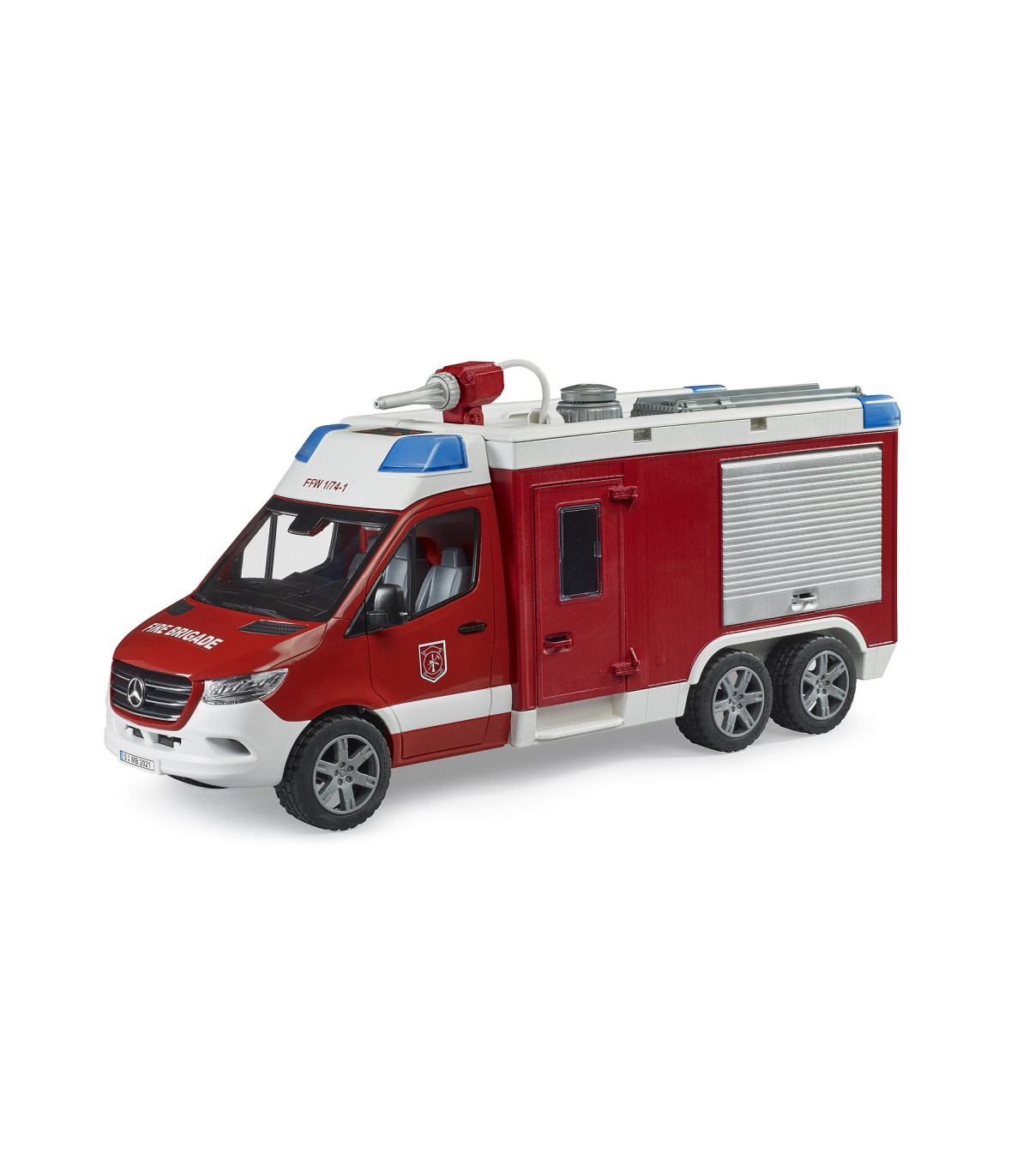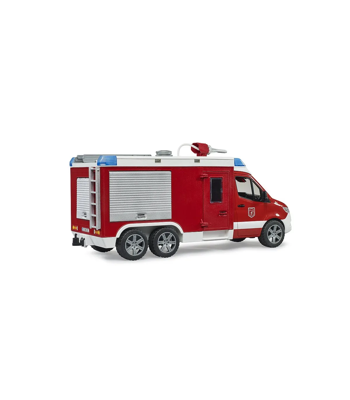 El nuevo camión de bomberos BRUDER para bomberos es un auténtico equipo multifuncional en las operaciones de rescate. La cabina doble ofrece espacio para hasta 4 bomberos bworld. El cañón de agua totalmente operativo con depósito de agua y bomba extingue cualquier fuego en un abrir y cerrar de ojos. Además, hay una segunda manguera para otras operaciones de extinción de incendios. Este versátil vehículo se puede ampliar con una pala quitanieves (n.º de artículo 02581/02582) o un torno de cable (n.º de artículo 42545). La estación de bomberos bworld (n.º de artículo 62702) es el complemento ideal para este detallado vehículo.