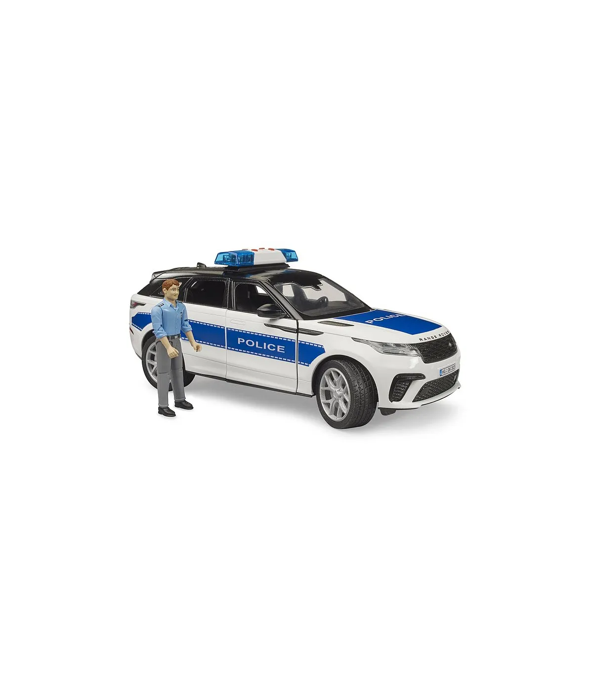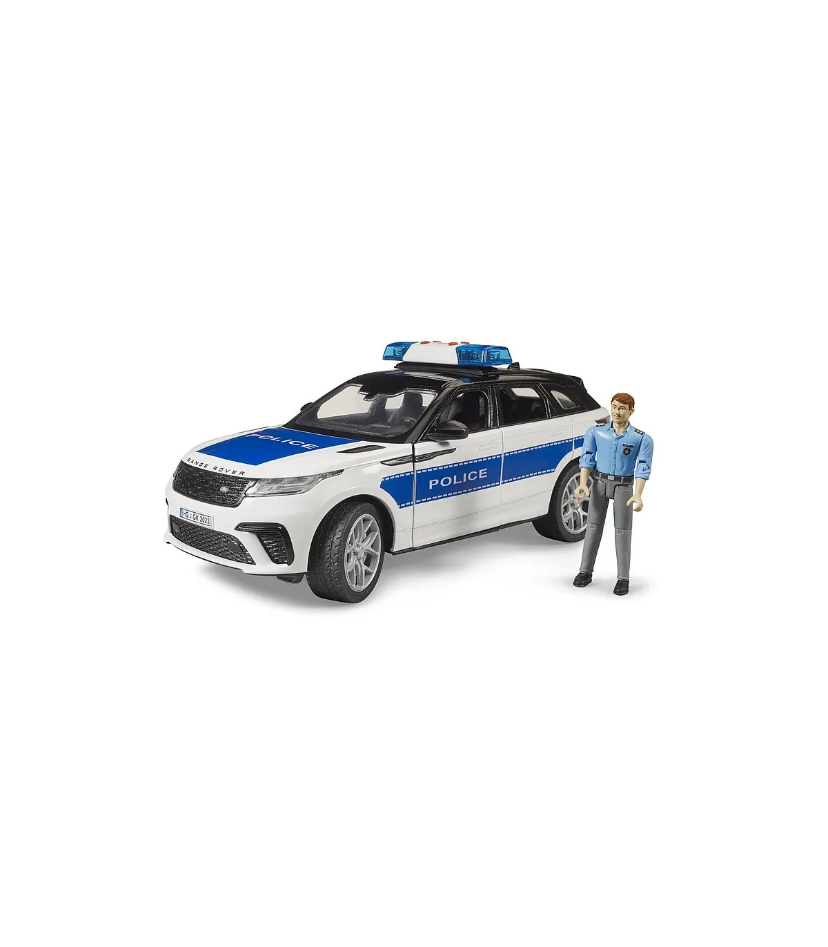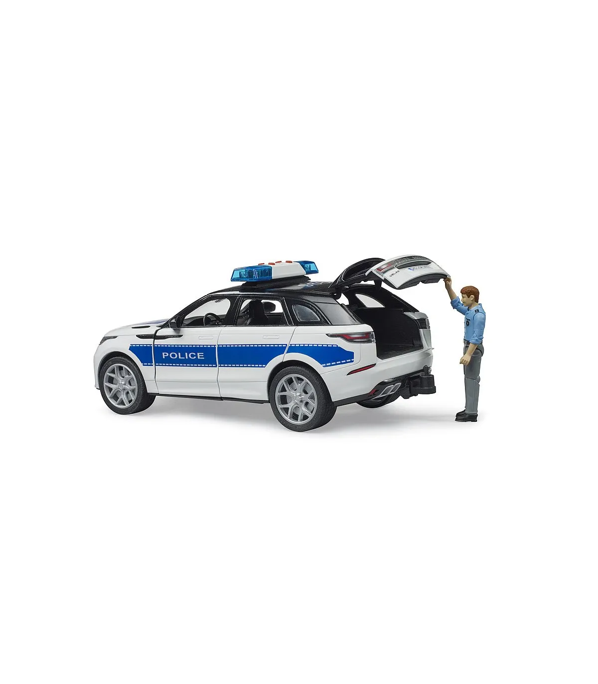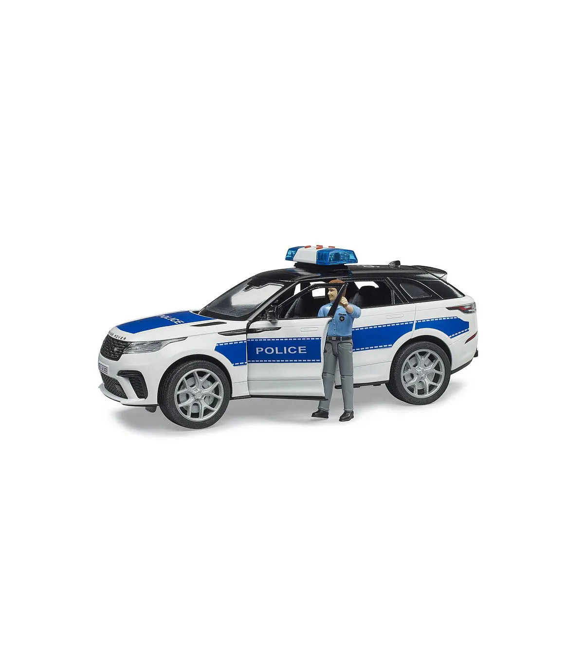 Para que pueda cumplir su misión en terrenos de difícil acceso también fuera de la ciudad, se añade un Range Rover Velar policial a las fuerzas policiales BRUDER. El juguete, al igual que su modelo original, está equipado con cuatro puertas. Todas las puertas se abren y ofrecen espacio para 4 figuras bworld. Este modelo a escala 1:16 está equipado con ejes suspendidos para una mayor comodidad de conducción y capacidad todoterreno; además, el eje delantero se puede dirigir con la prolongación del volante incluida. El portón trasero se puede abrir para el transporte durante el juego. El policía incluido está equipado al máximo, listo para cumplir toda clase de misiones. Acompañando a la extensa gama de vehículos de servicio y figuras, la comisaría bworld (n.º de art. 62732) y el Jeep Rubicon Unlimited como vehículo policial (n.º de art. 02526) encajan particularmente bien en este mundo temático.