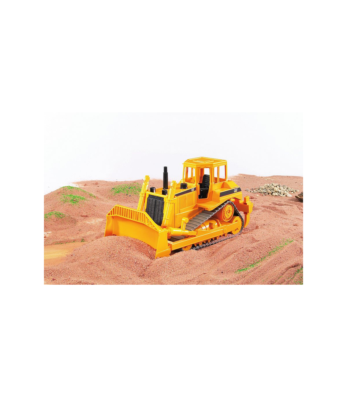 La hoja de limpieza de la topadora Cat® se puede ajustar en altura y bajar, así como inclinar y bloquear. Además, se pueden quitar los rastrillos sueltos. Las cadenas de orugas se utilizan para mover el Bulldozer Cat® cómodamente.
