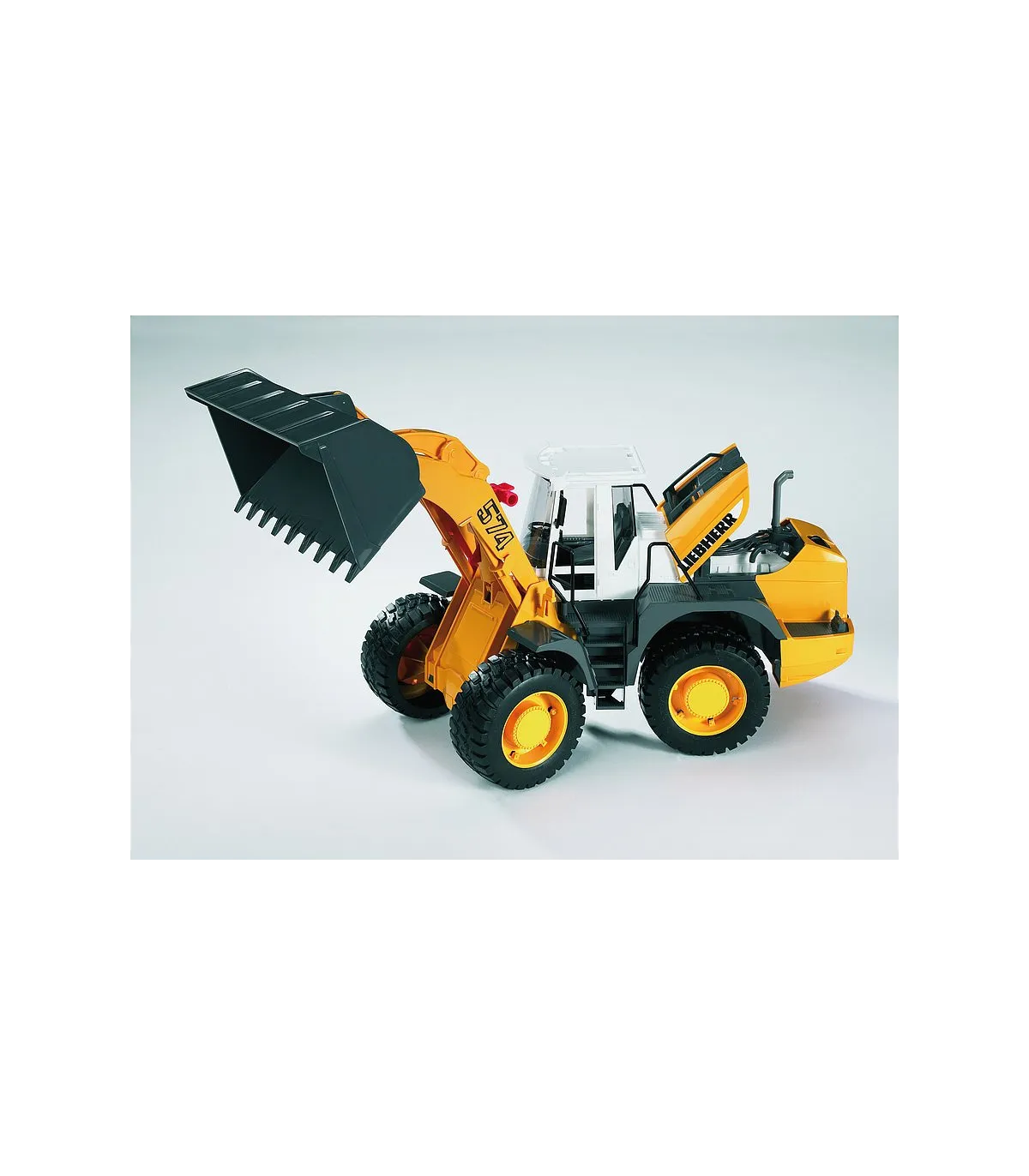 La cargadora de ruedas Liebherr L574 tiene una pala de carga grande e inclinable que se puede manejar con una mano mediante un mecanismo de pala recientemente desarrollado. La dirección articulada y el eje trasero todo terreno ofrecen una fácil maniobrabilidad. Además, el capó se puede abrir para revelar el bloque del motor y los neumáticos de la banda de rodadura completan la imagen.