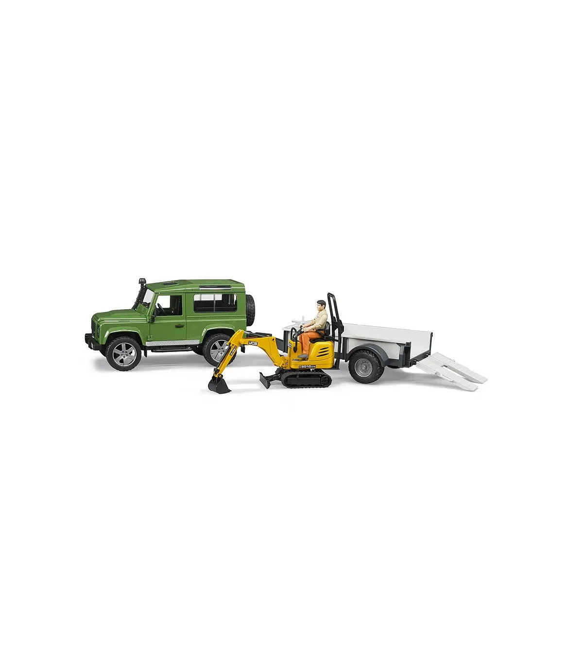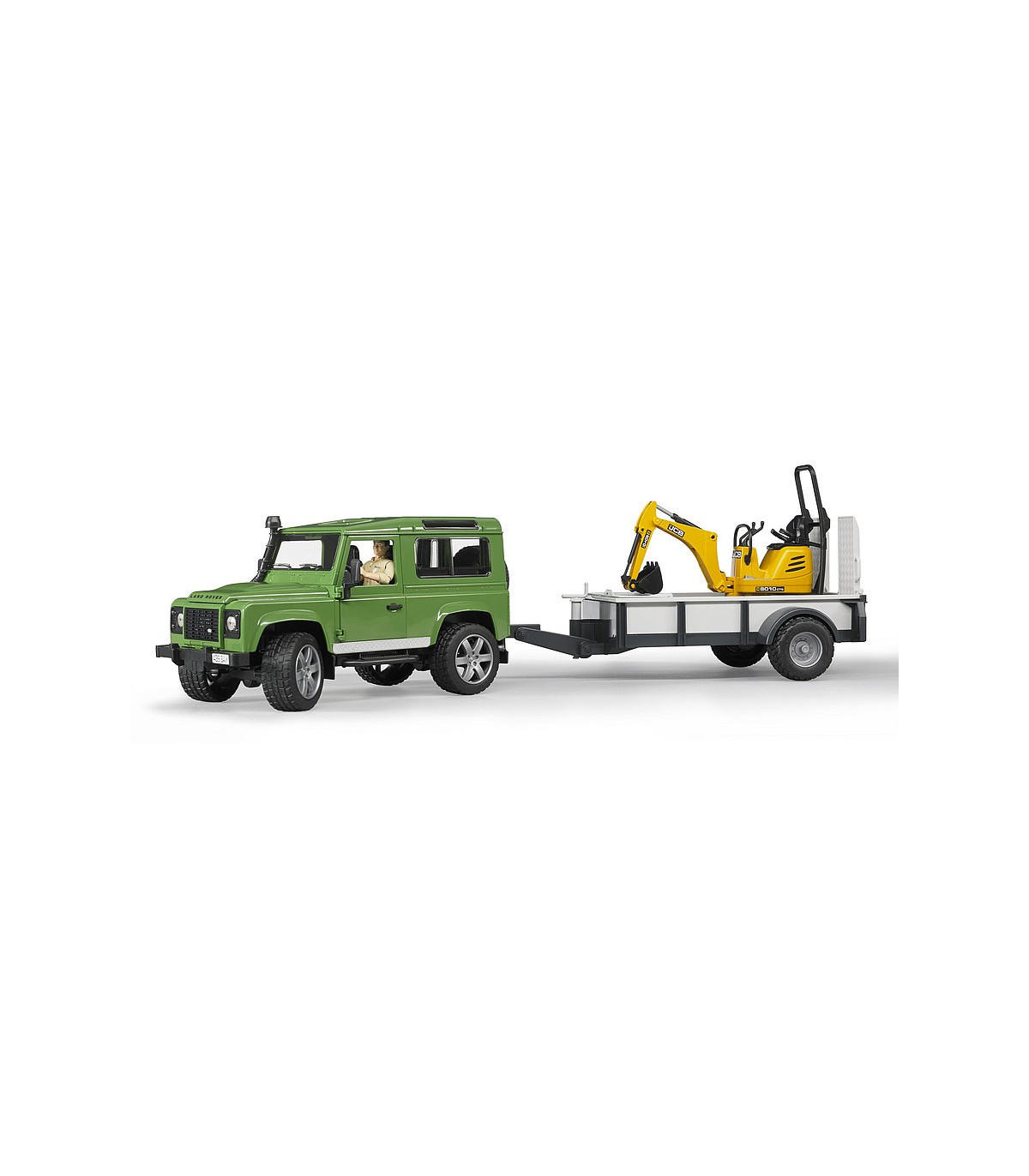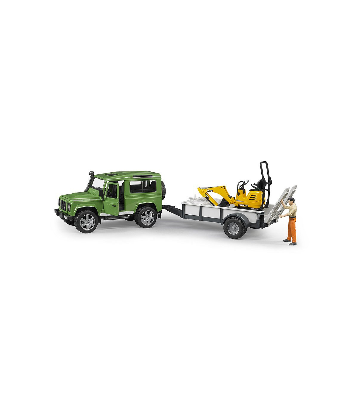 La fascinante calidad todoterreno y el diseño atemporal de Land Rover, combinados con la detallada microexcavadora JCB de la nueva serie bworld, es exactamente lo correcto para los pequeños trabajadores de la construcción. El modelo resultante no solo convencerá a los fanáticos de la marca Land Rover con detalles sorprendentes, como la chapa estructural en relieve en el capó y las numerosas funciones jugables. Las puertas traseras y laterales se pueden abrir y el banco trasero se puede quitar. La microexcavadora asociada también tiene un nivel de detalle impresionante. Todas las figuras de la serie bworld encuentran un soporte perfecto en el asiento. Con la ayuda adicional del chasis giratorio, se puede trabajar incluso en la parte más pequeña de la obra. El remolque de un solo eje, que tiene un portón trasero que se puede abrir y rodar neumáticos, también se incluye en el volumen de suministro.