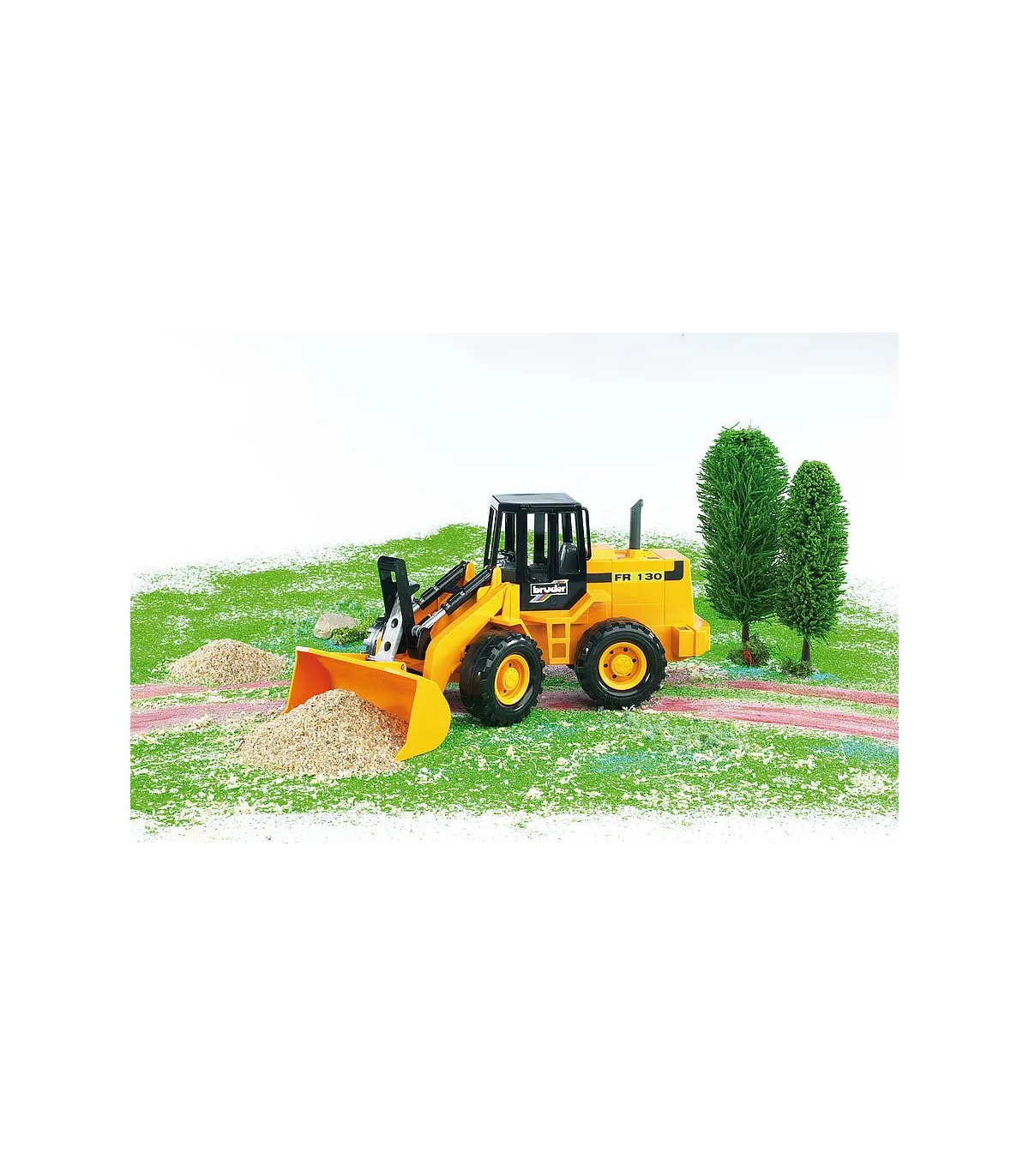 La cargadora de ruedas articulada FR 130 tiene un brazo de pala totalmente funcional que se puede bloquear. La pala también se puede volcar. La dirección articulada significa que la cargadora de ruedas articulada se puede maniobrar fácilmente.
