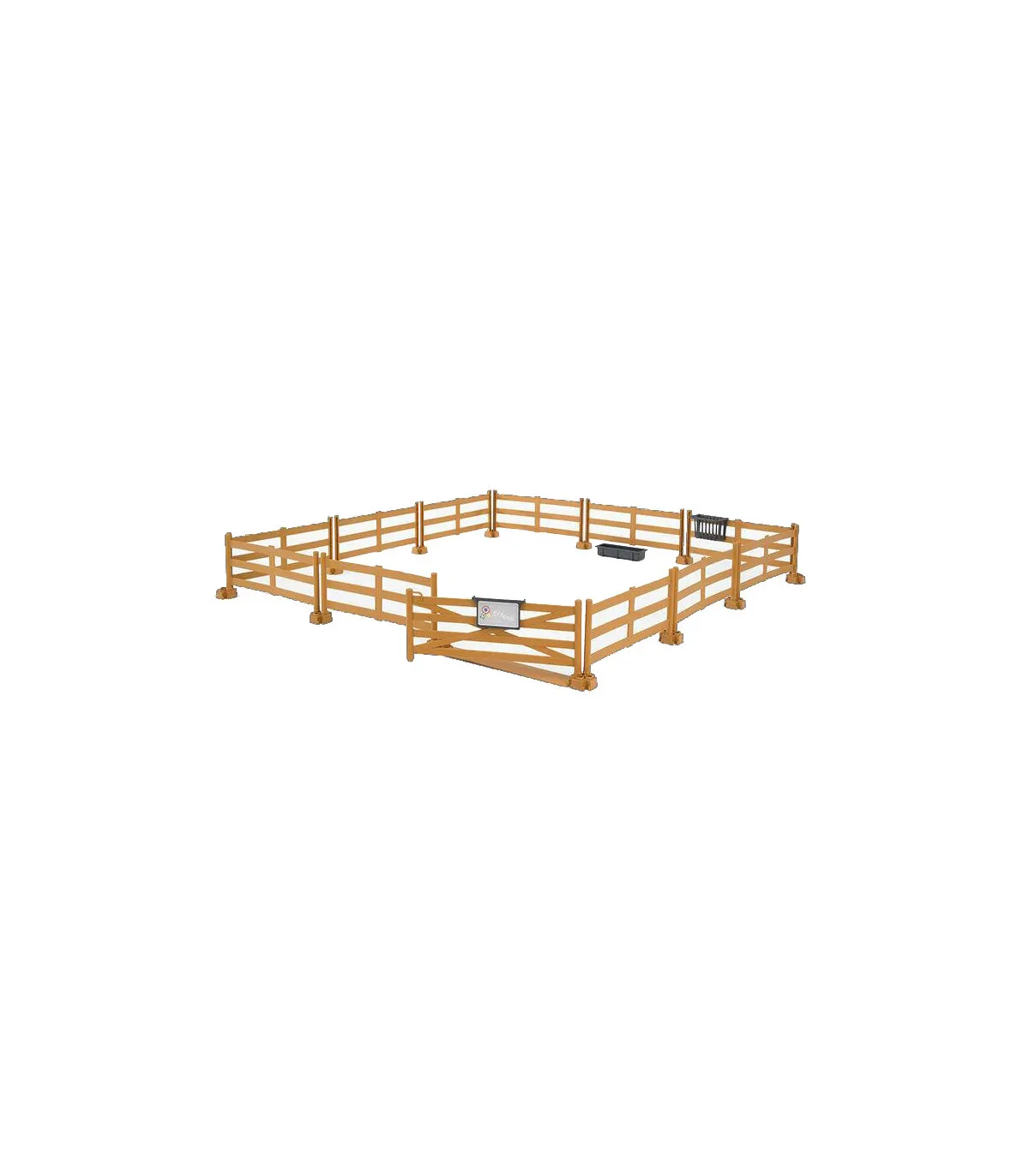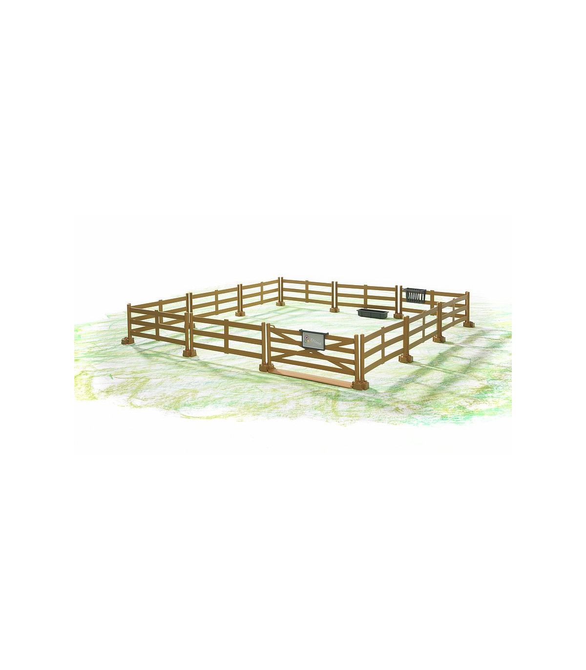 La valla de pasto es un enriquecimiento para cada escena del juego con vehículos y figuras de BRUDER. Tanto como un potrero junto a una caballeriza como en la zona agrícola con ganado, los elementos de valla contenidos en este conjunto contribuyen a una imagen general extremadamente realista de la escena del juego. Los elementos se pueden combinar a su gusto, se puede ampliar el paddock o se pueden configurar diferentes situaciones. Además de once elementos de valla y una puerta, el conjunto también incluye un estante para heno, una etiqueta con el nombre y un comedero. La diversión puede comenzar con una vaca y un granjero de la serie bworld. Se vuelve particularmente interesante con un granero o un establo y otras figuras y vehículos de la gama.