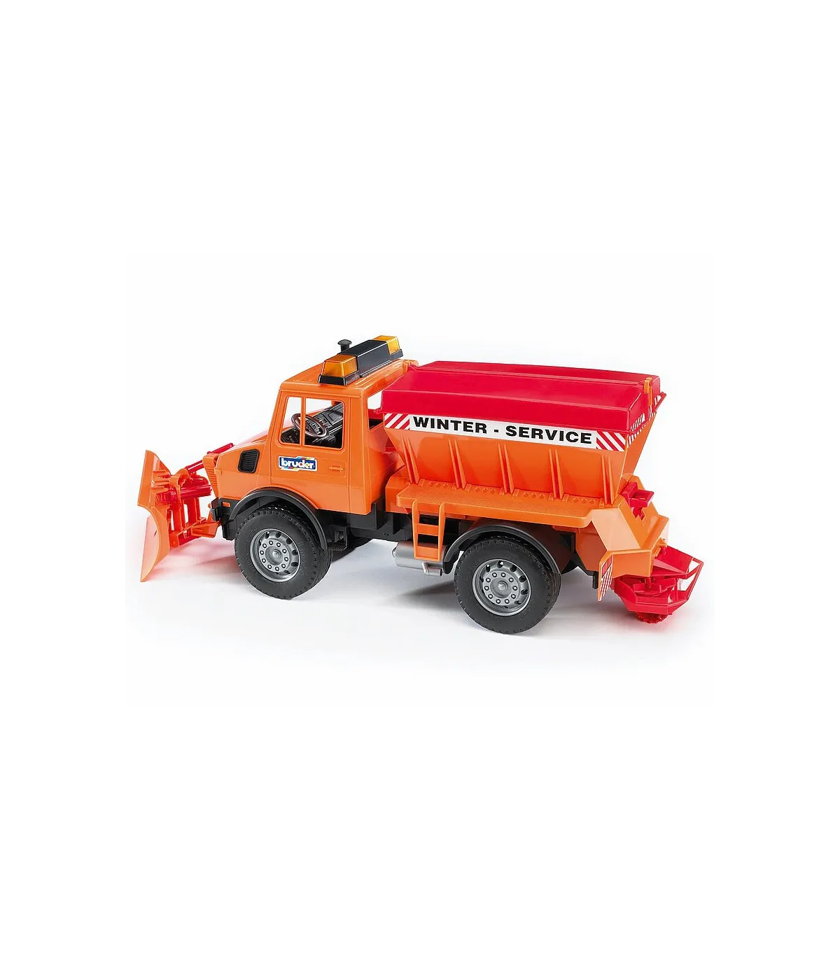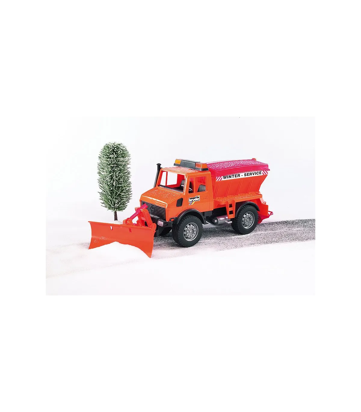 La pala niveladora del Mercedes Benz Unimog para servicio de invierno es móvil y se puede asentar. La tapa del tanque se puede abrir y el depósito se puede llenar, así como bloquear al accionar la corredera. El mecanismo de esparcido es completamente funcional. Los neumáticos perfilados completan el conjunto. Además, se puede equipar el Mercedes Benz Unimog para servicio de invierno con pala niveladora con el Light and Sound Module, nº de art.: 02801 (no incluido en el volumen de suministro).