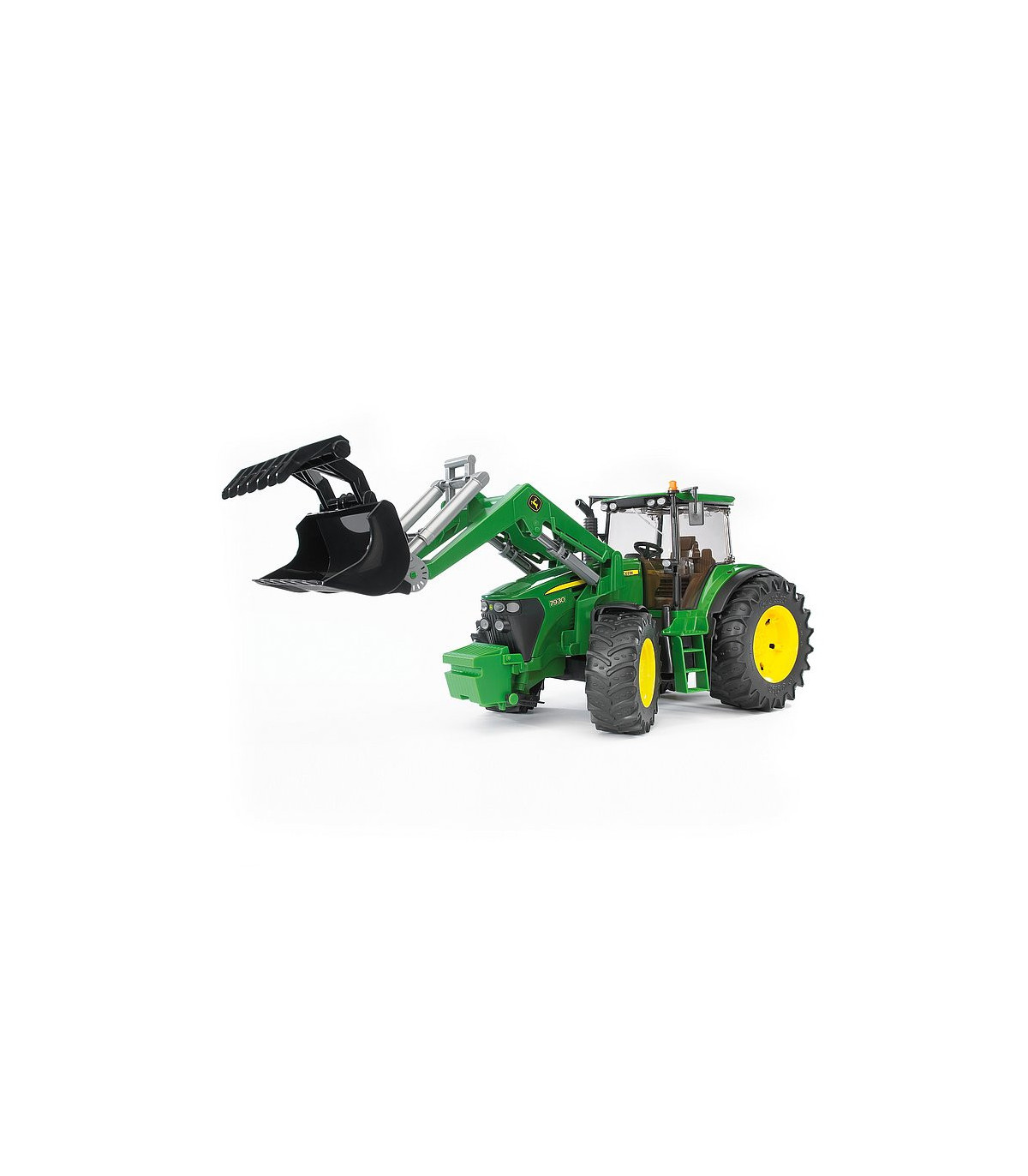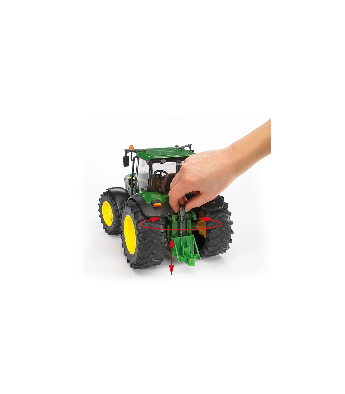 Con la introducción de la serie 03000 de tractores grandes en otoño de 2004, BRUDER estableció en el mercado una gama de tractores de juguete de gran éxito que no puede ser superada en términos de funcionalidad y estética. A esta gama se añade el modelo John Deere 7930. Tiene las mismas características que los otros modelos de estos grandes tractores, como cabinas totalmente acristaladas con puertas que se pueden abrir, un peso delantero desmontable, un eje delantero pendular todoterreno y un enganche de remolque ajustable en altura. El exclusivo sistema de juego / dirección con la extensión del volante a través del techo de la cabina también hace que este tractor sea fácil de conducir para los niños a pesar del acristalamiento de la cabina. Por supuesto, todos los remolques e implementos agrícolas de BRUDER caben en este tractor.